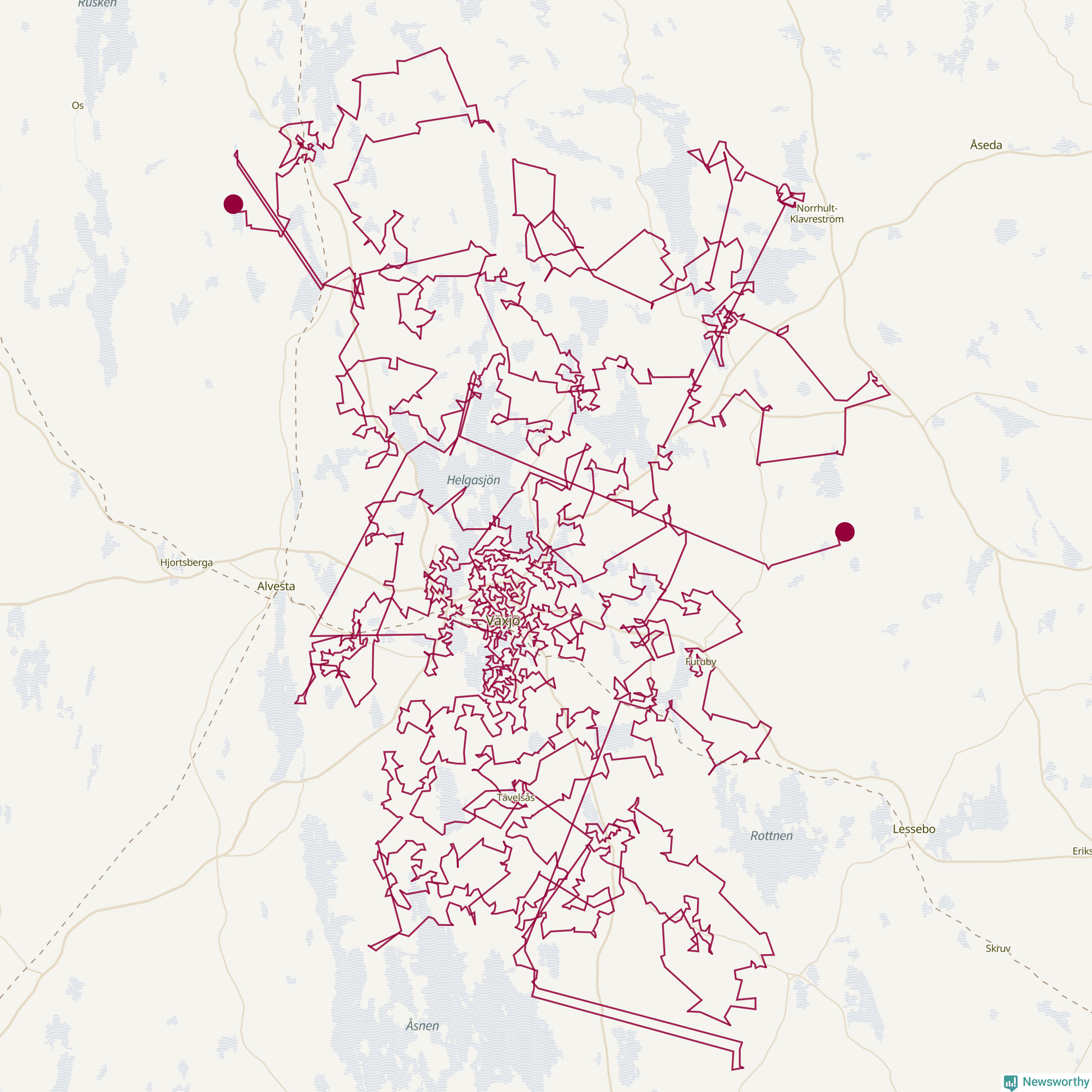 Så här skulle tomtens resa kunna se ut i Växjö: