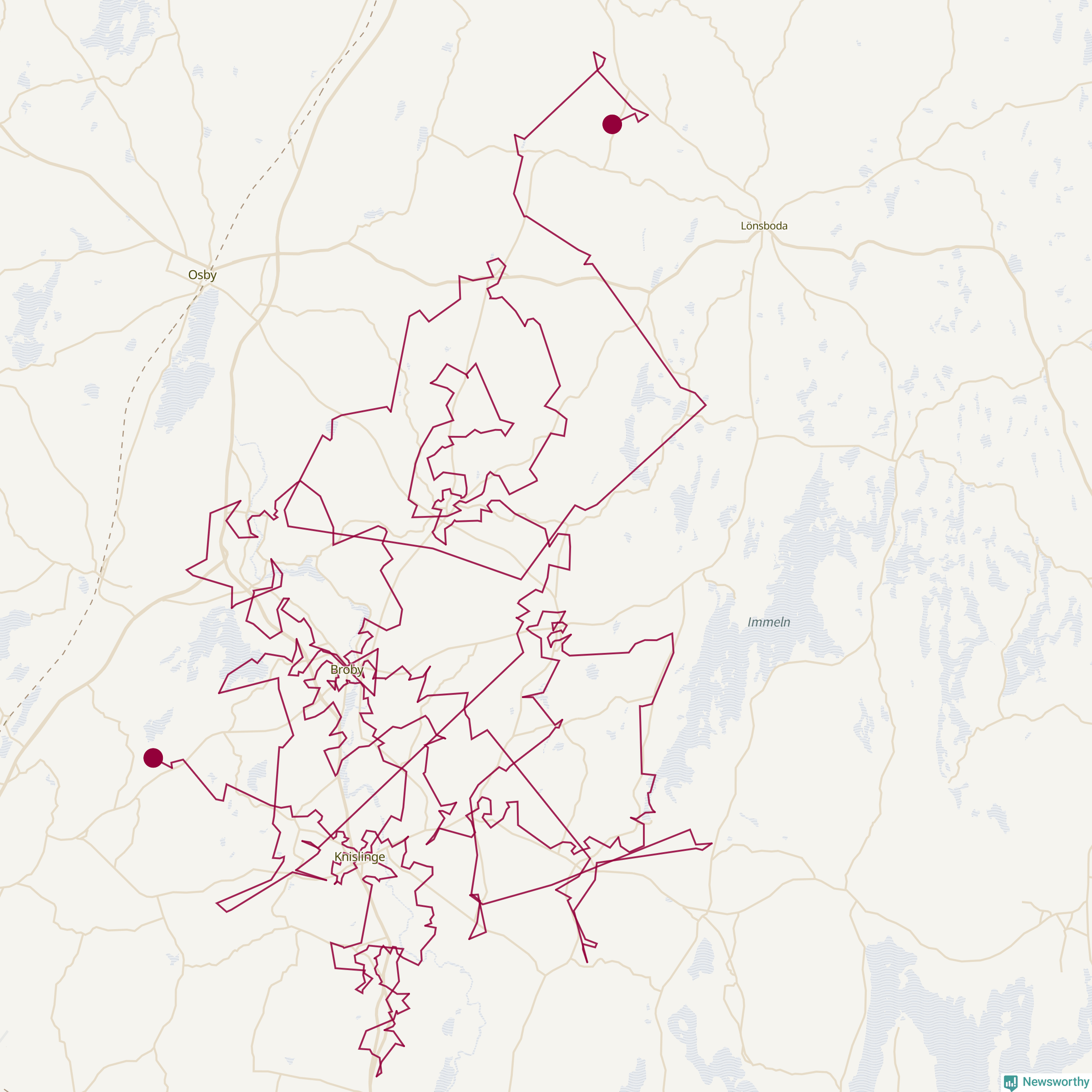 Så här skulle tomtens resa kunna se ut i Östra Göinge:
