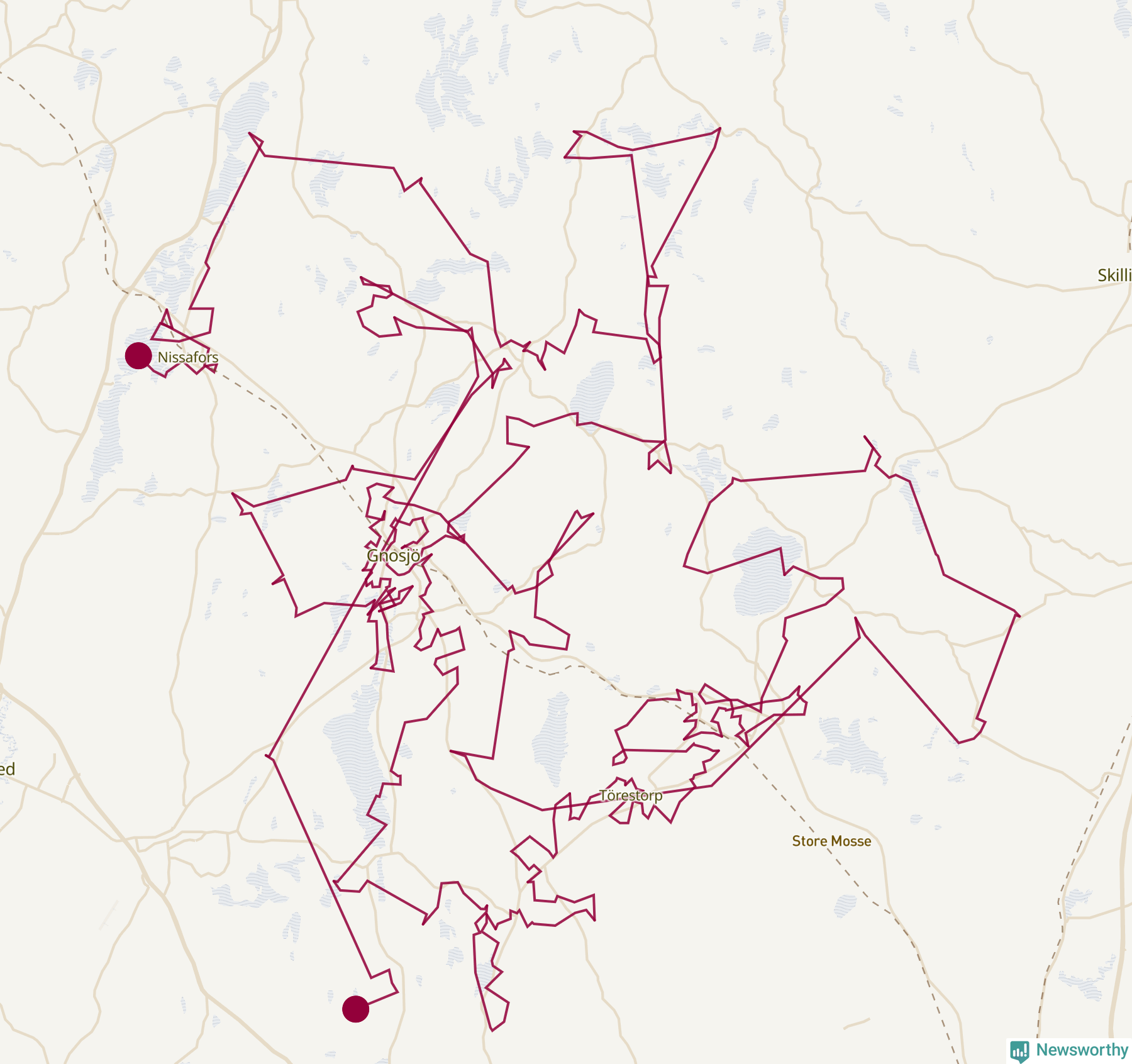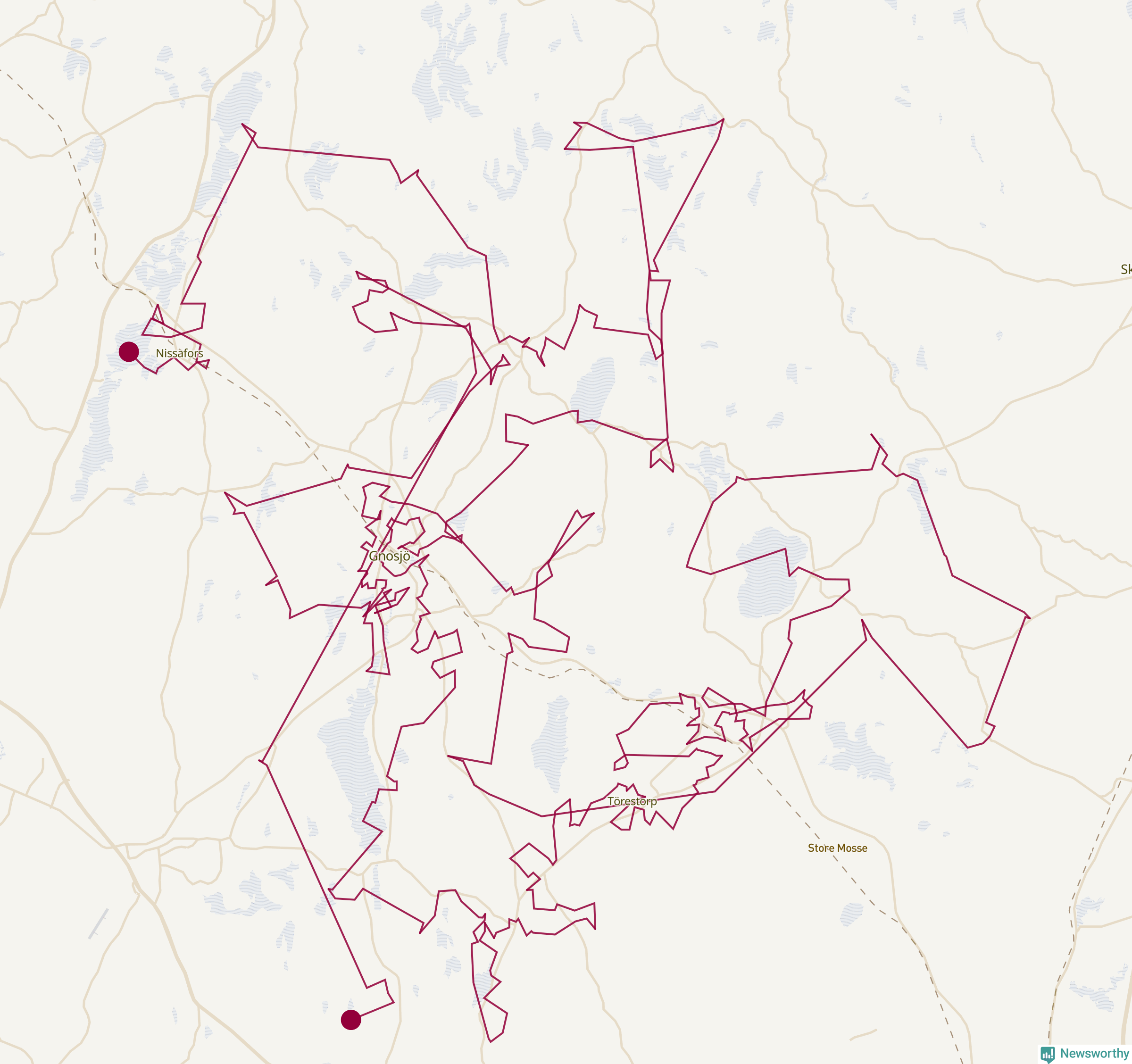 Så här skulle tomtens resa kunna se ut i Gnosjö: