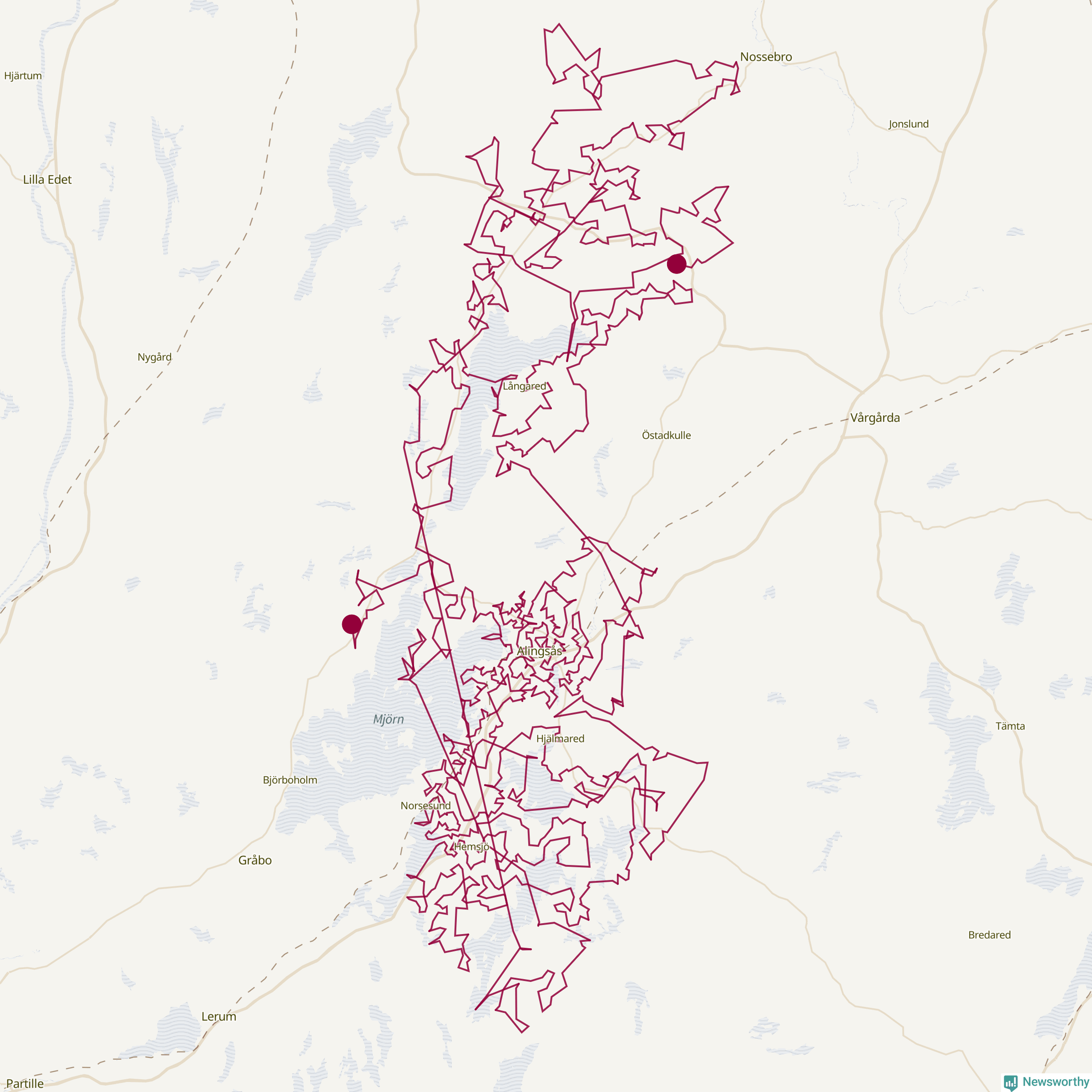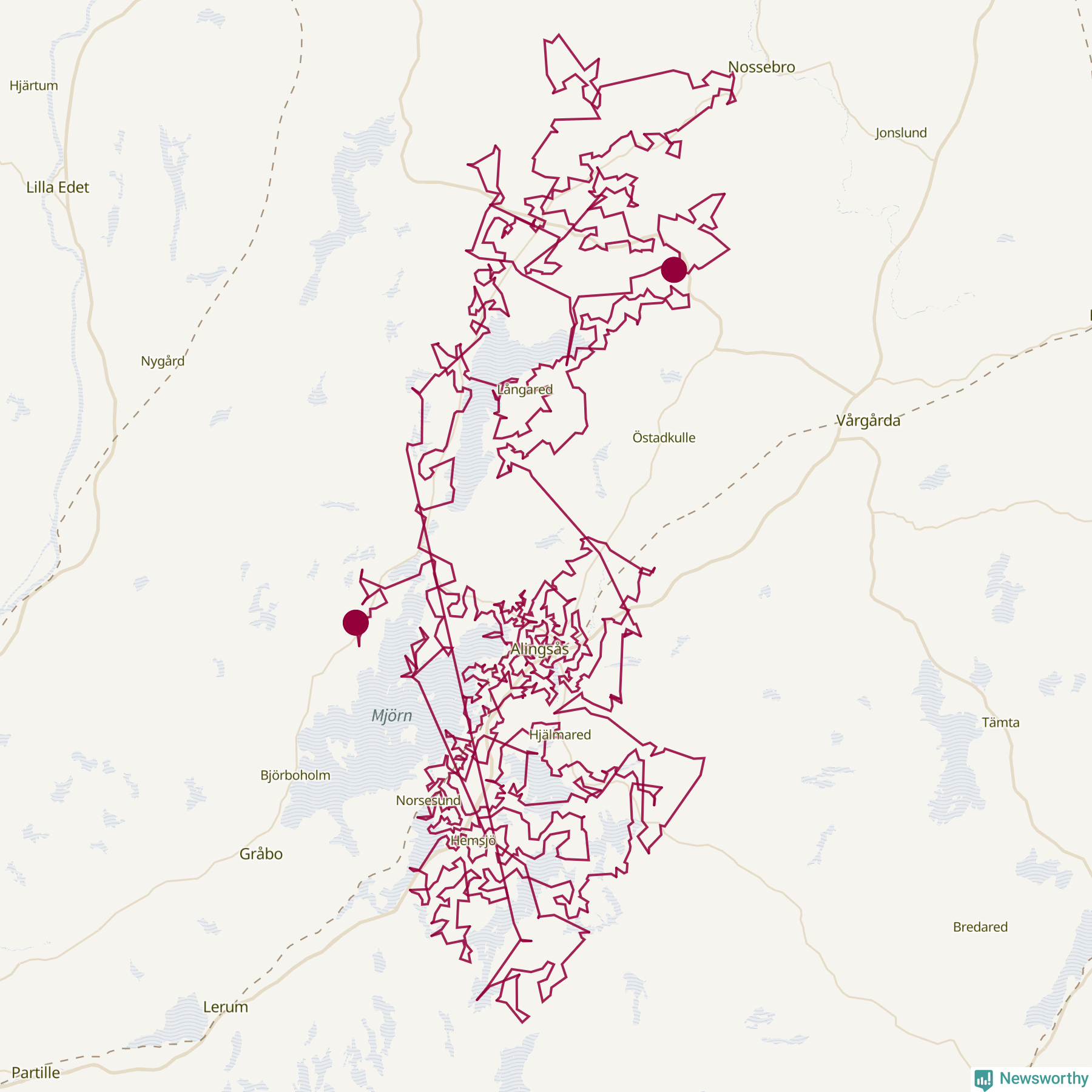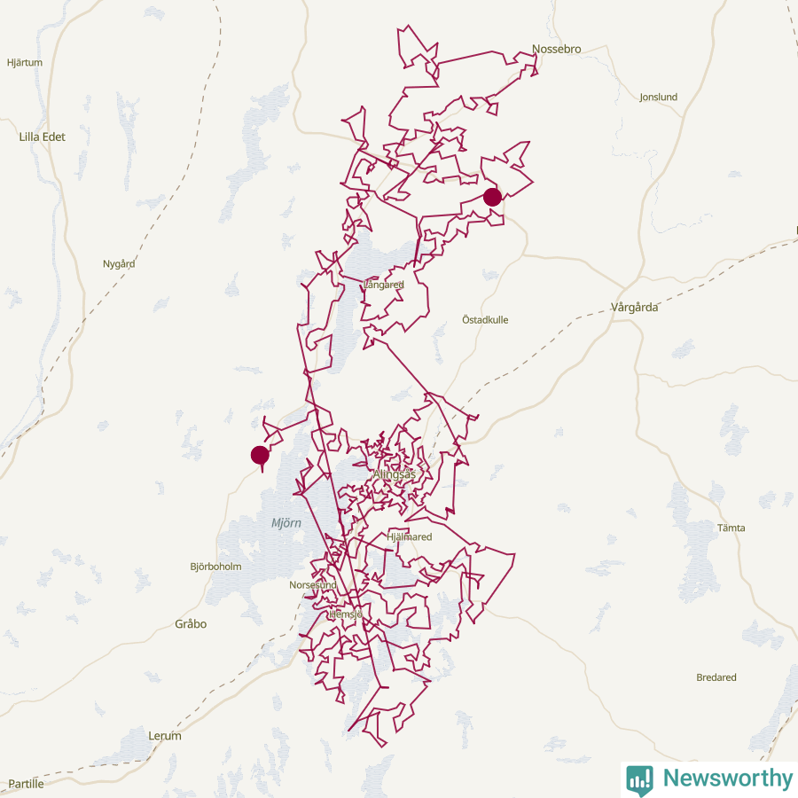 Så här skulle tomtens resa kunna se ut i Alingsås: