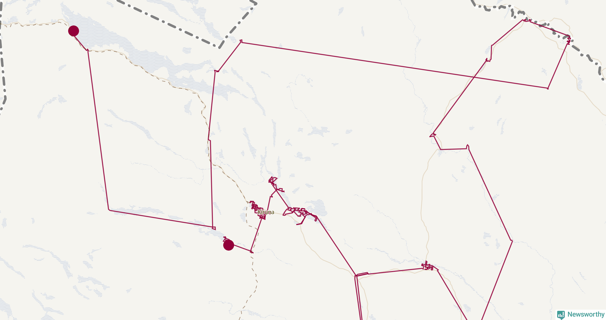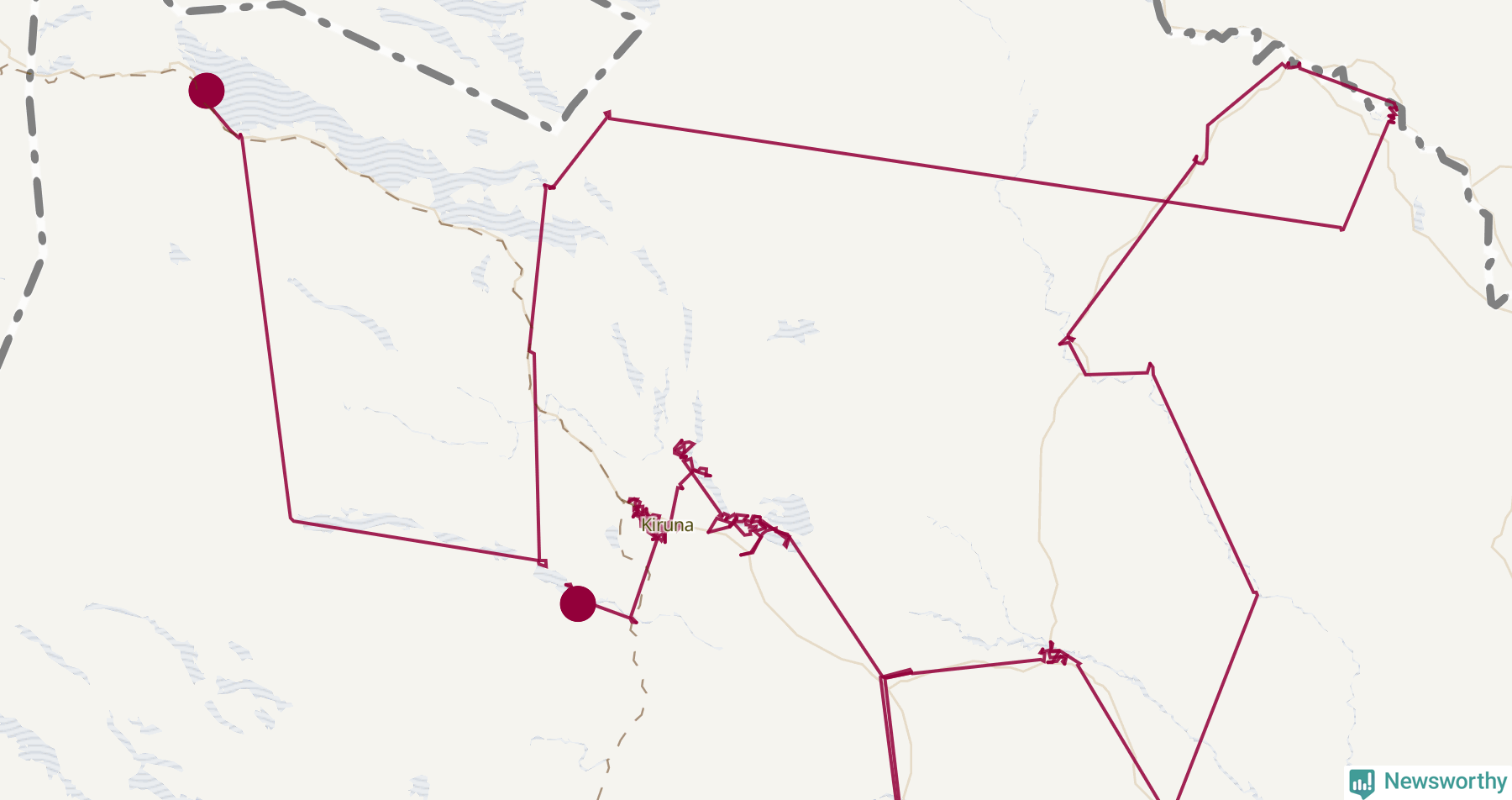 Så här skulle tomtens resa kunna se ut i Kiruna: