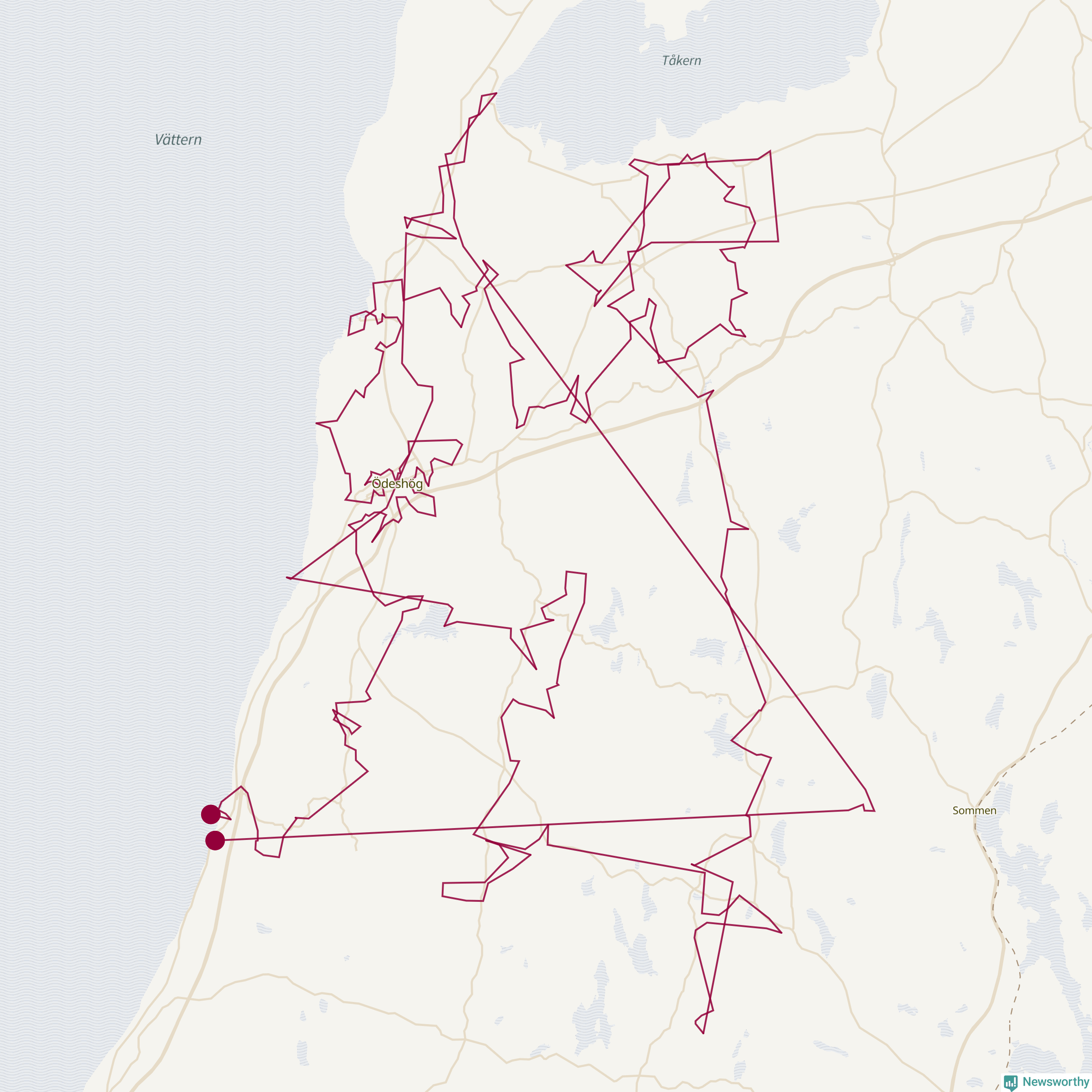 Så här skulle tomtens resa kunna se ut i Ödeshög: