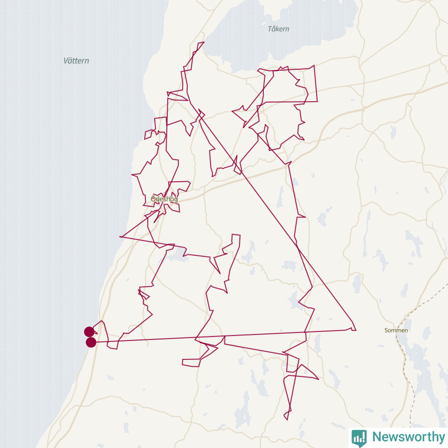 Totalt måste tomten avverka en sträcka på 27,9 mil i Ödeshögs kommun. I relation till antalet barn i kommunen gör det resan till en av de kämpigaste i landet. Eftersom barnen är utspridda över nejden blir resan per barn lång. Om vi antar att tomten reser strax under ljudhastigheten för att undvika onödiga ljudbangar i julfriden, så behöver han ungefär 13 minuter och 32 sekunder för Ödeshögsresan.