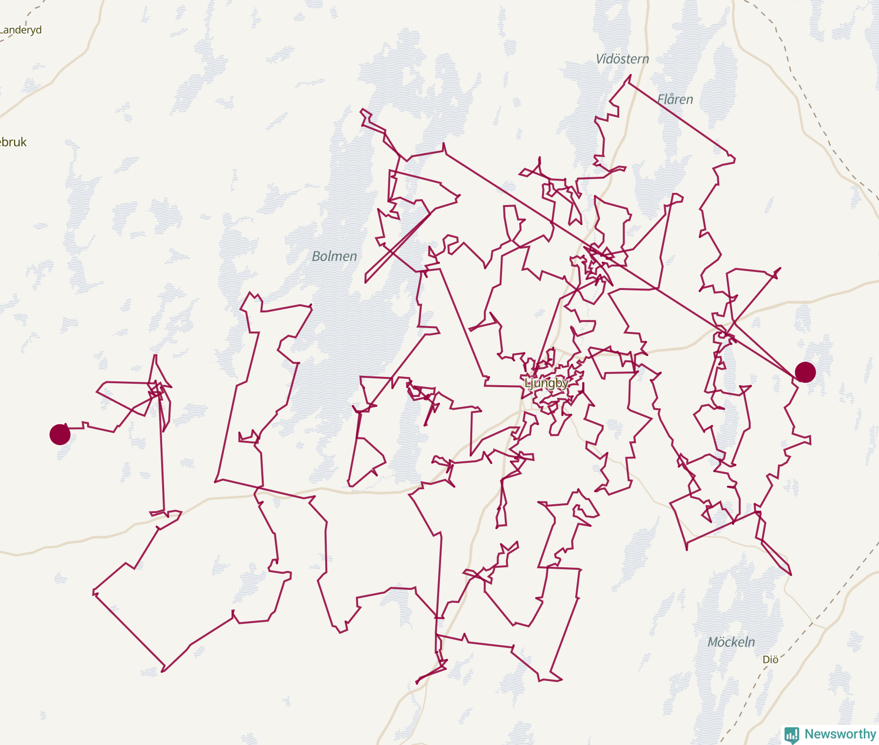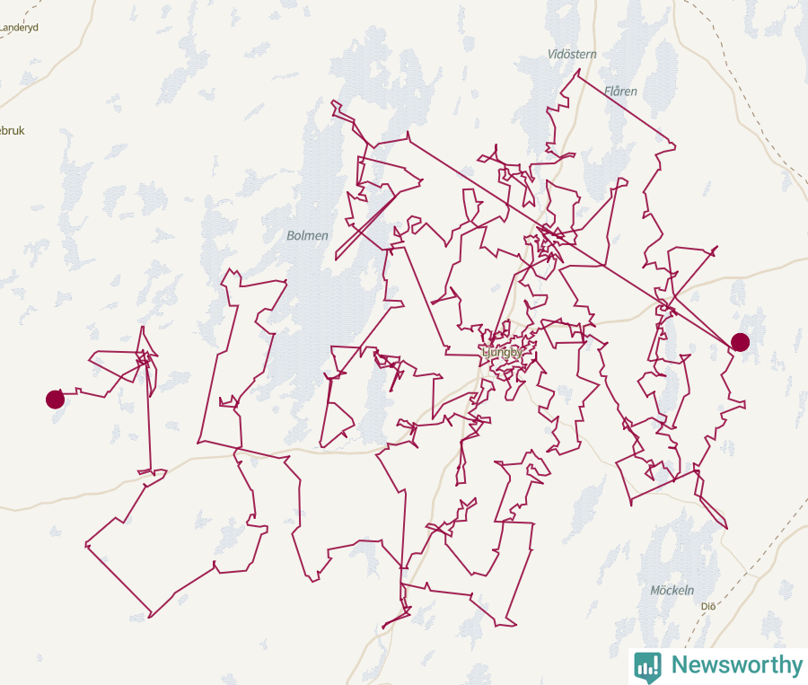 Och det finns färdiga matematiska modeller för att lösa problemet. Med statistik från SCB om hur många barn det bor i olika delar av kommunen har Newsworthy låtit en algoritm ta fram ett förslag på hur en optimal resväg skulle kunna se ut (eller åtminstone nästan optimal – algoritmerna för att lösa handelsresandeproblemet kräver extremt mycket datorkraft).