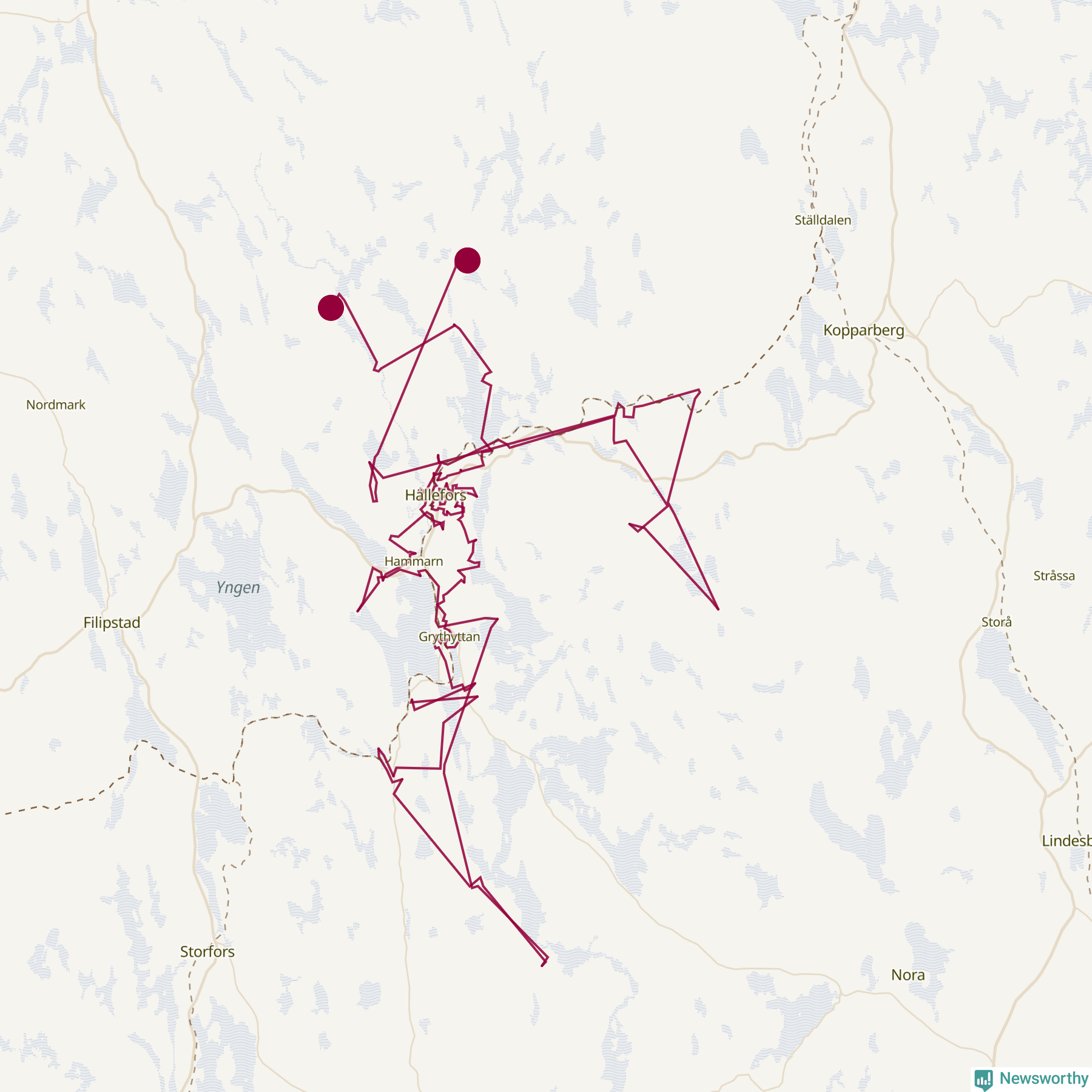 Så här skulle tomtens resa kunna se ut i Hällefors:
