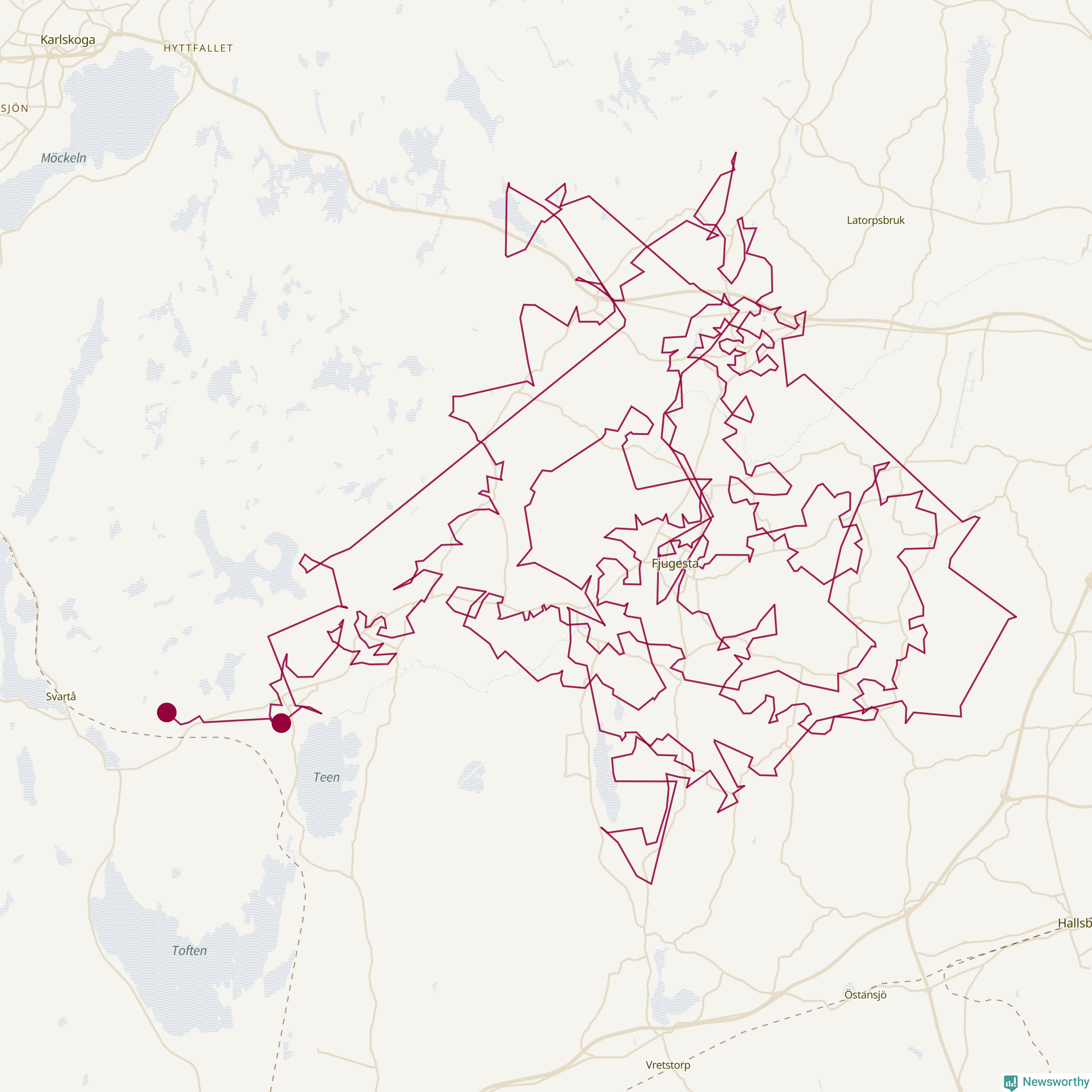 Så här skulle tomtens resa kunna se ut i Lekeberg: