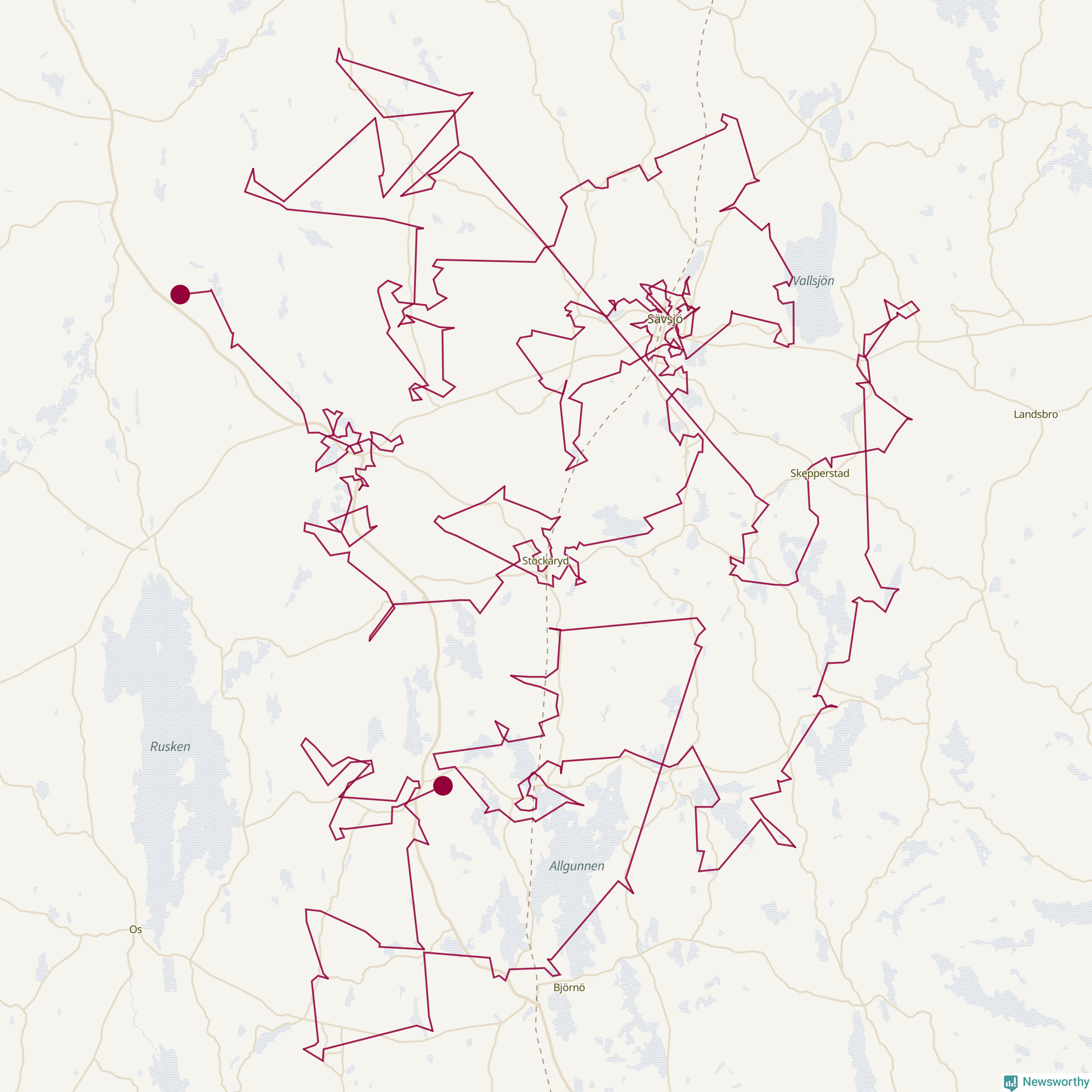 Så här skulle tomtens resa kunna se ut i Sävsjö: