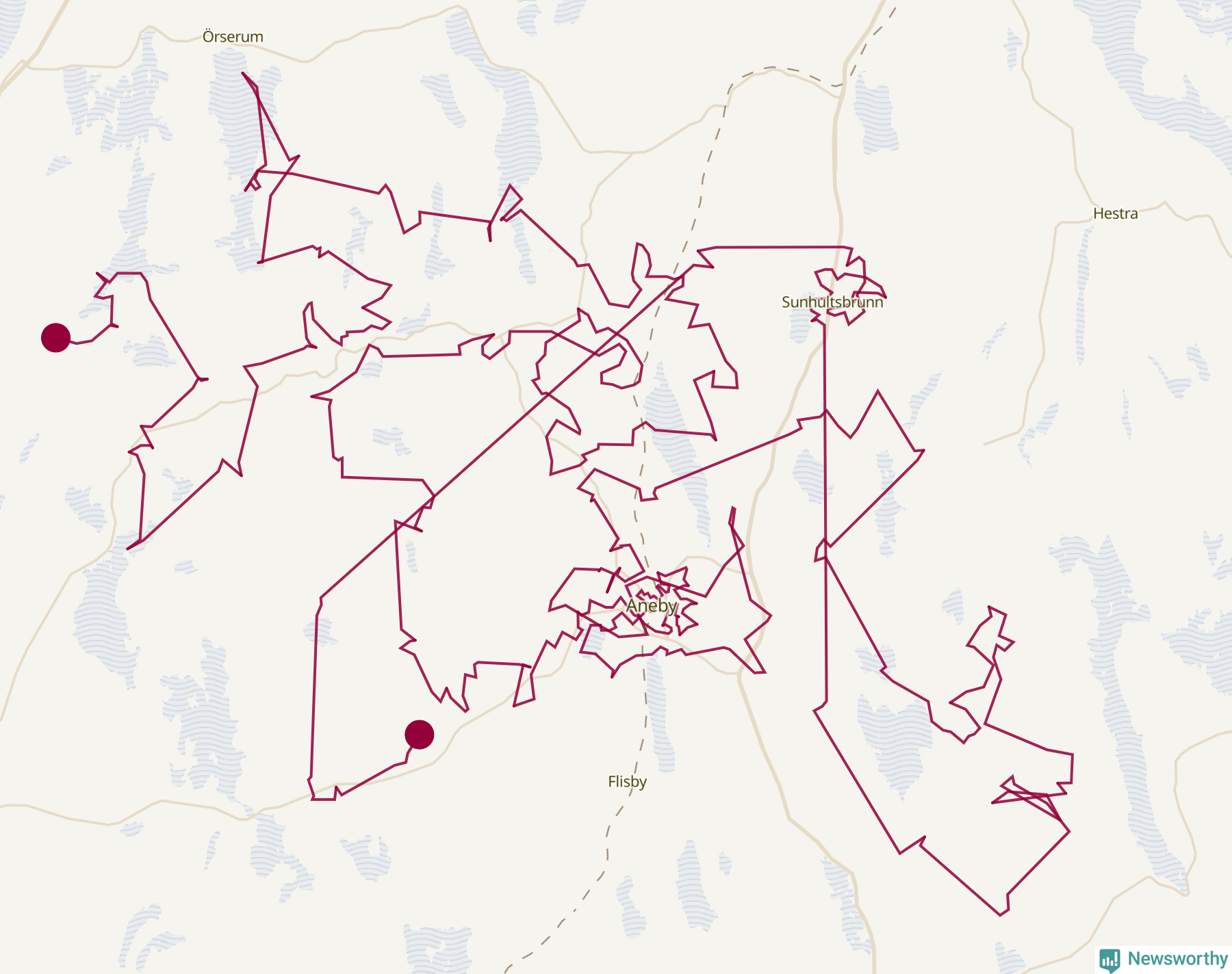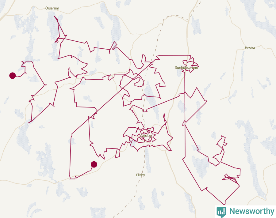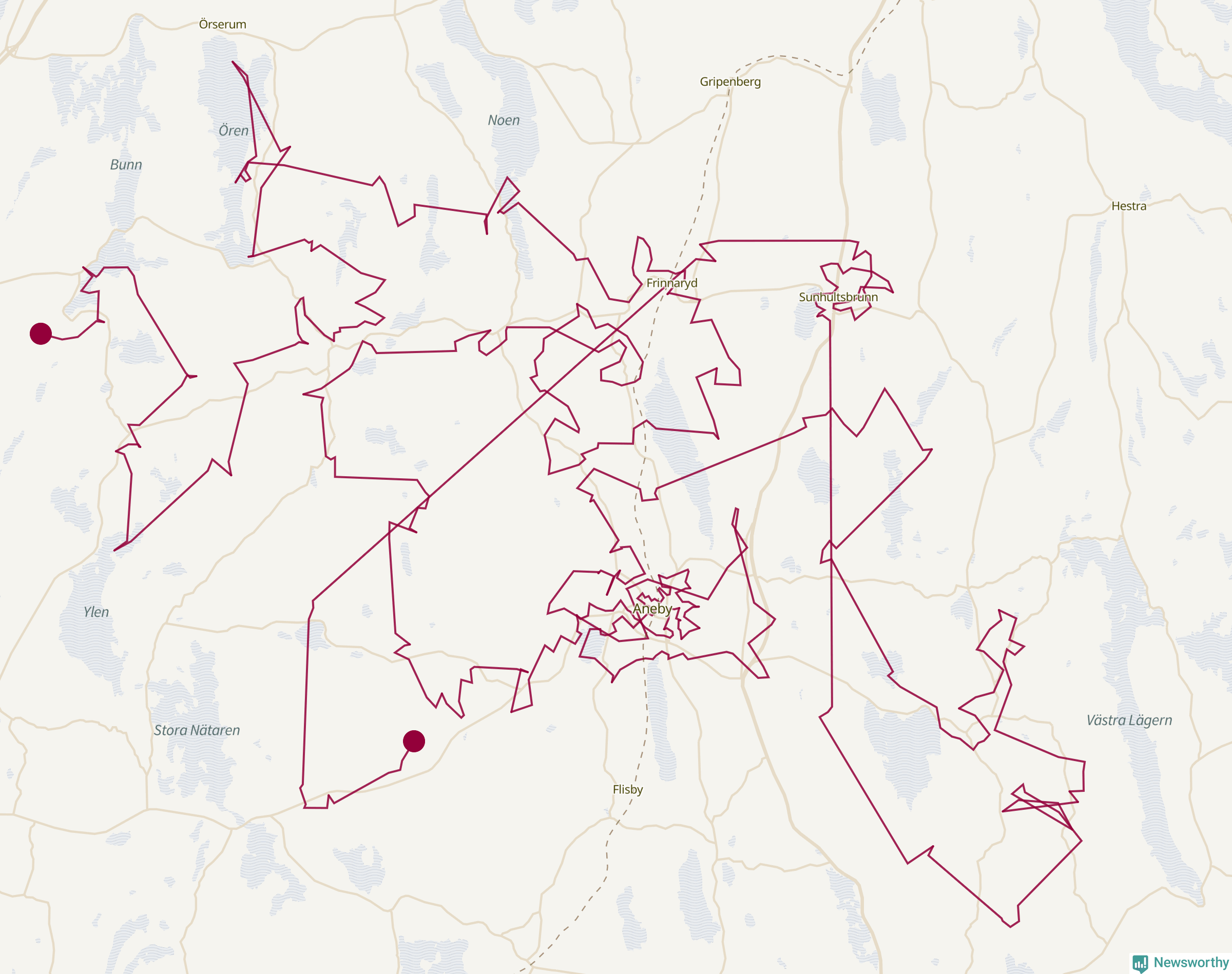 Så här skulle tomtens resa kunna se ut i Aneby: