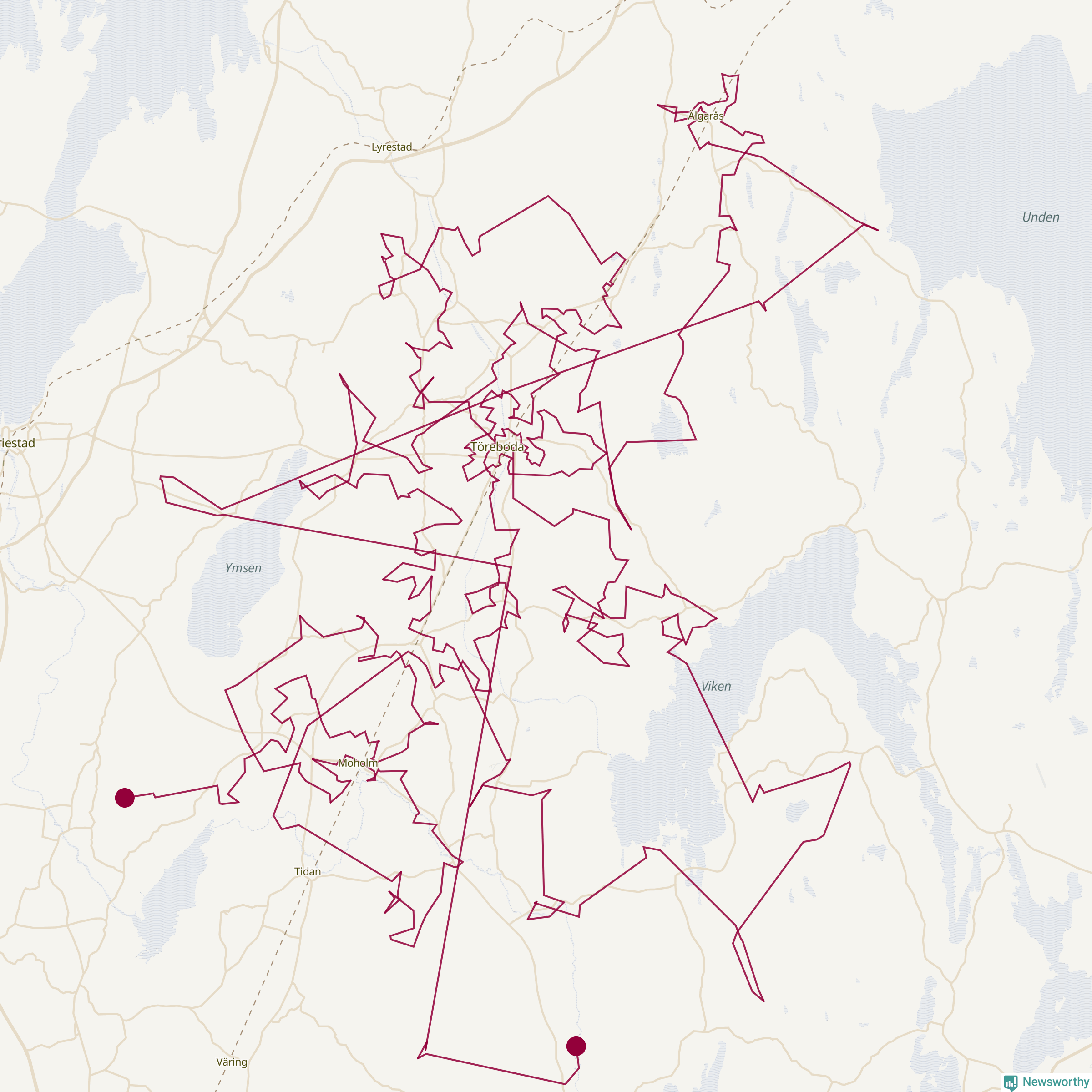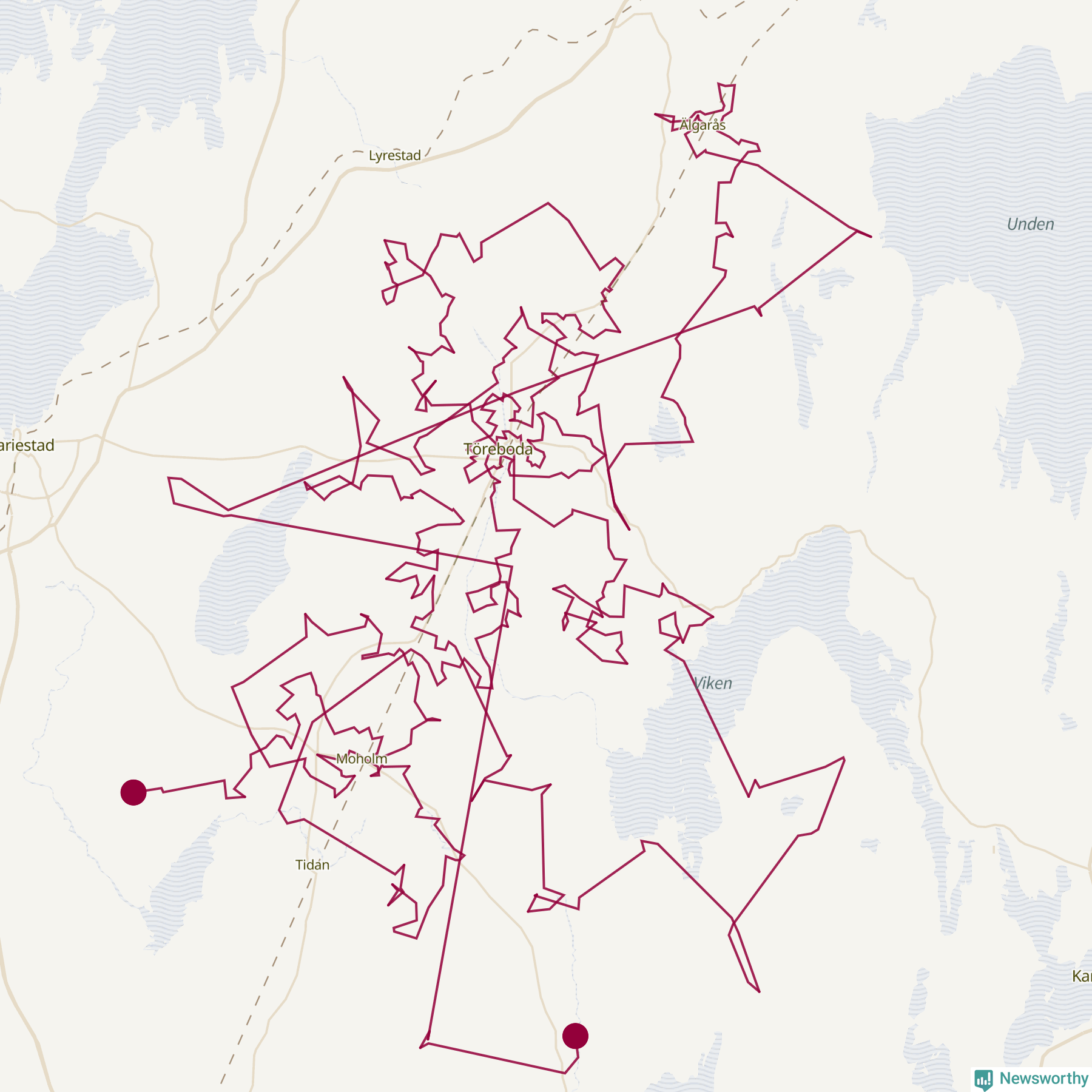 Och det finns färdiga matematiska modeller för att lösa problemet. Med statistik från SCB om hur många barn det bor i olika delar av kommunen har Newsworthy låtit en algoritm ta fram ett förslag på hur en optimal resväg skulle kunna se ut (eller åtminstone nästan optimal – algoritmerna för att lösa handelsresandeproblemet kräver extremt mycket datorkraft).