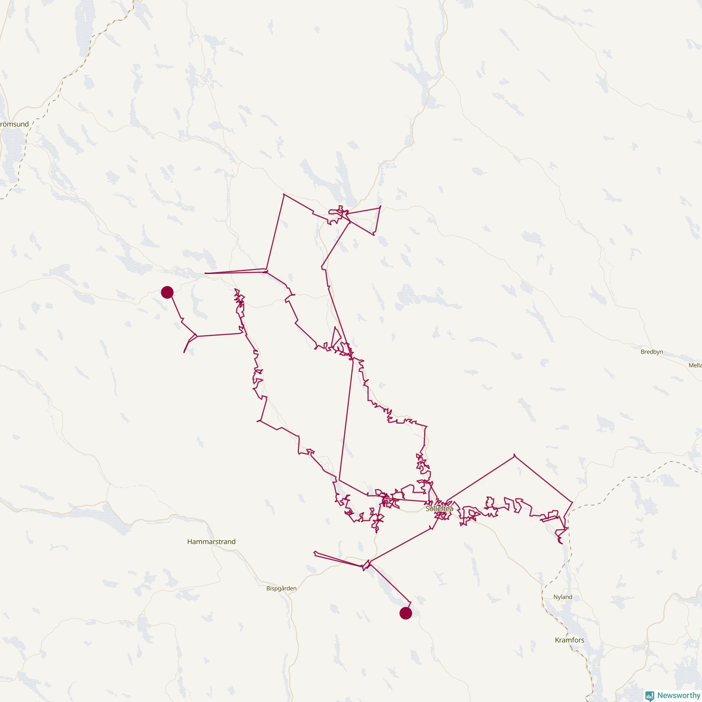 Så här skulle tomtens resa kunna se ut i Sollefteå: