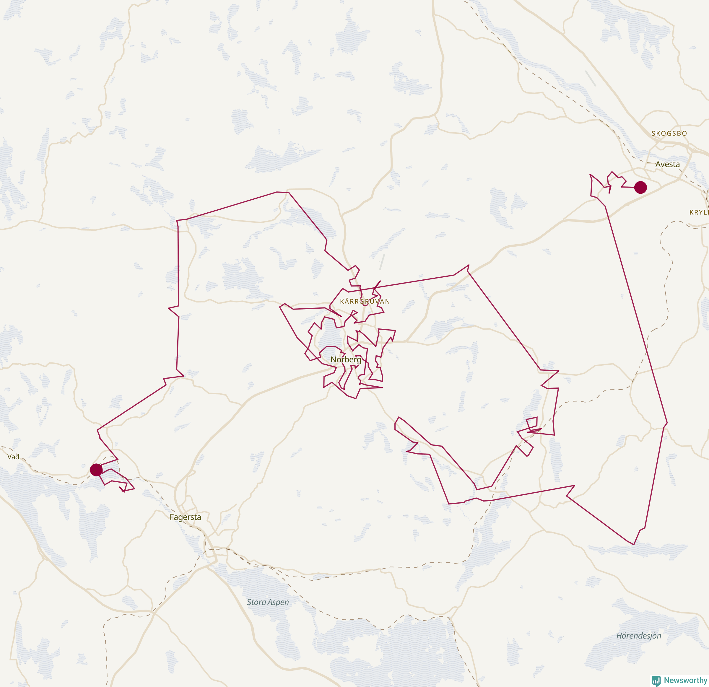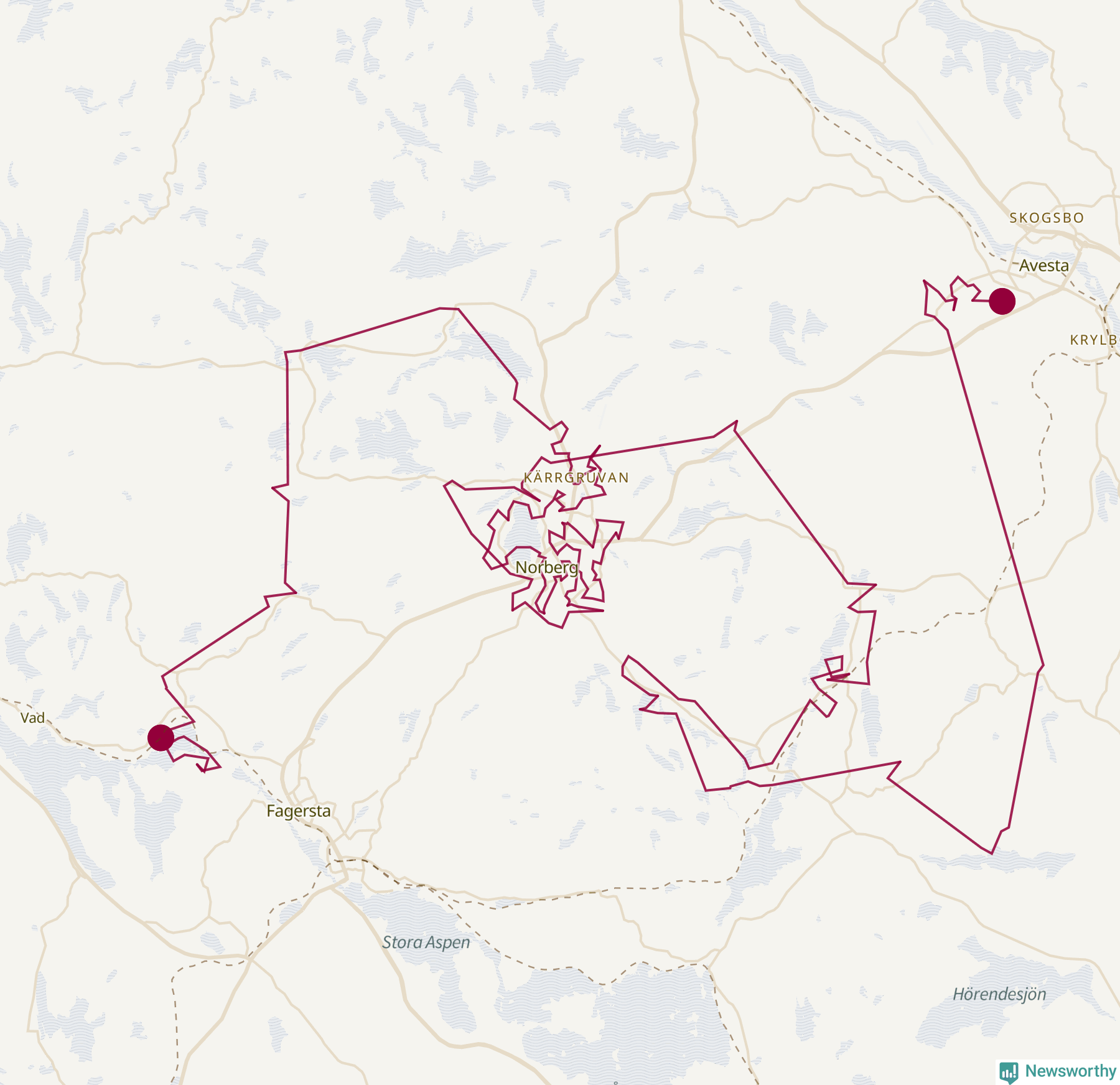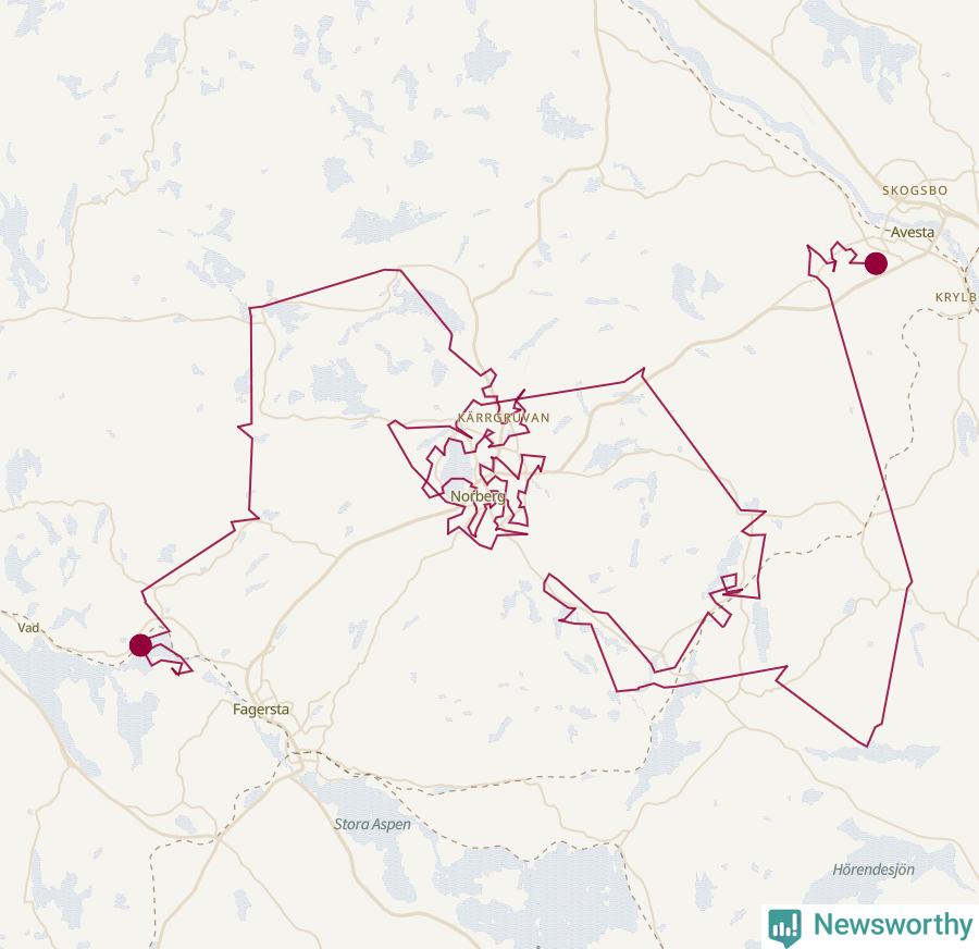 Så här skulle tomtens resa kunna se ut i Norberg: