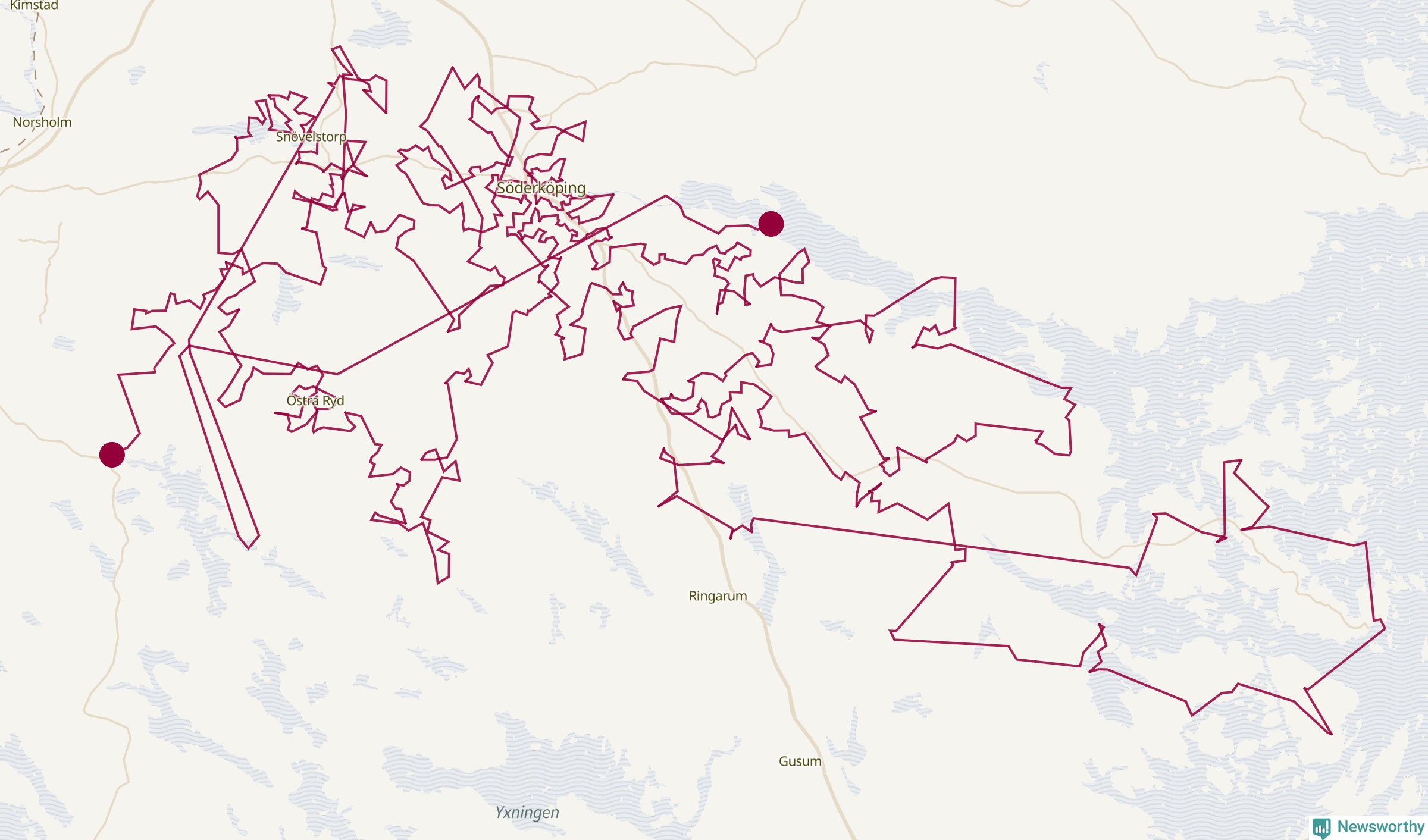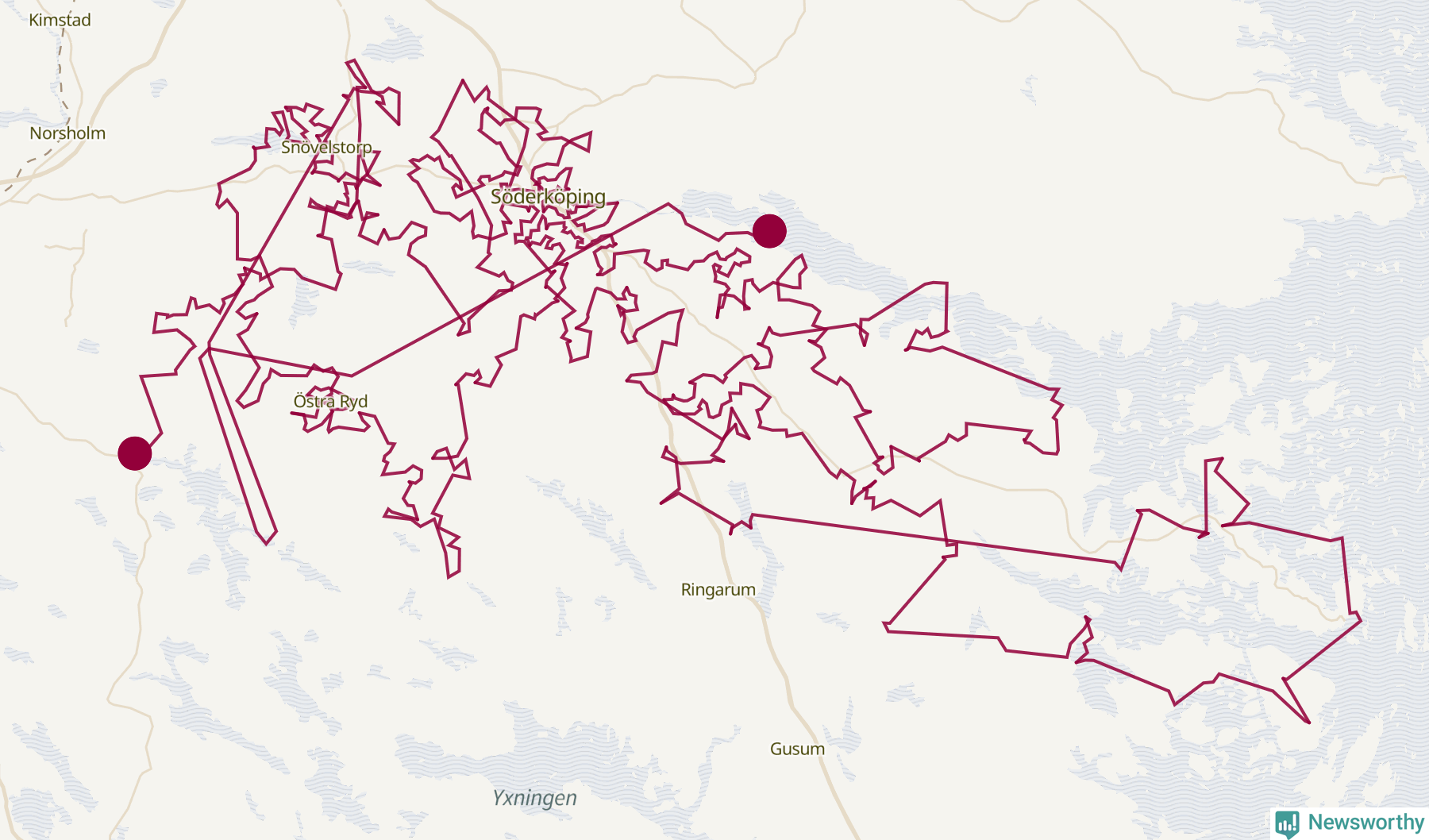Så här skulle tomtens resa kunna se ut i Söderköping: