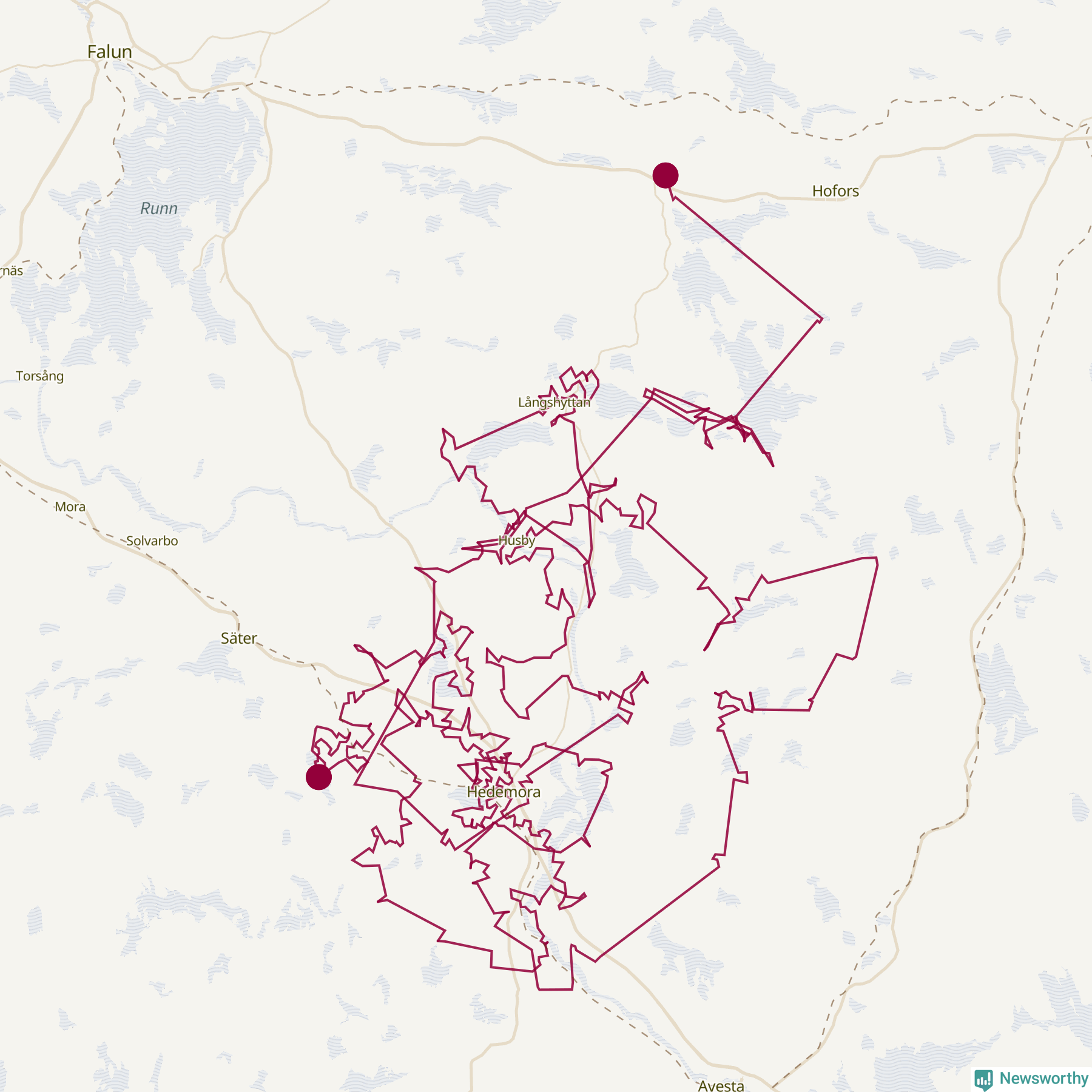 Så här skulle tomtens resa kunna se ut i Hedemora: