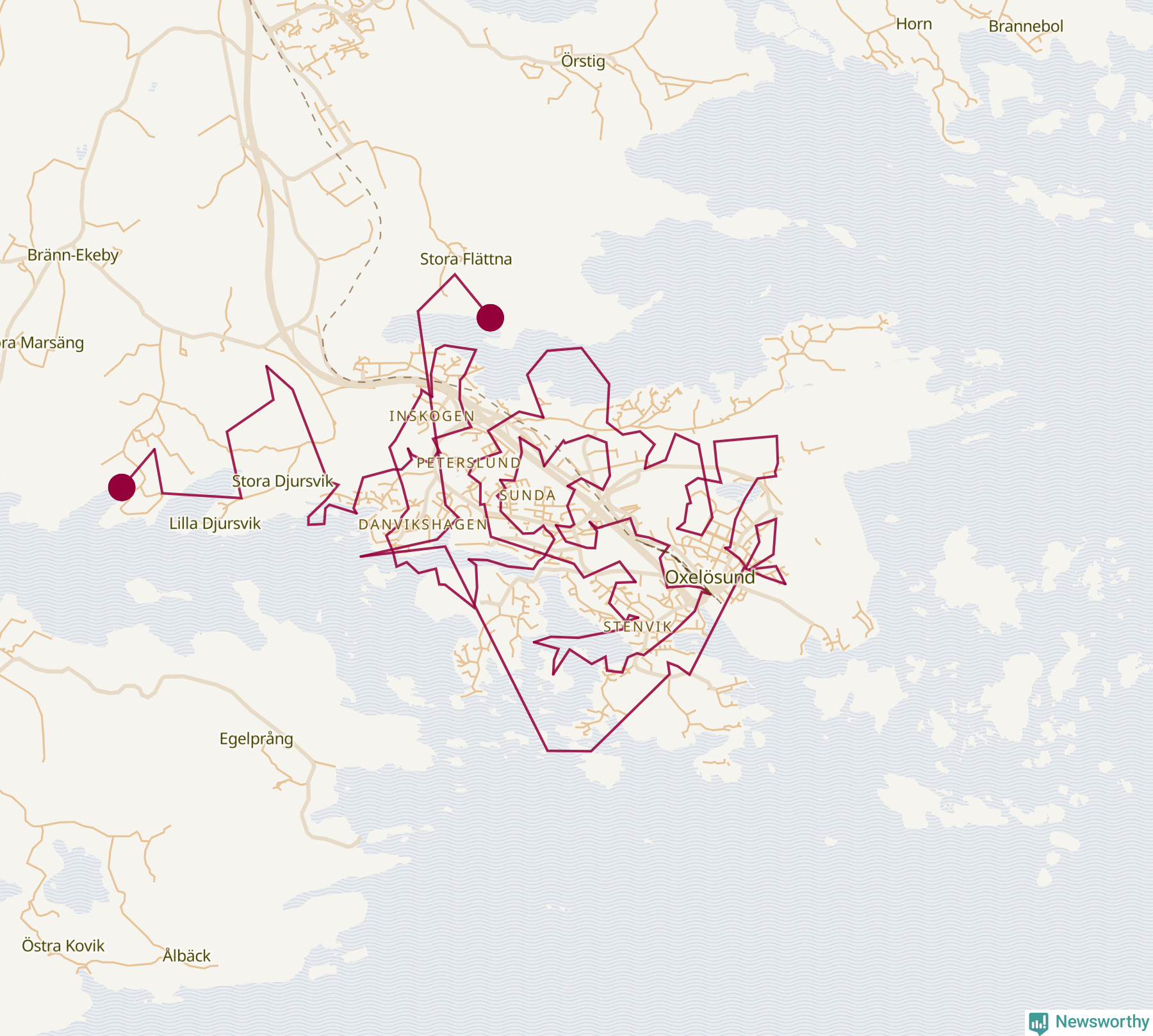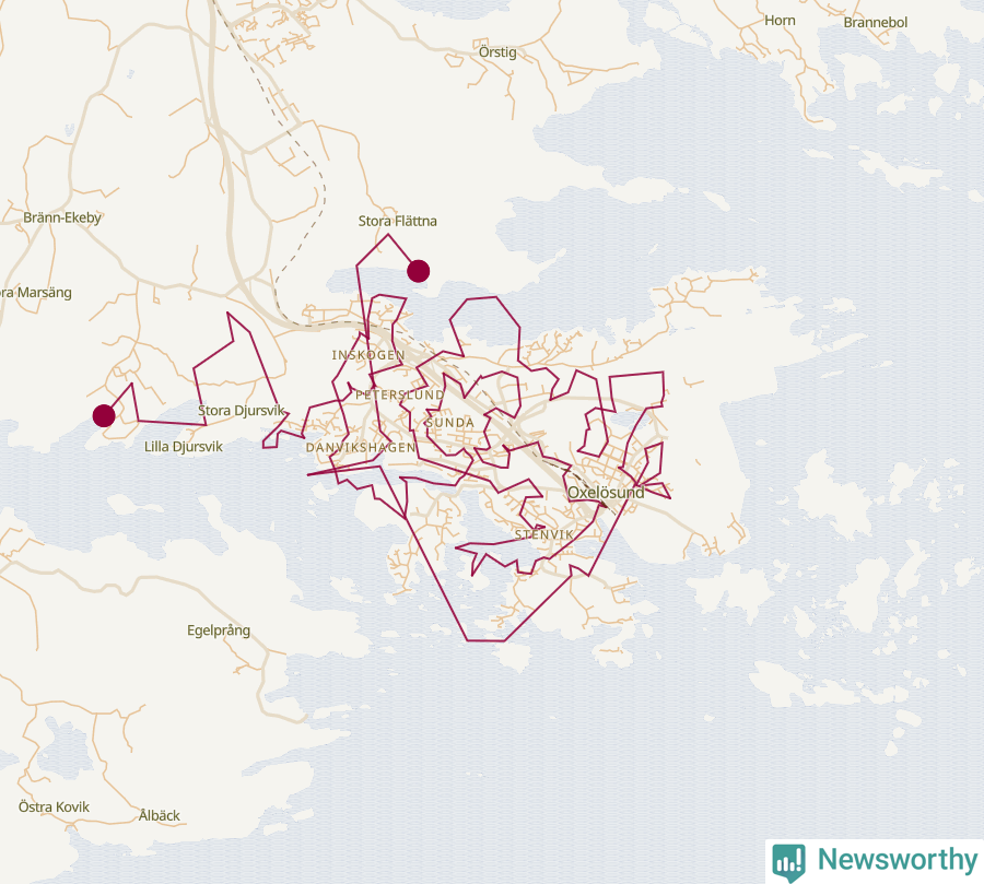 Så här skulle tomtens resa kunna se ut i Oxelösund: