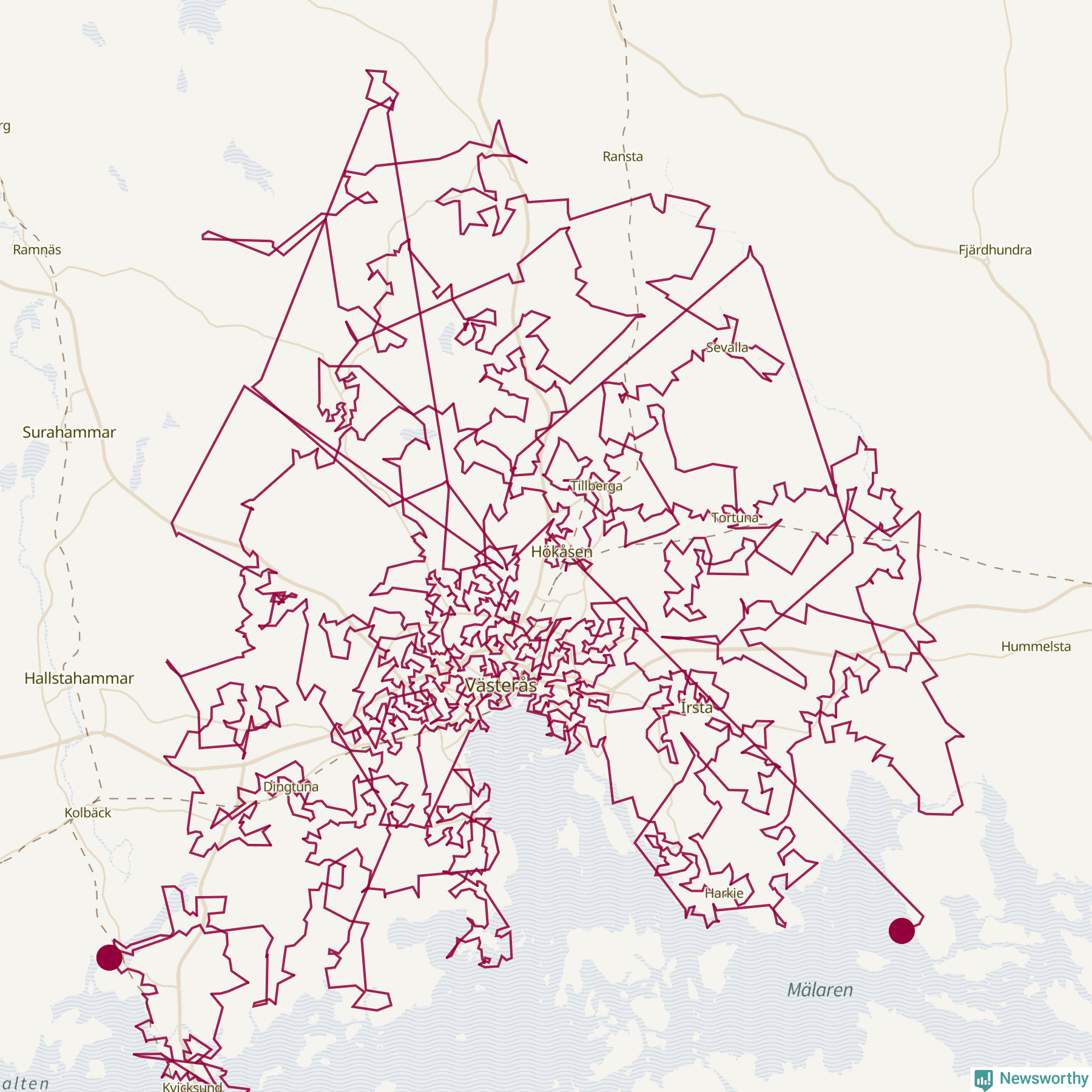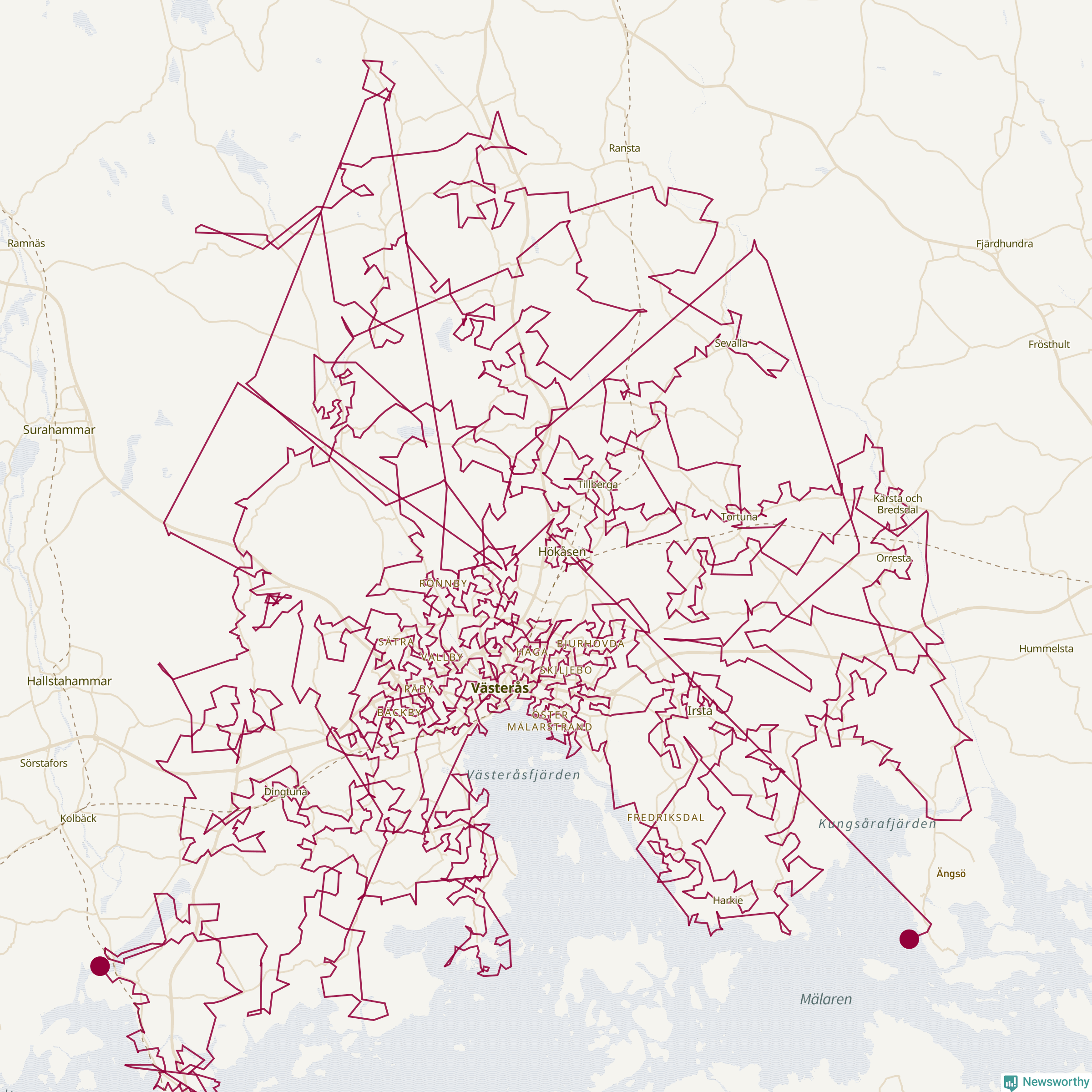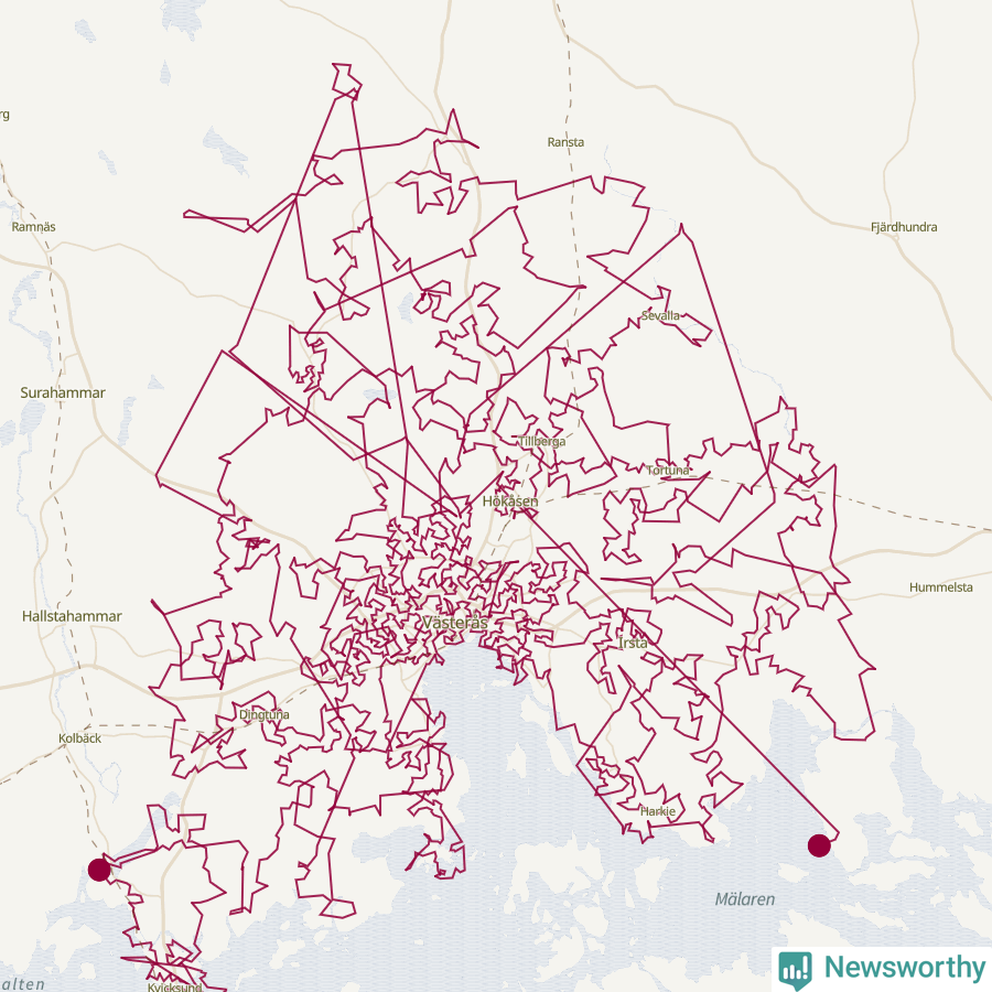 Så här skulle tomtens resa kunna se ut i Västerås: