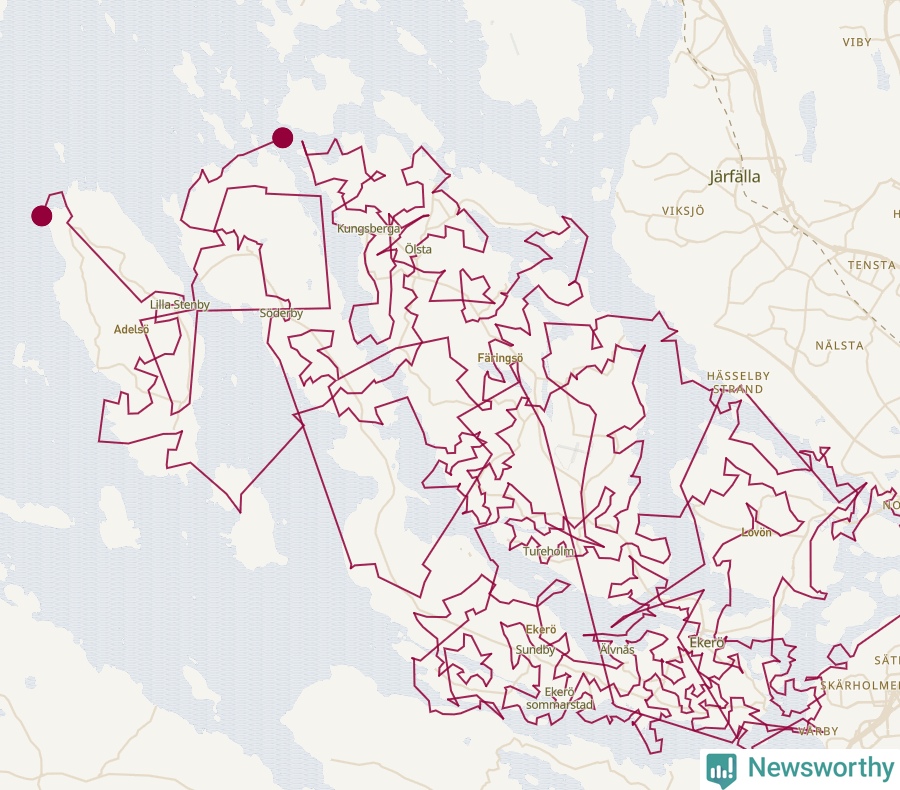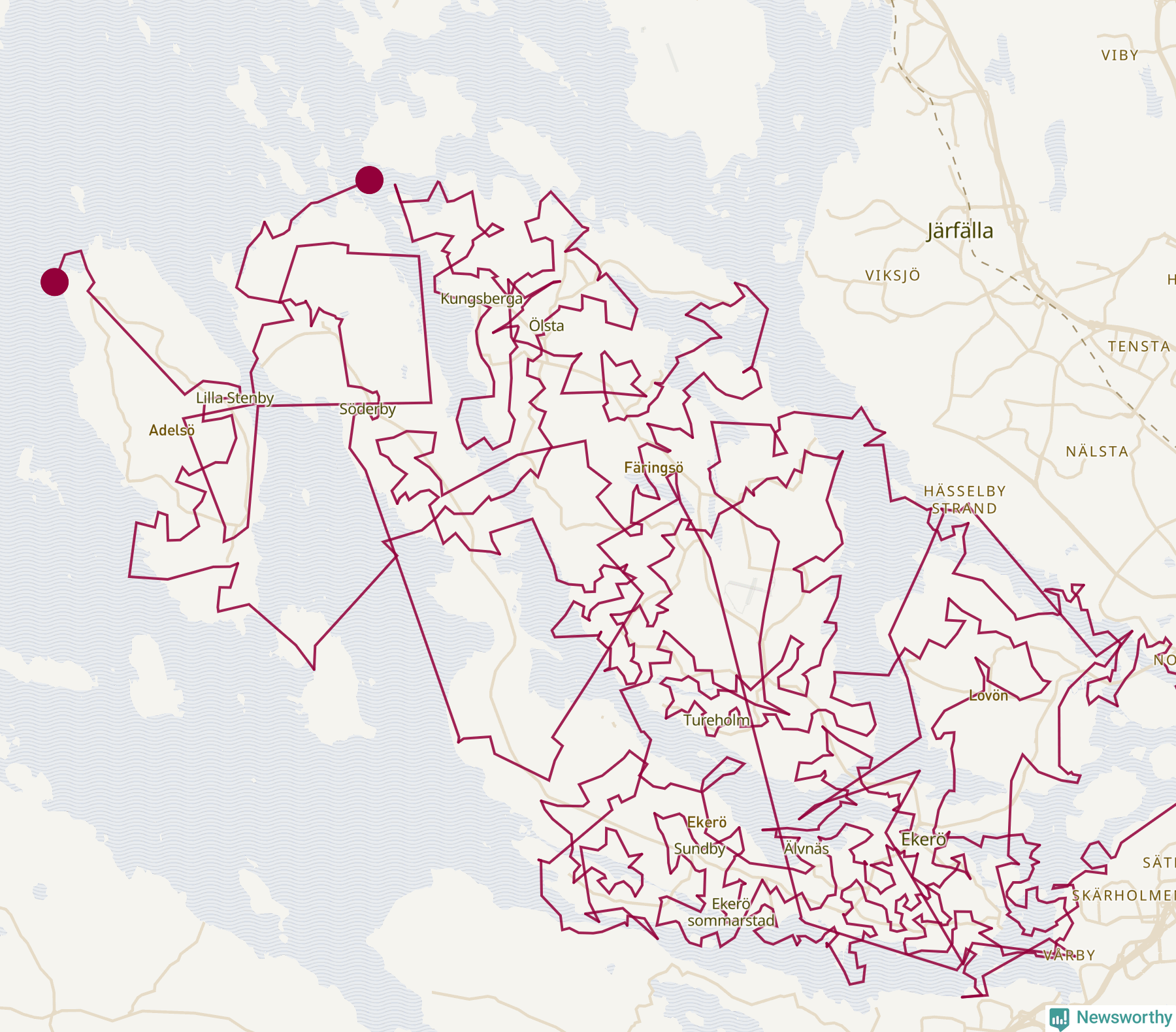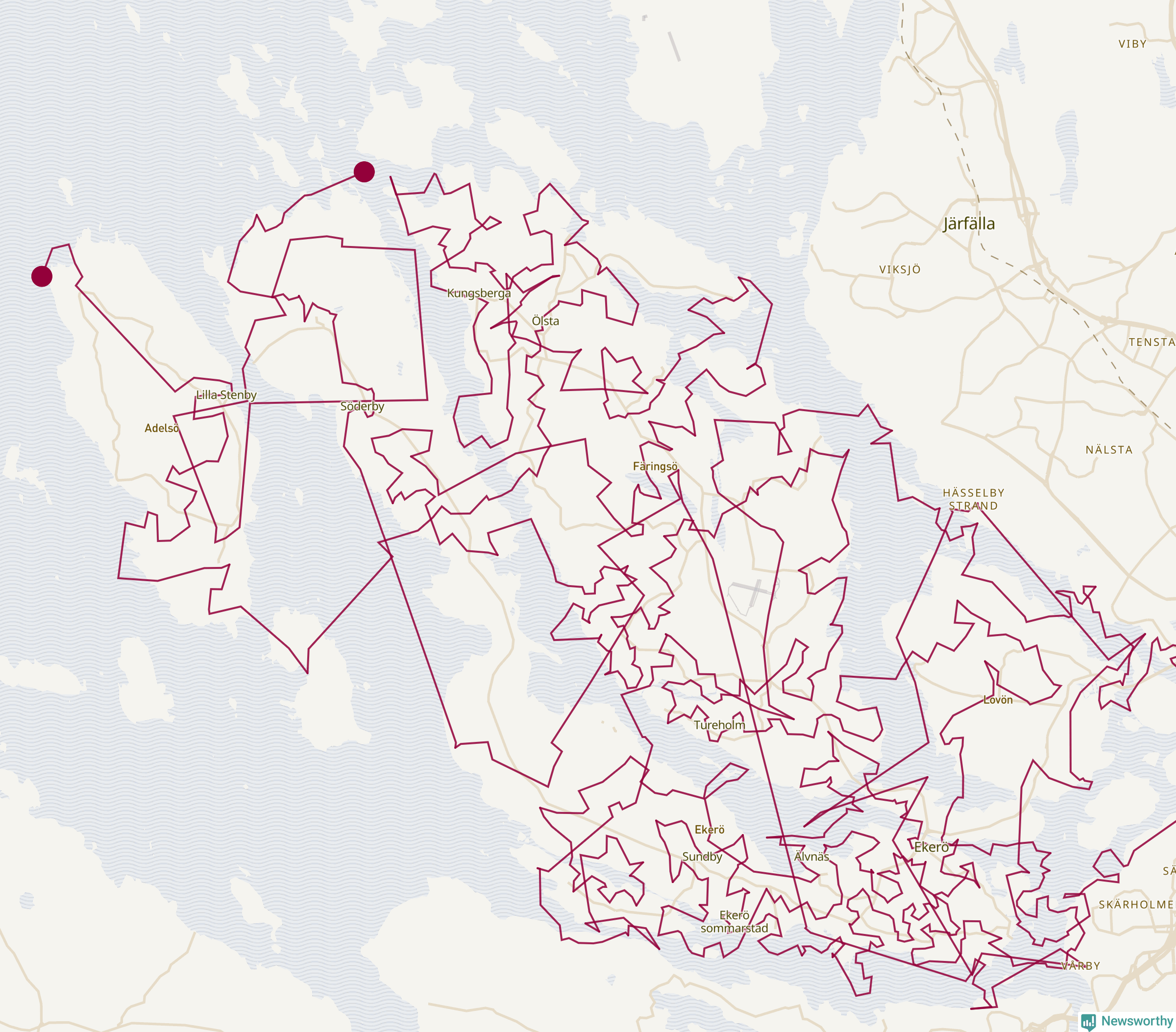 Så här skulle tomtens resa kunna se ut i Ekerö: