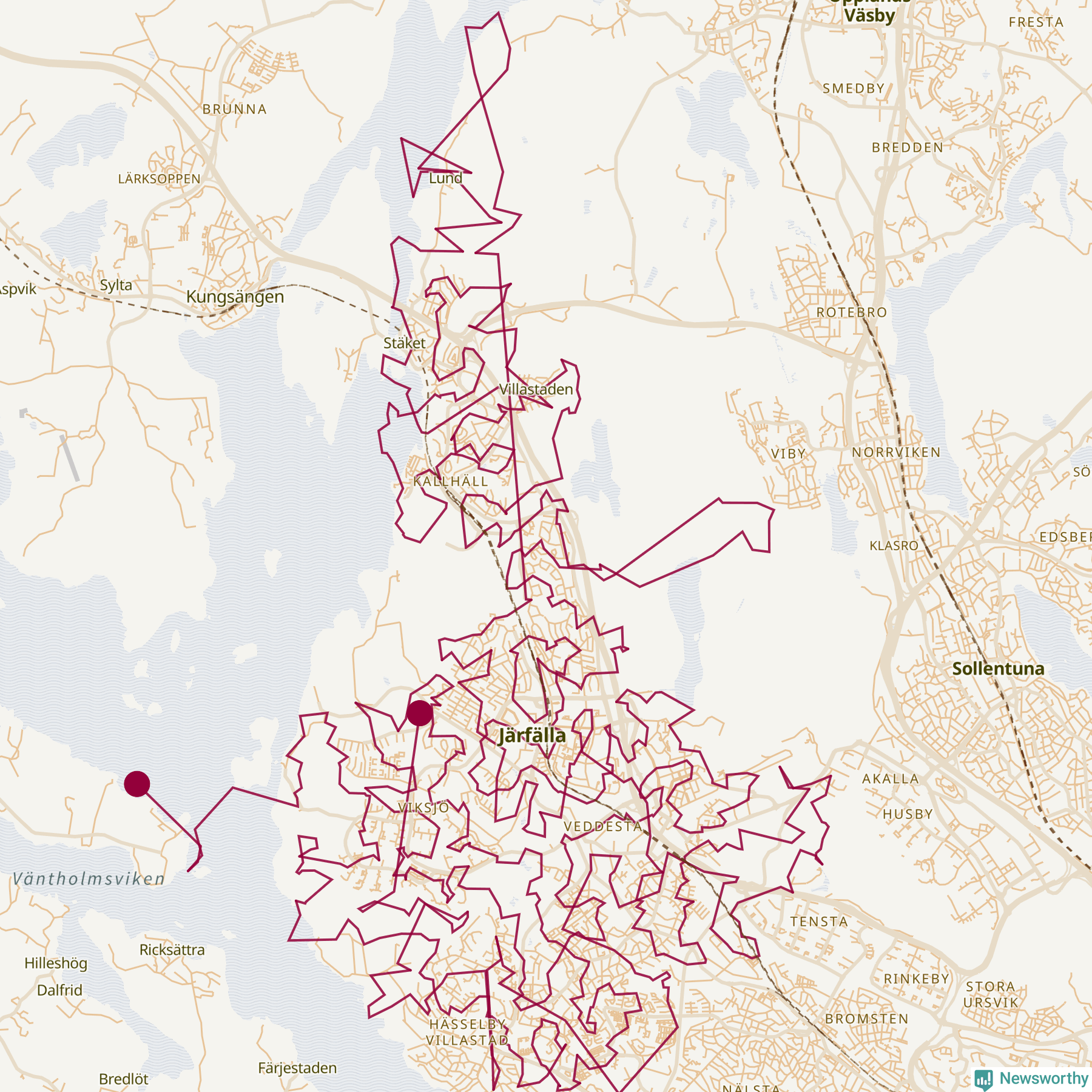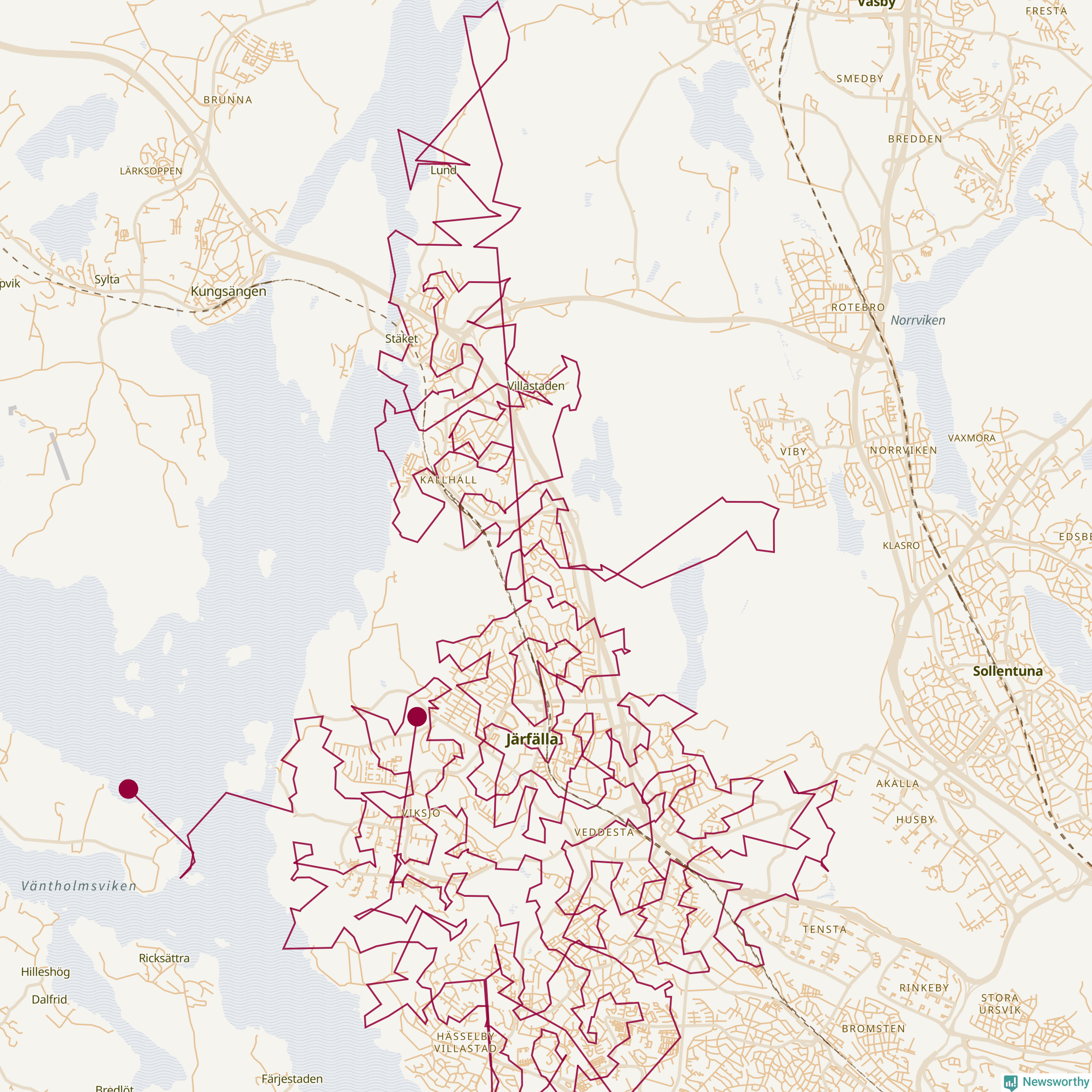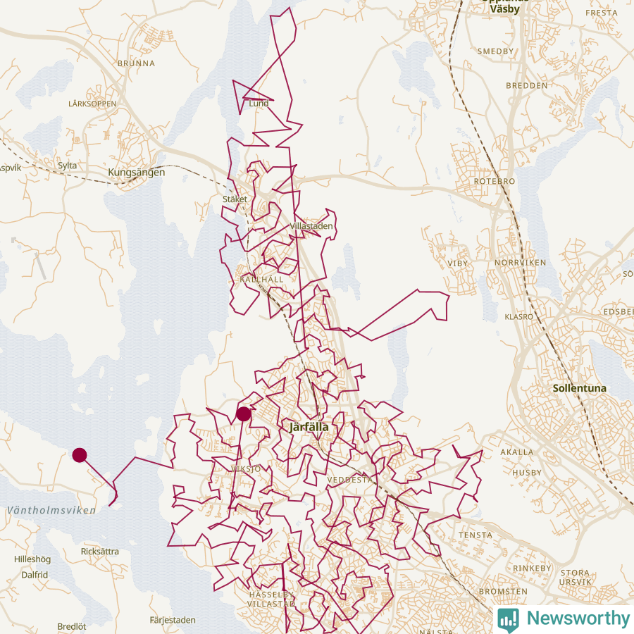 Så här skulle tomtens resa kunna se ut i Järfälla: