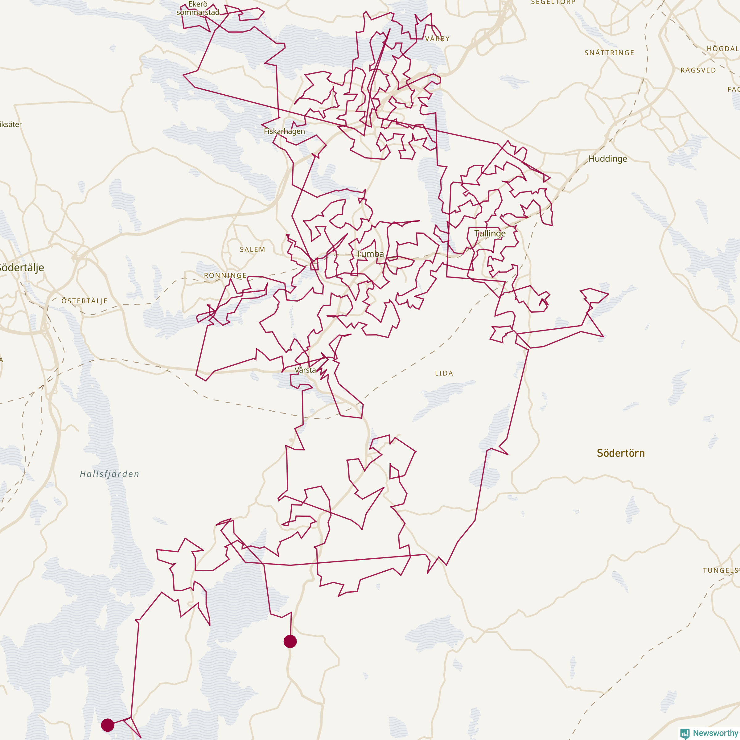 Så här rekommenderar vi att tomten reser för att hinna besöka alla barn i Botkyrka.