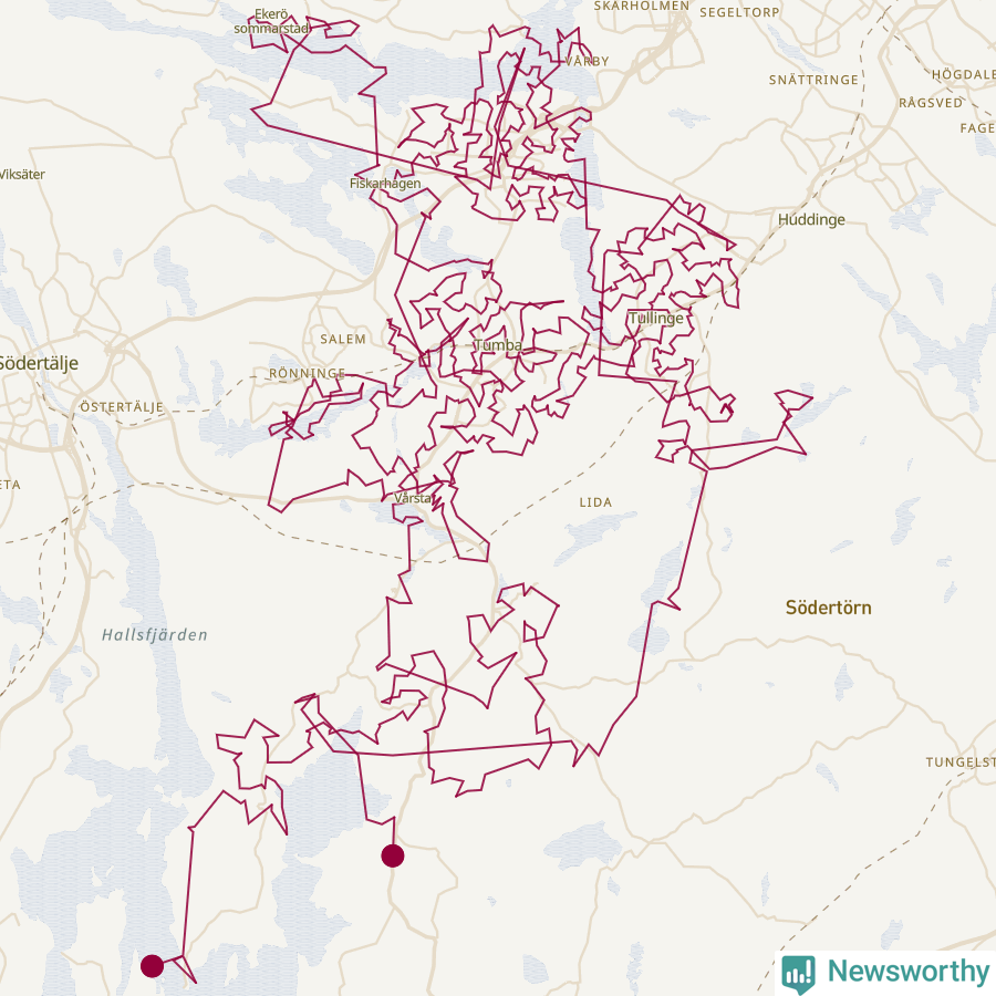 Så här skulle tomtens resa kunna se ut i Botkyrka: