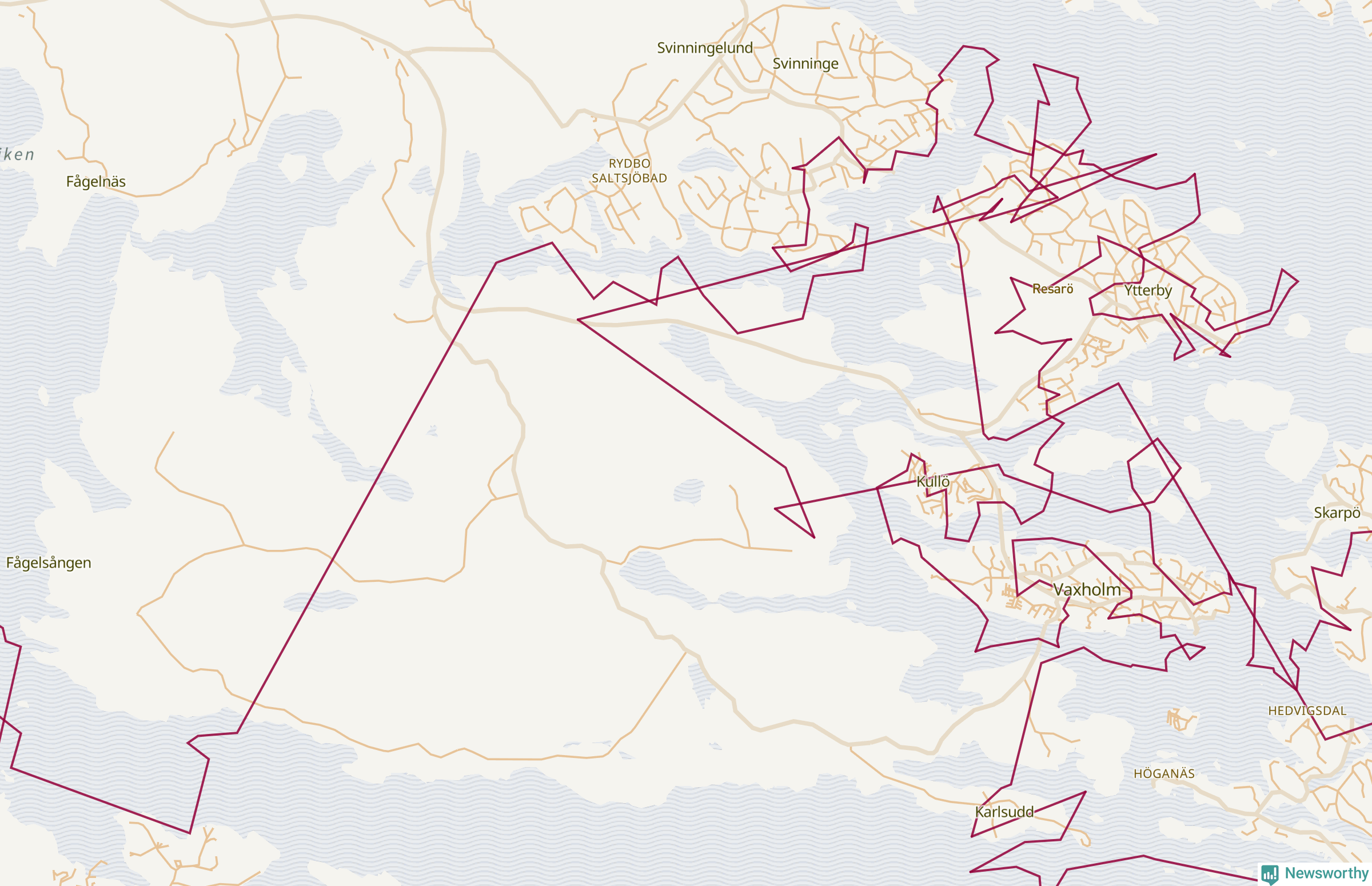 Och det finns färdiga matematiska modeller för att lösa problemet. Med statistik från SCB om hur många barn det bor i olika delar av kommunen har Newsworthy låtit en algoritm ta fram ett förslag på hur en optimal resväg skulle kunna se ut (eller åtminstone nästan optimal – algoritmerna för att lösa handelsresandeproblemet kräver extremt mycket datorkraft).