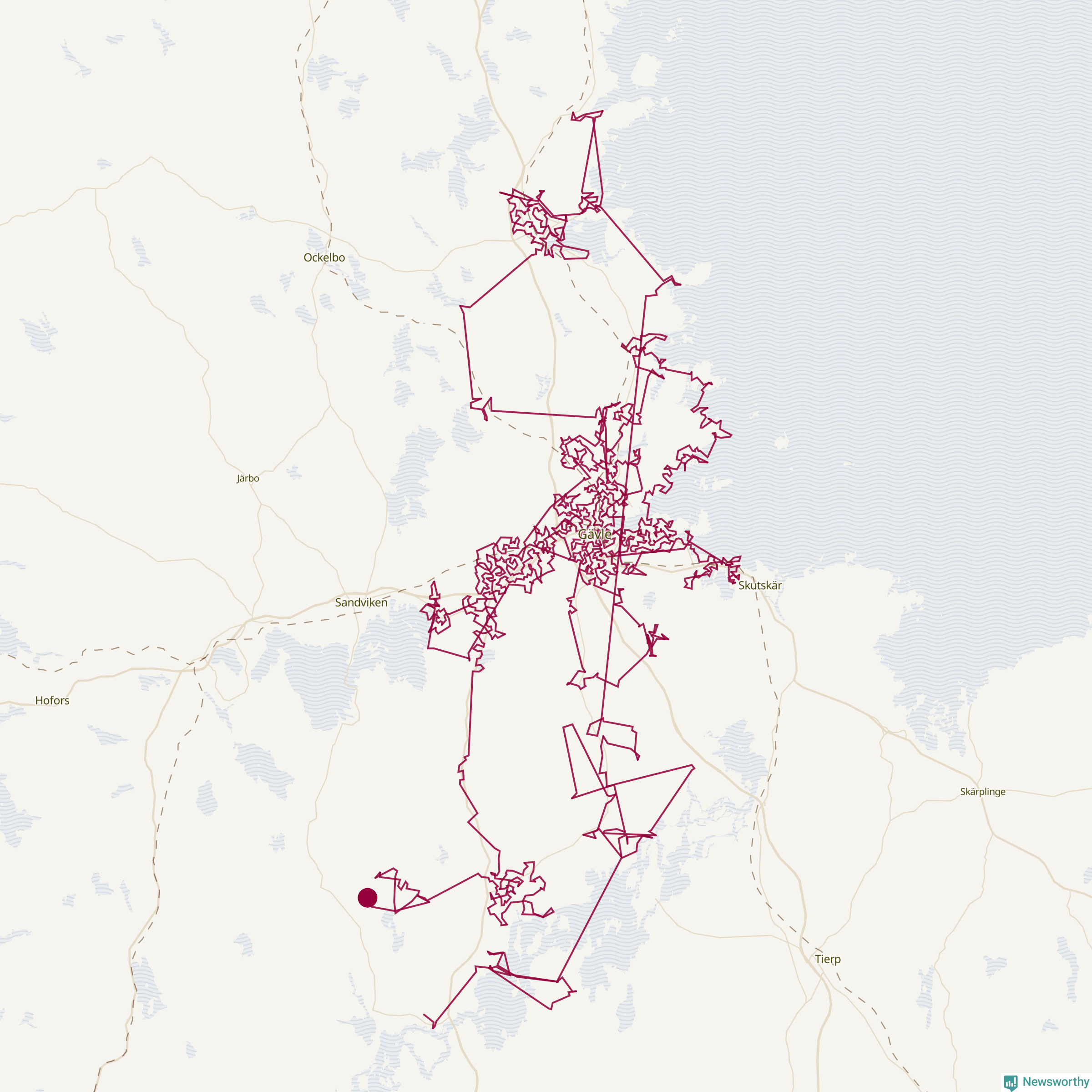 Och det finns färdiga matematiska modeller för att lösa problemet. Med statistik från SCB om hur många barn det bor i olika delar av kommunen har Newsworthy låtit en algoritm ta fram ett förslag på hur en optimal resväg skulle kunna se ut (eller åtminstone nästan optimal – algoritmerna för att lösa handelsresandeproblemet kräver extremt mycket datorkraft).