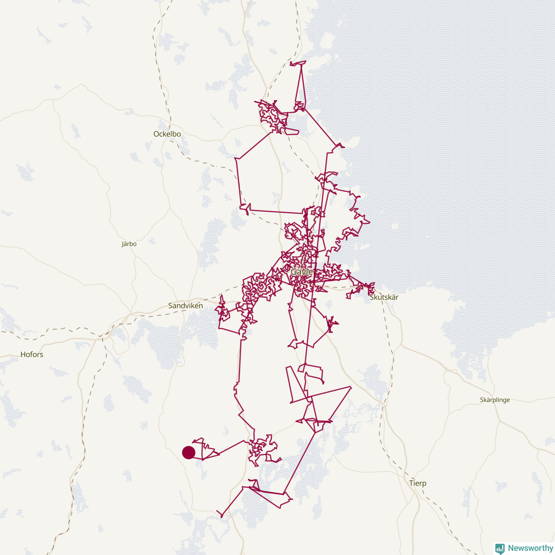 Så här rekommenderar vi att tomten reser för att hinna besöka alla barn i Gävle.