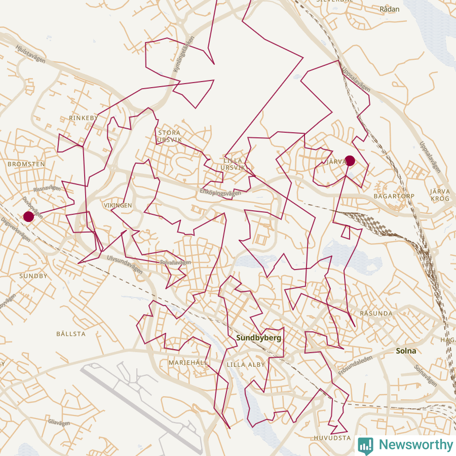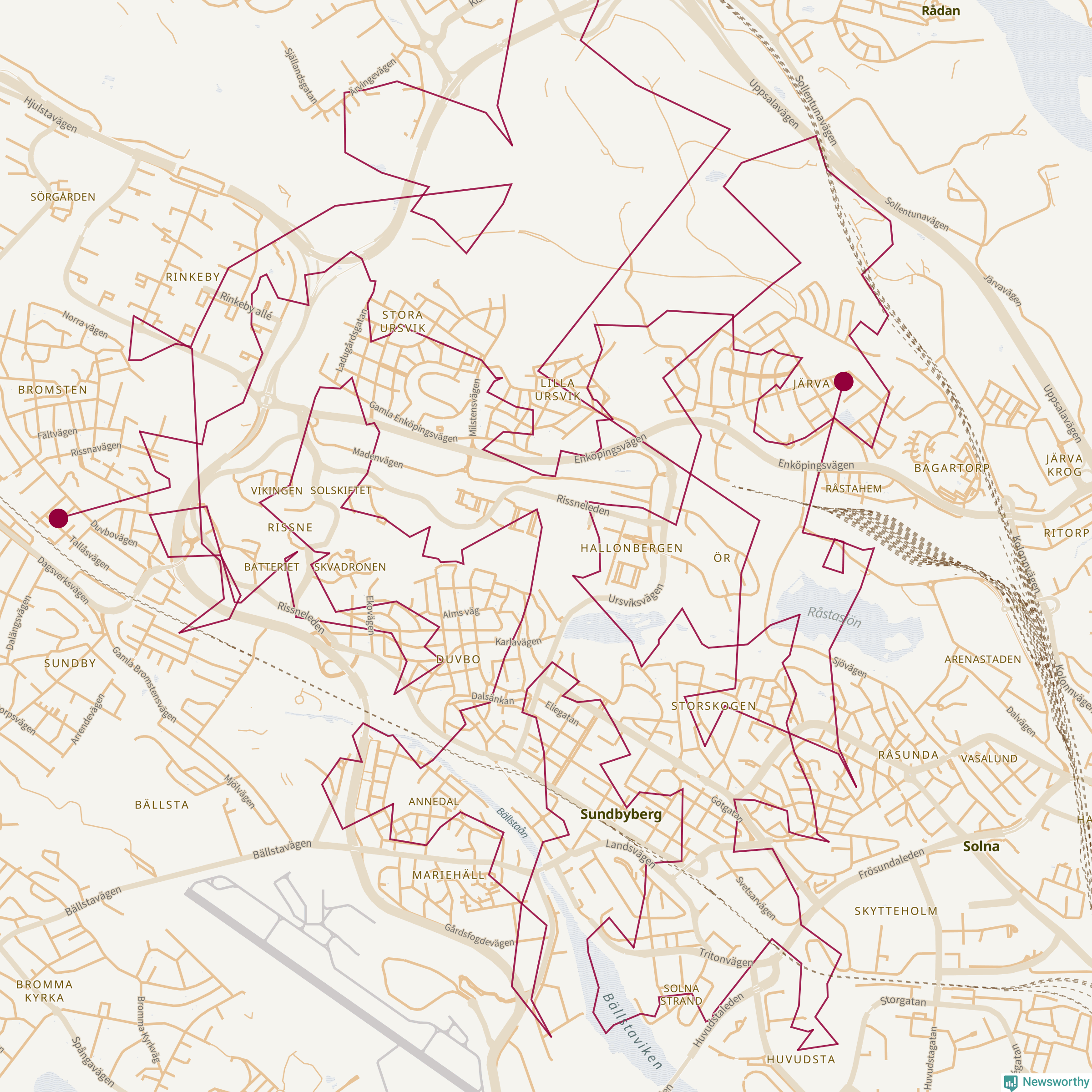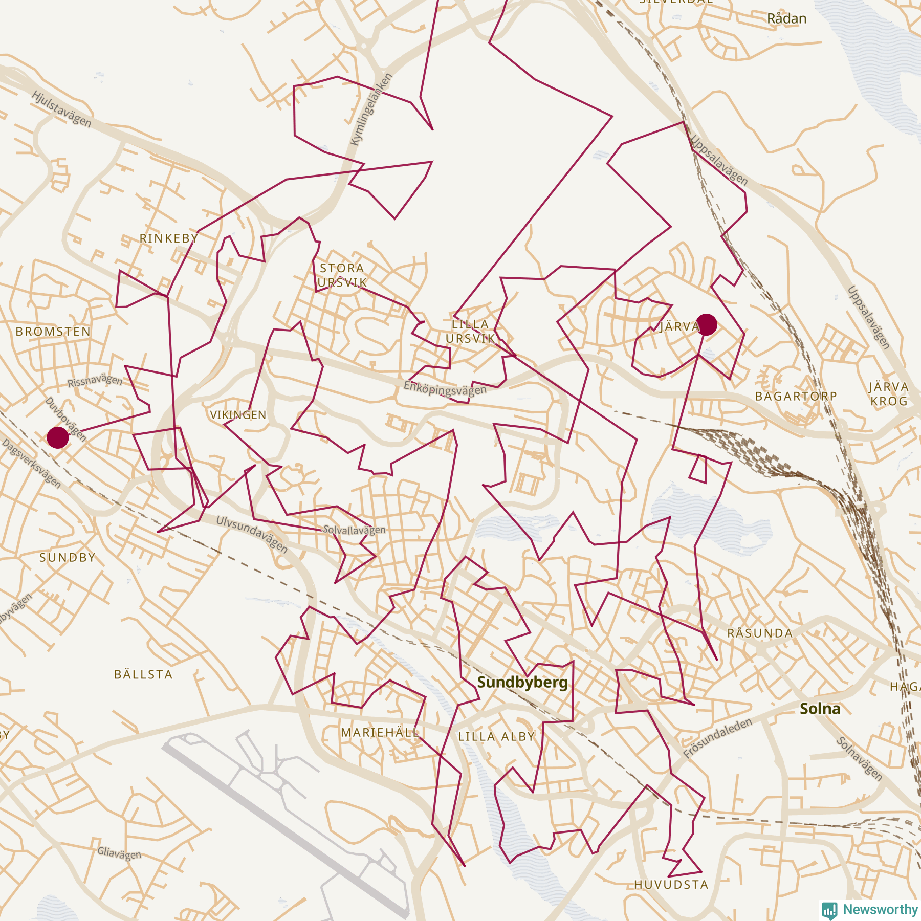 Så här skulle tomtens resa kunna se ut i Sundbyberg: