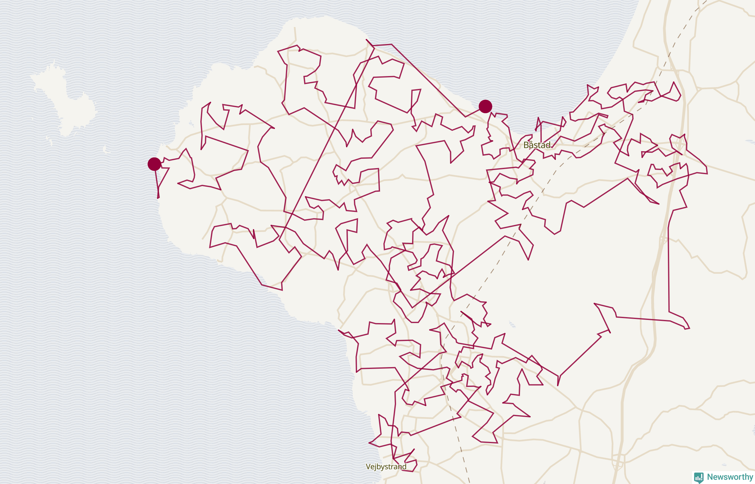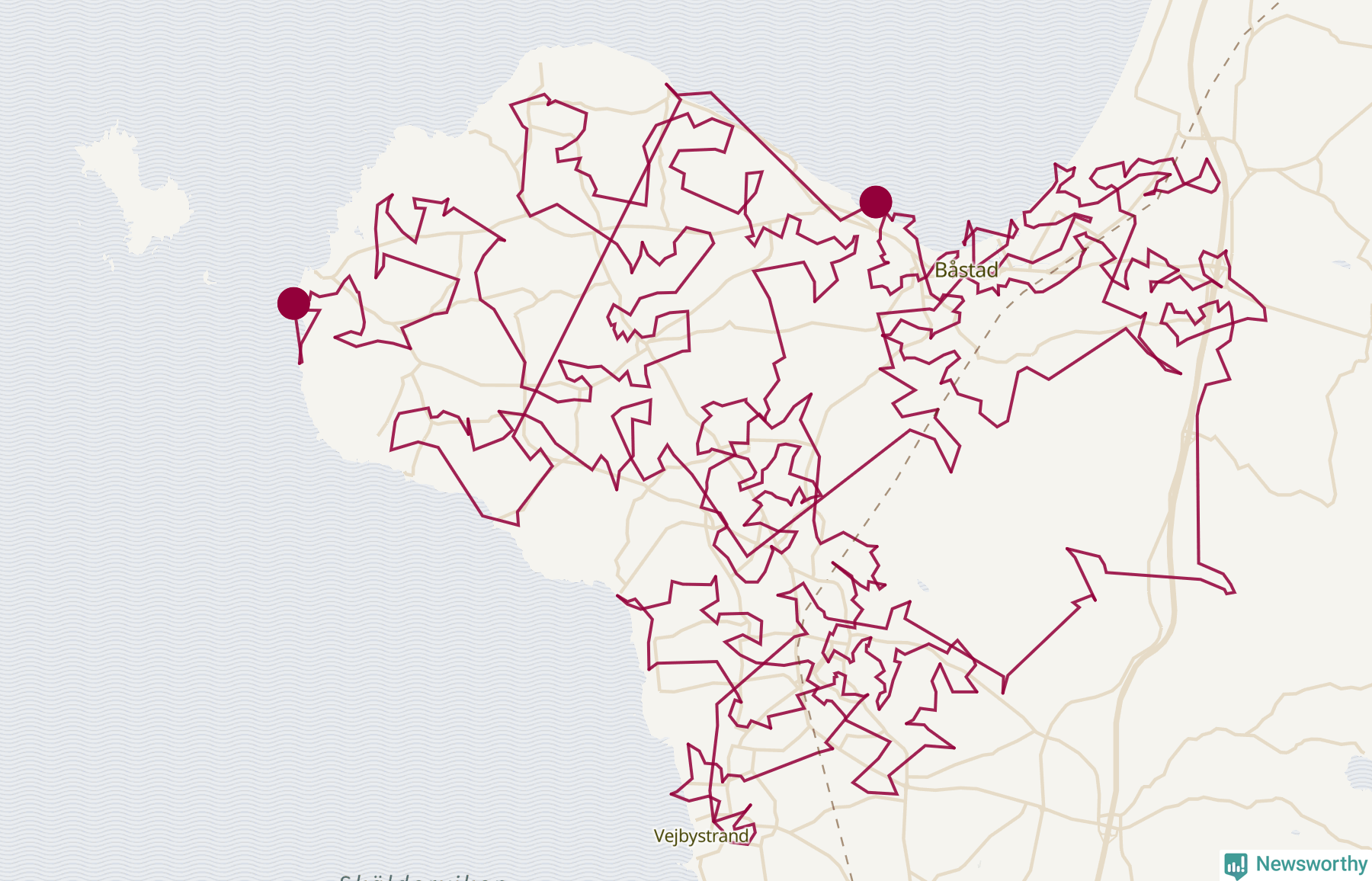 Så här skulle tomtens resa kunna se ut i Båstad: