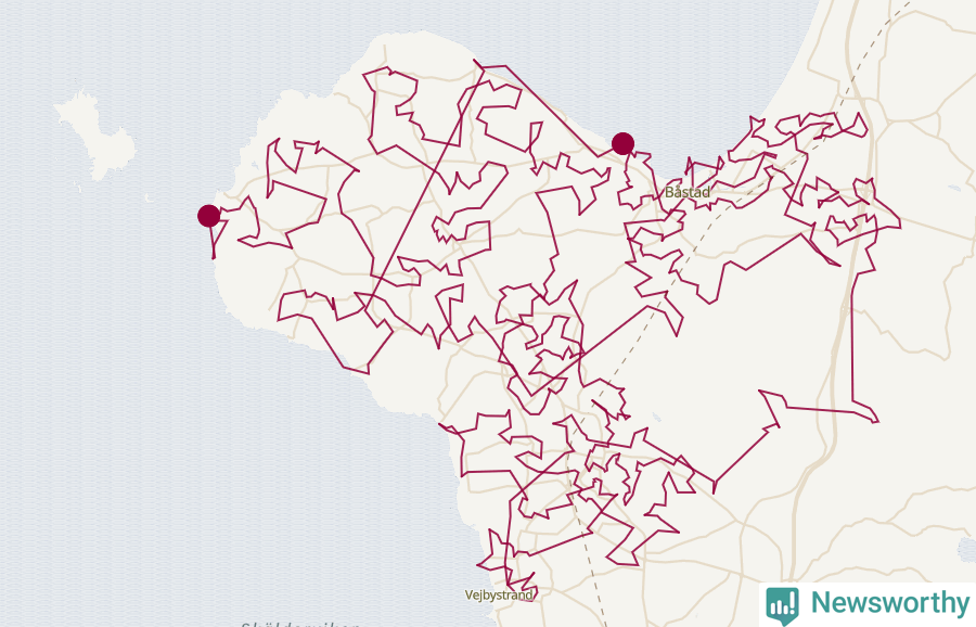 Och det finns färdiga matematiska modeller för att lösa problemet. Med statistik från SCB om hur många barn det bor i olika delar av kommunen har Newsworthy låtit en algoritm ta fram ett förslag på hur en optimal resväg skulle kunna se ut (eller åtminstone nästan optimal – algoritmerna för att lösa handelsresandeproblemet kräver extremt mycket datorkraft).