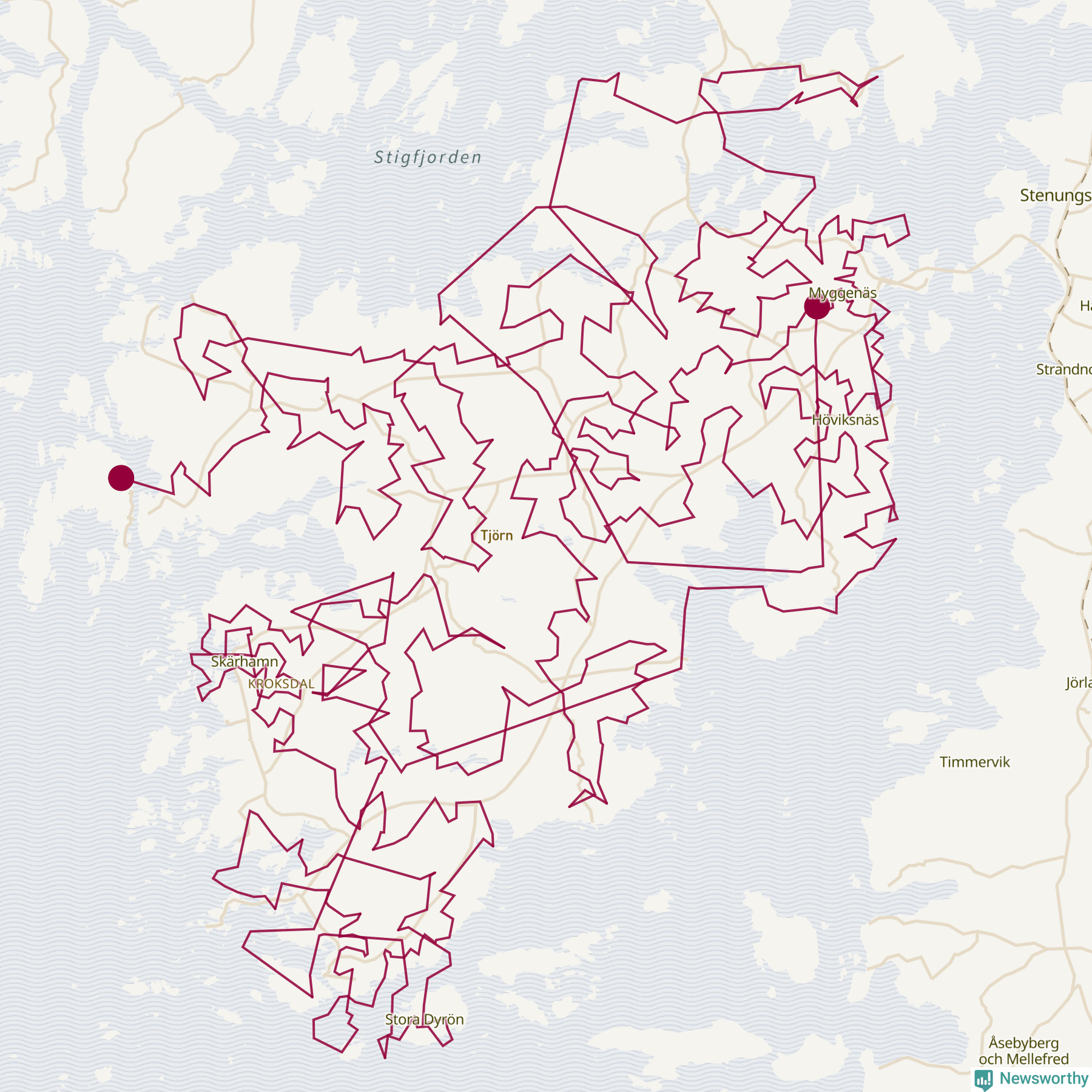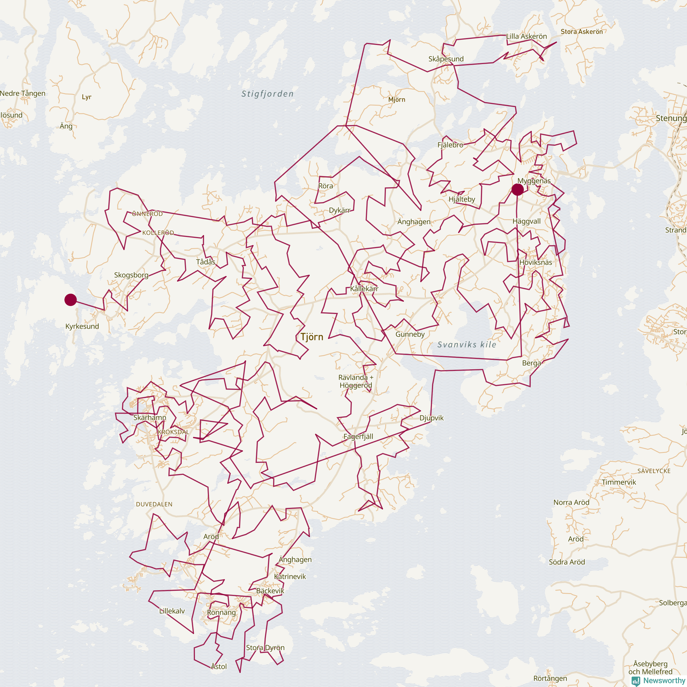 Karta: Här är tomtens optimala rutt på Tjörn