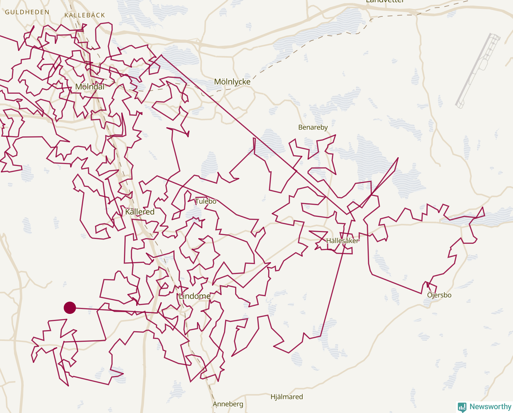 Så här skulle tomtens resa kunna se ut i Mölndal: