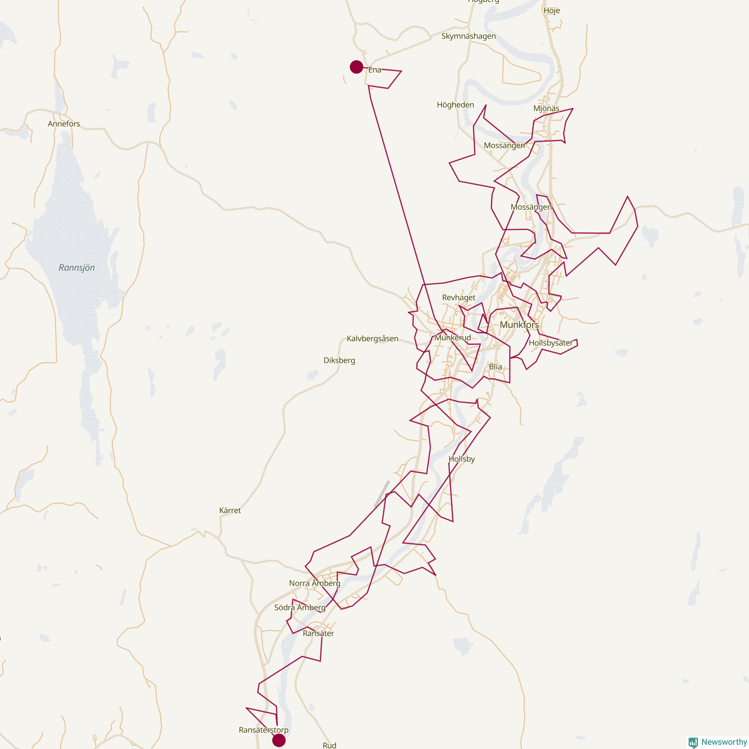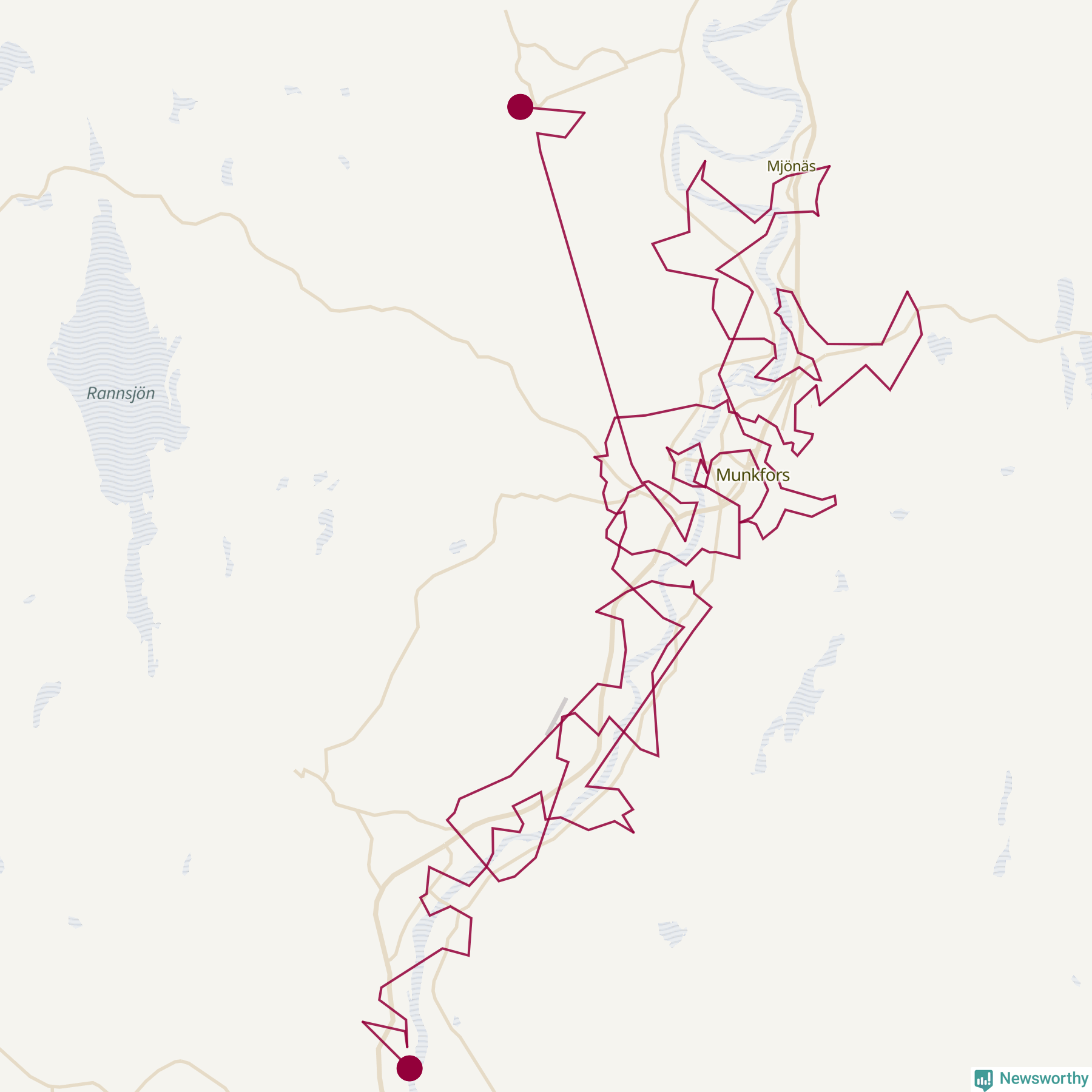 Så här skulle tomtens resa kunna se ut i Munkfors: