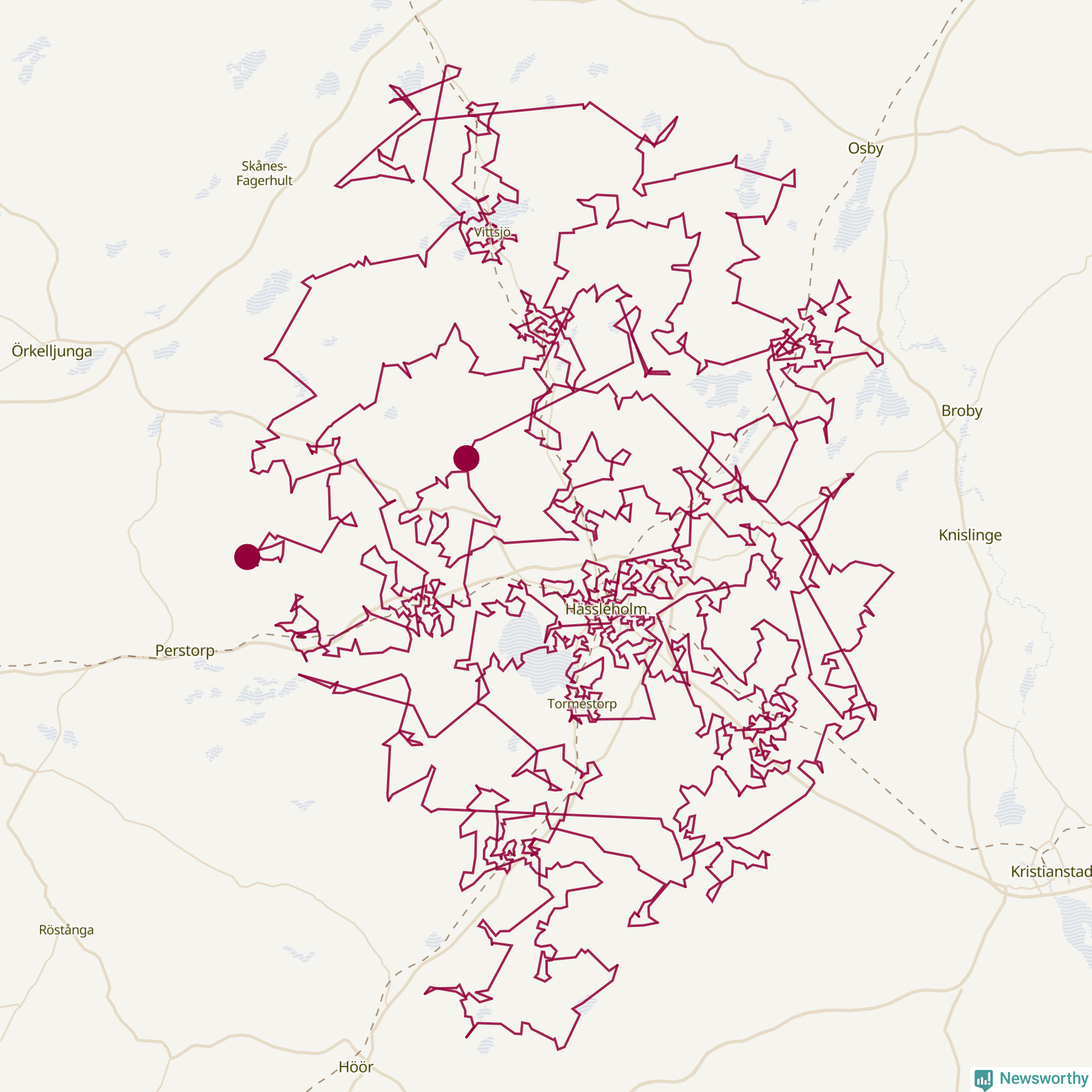 Så här skulle tomtens resa kunna se ut i Hässleholm: