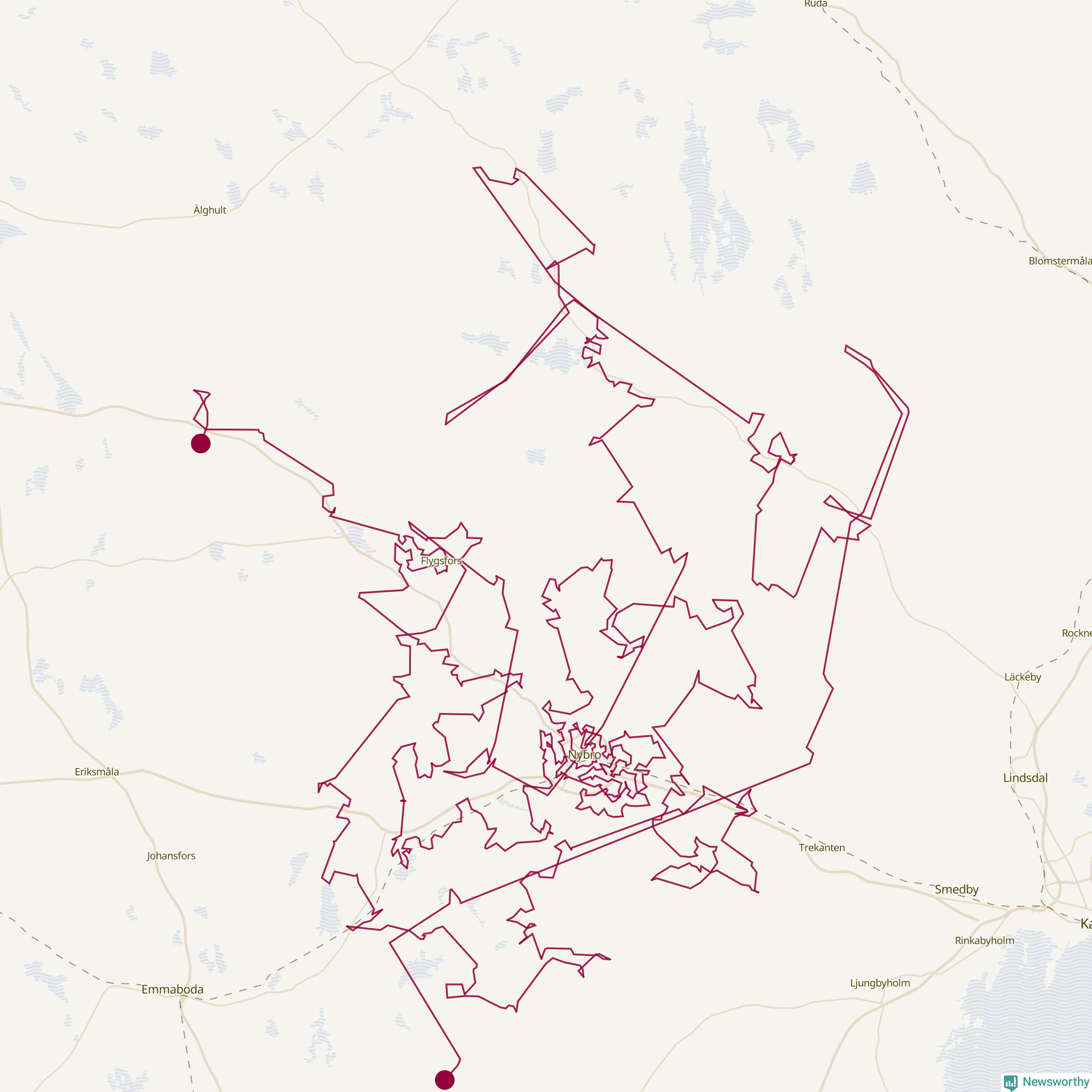 Så här skulle tomtens resa kunna se ut i Nybro: