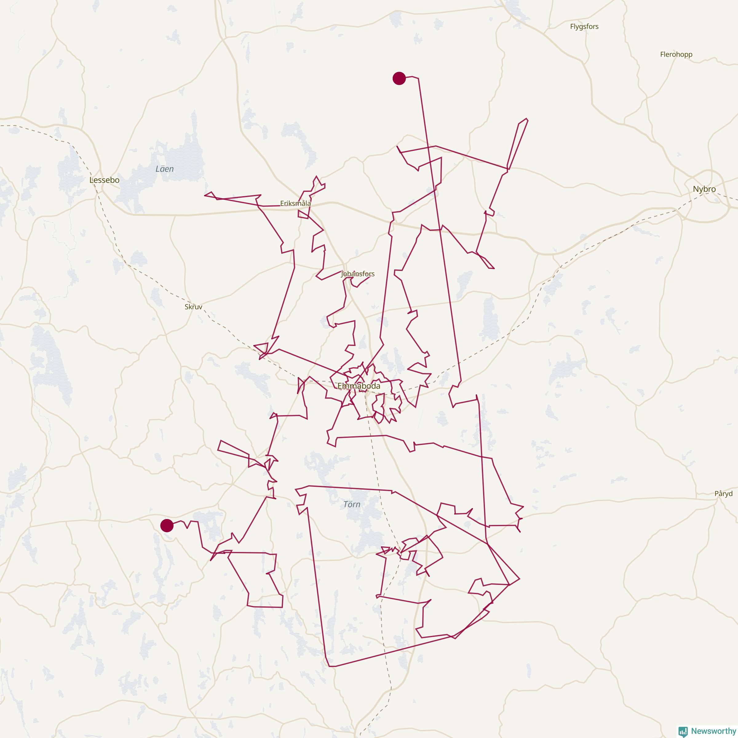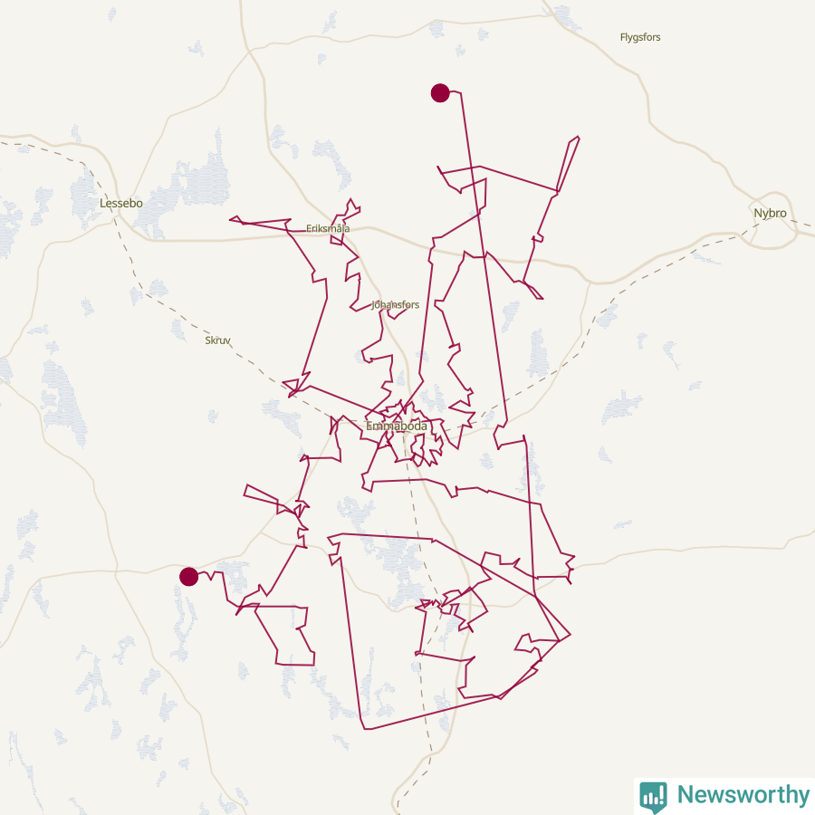 Så här skulle tomtens resa kunna se ut i Emmaboda: