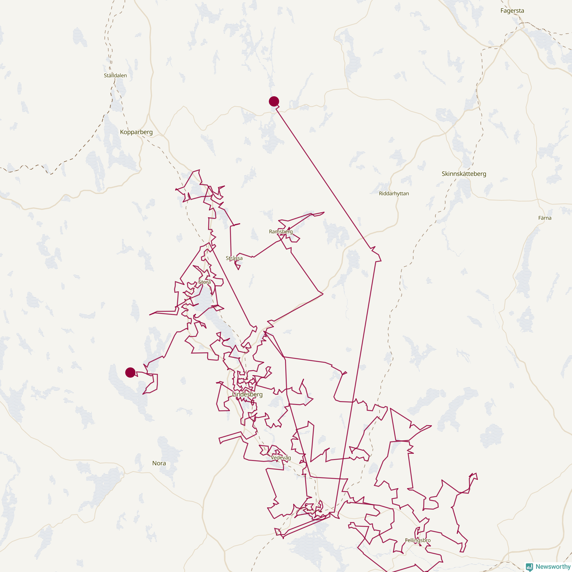 Så här skulle tomtens resa kunna se ut i Lindesberg: