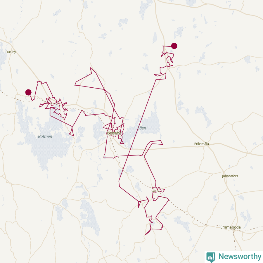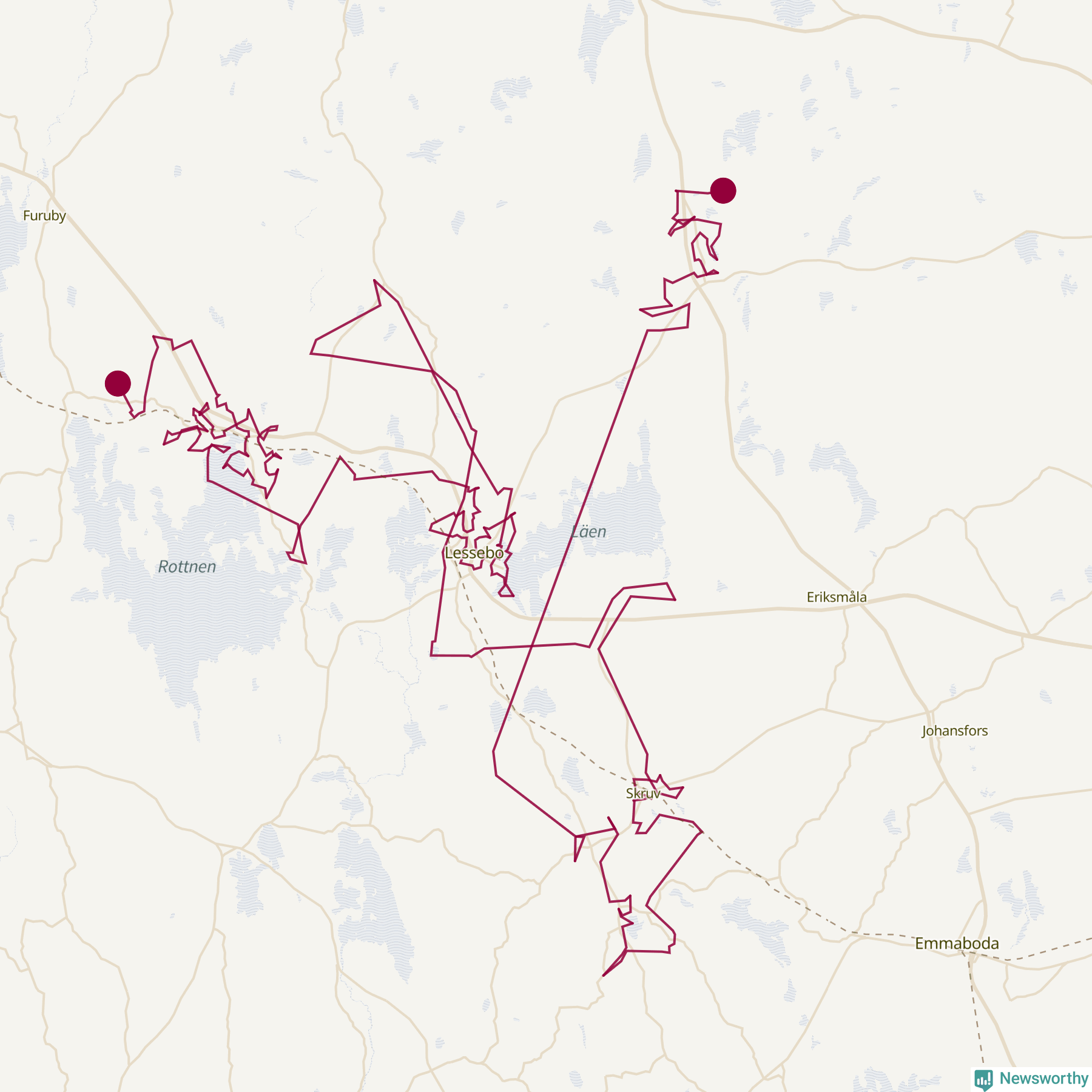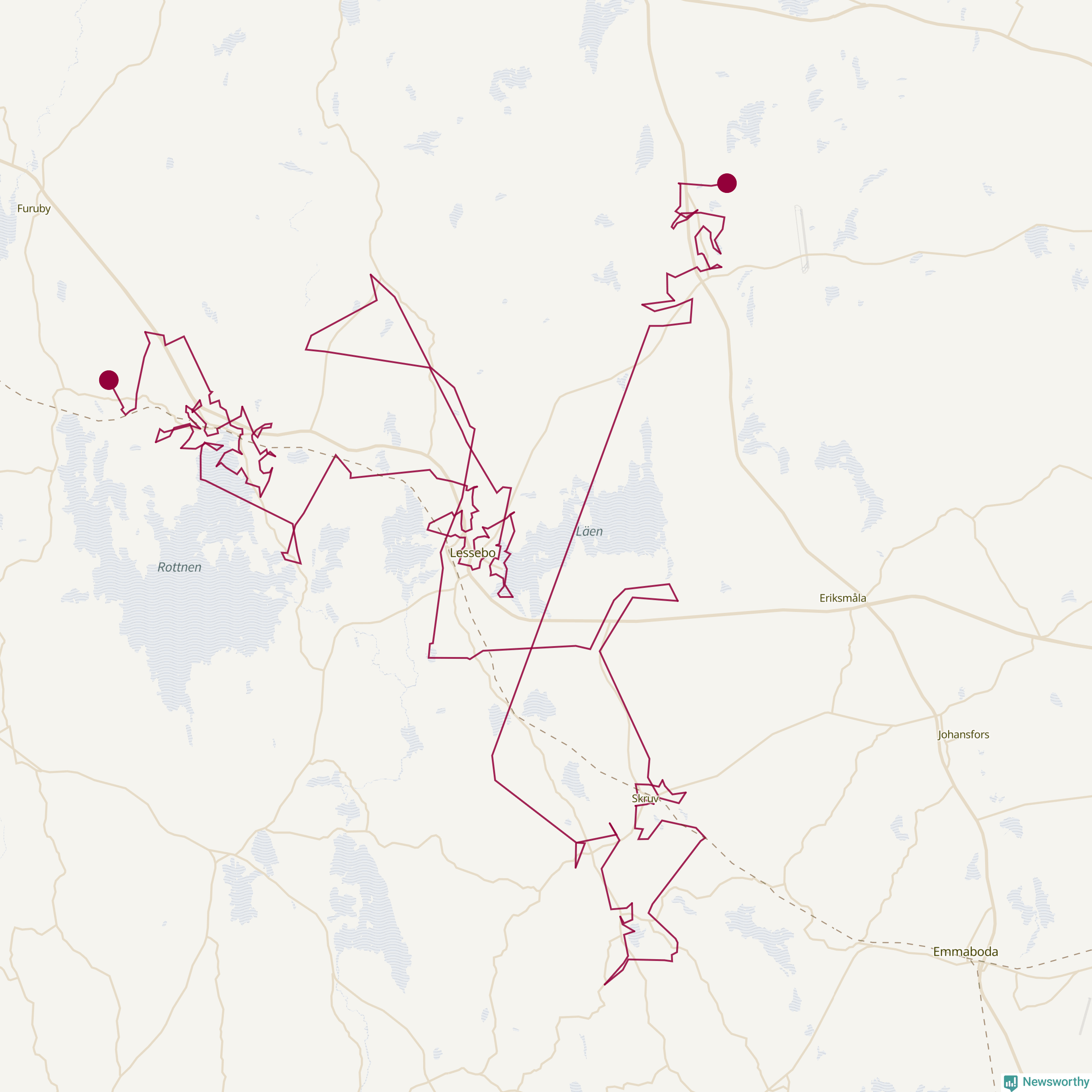 Så här skulle tomtens resa kunna se ut i Lessebo: