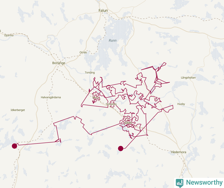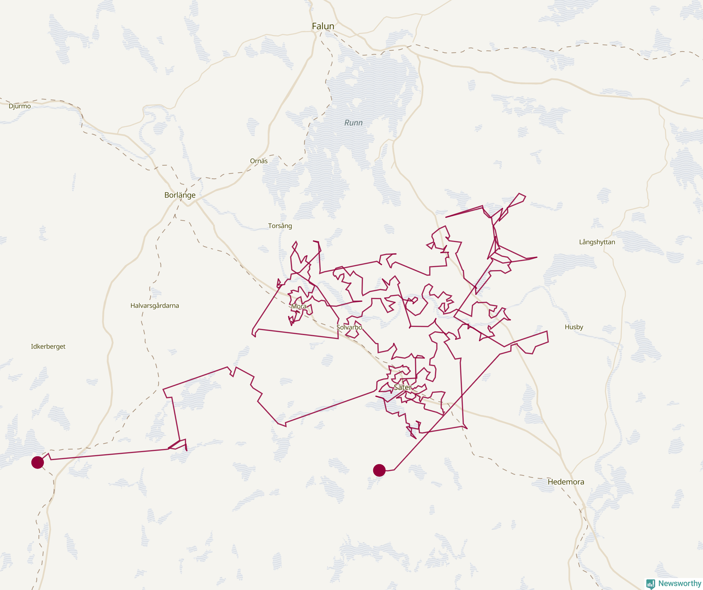 Så här skulle tomtens resa kunna se ut i Säter: