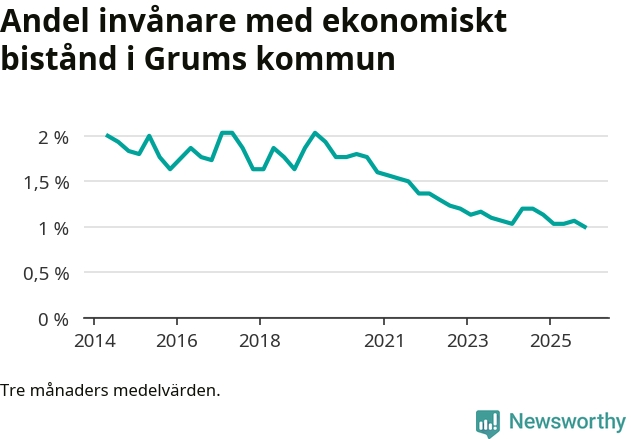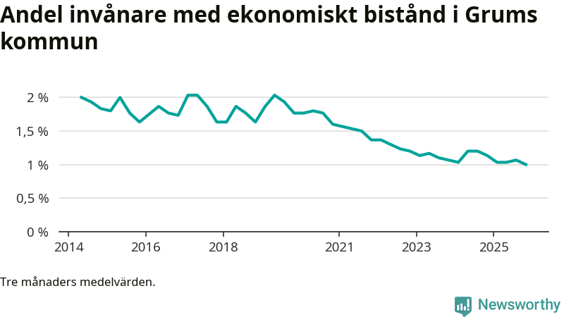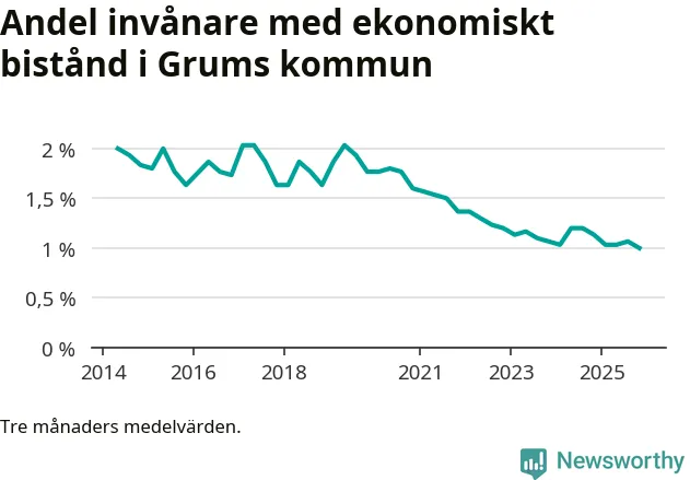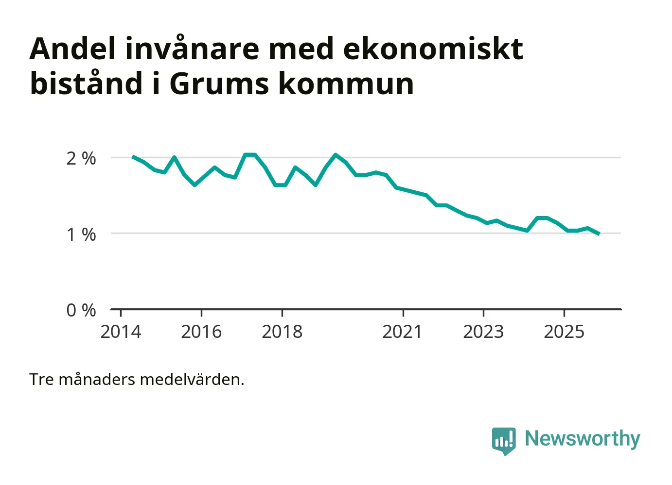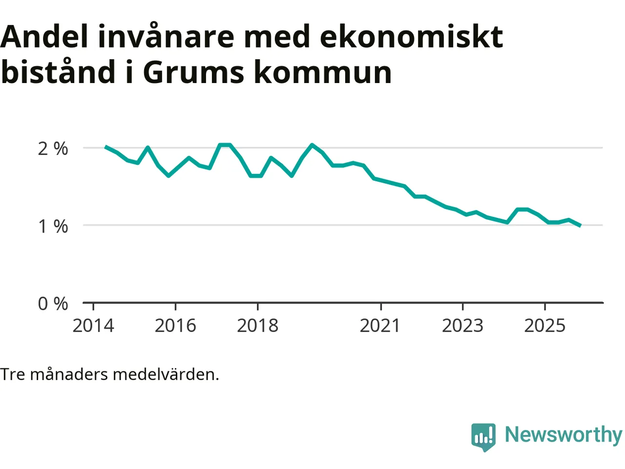 Andelen invånare med ekonomiskt bistånd i Grums kommun var under hösten den lägsta sedan åtminstone 2014. Det visar den senaste, preliminära statistiken från Socialstyrelsen.