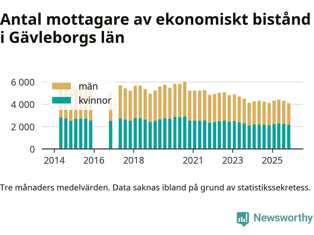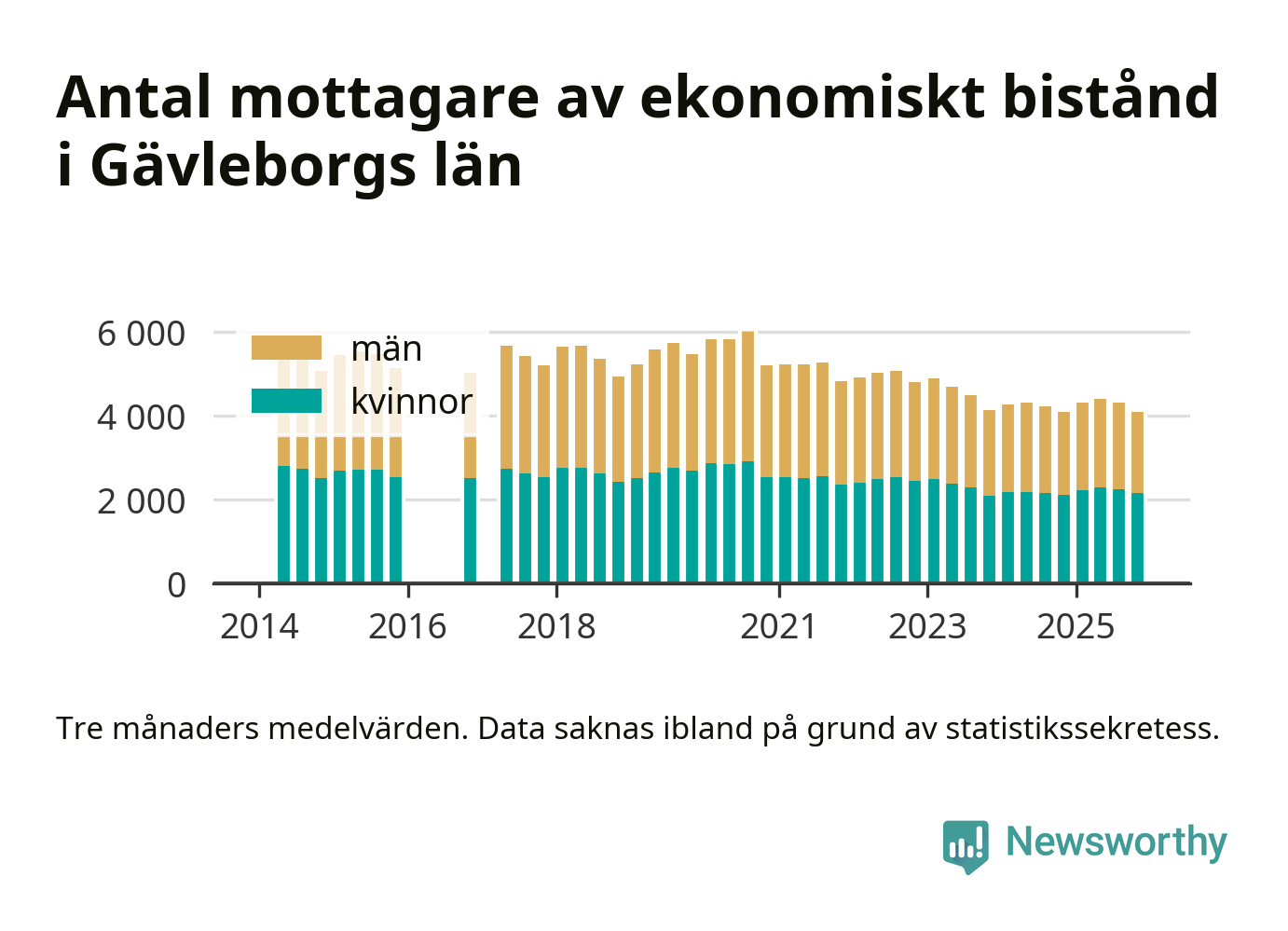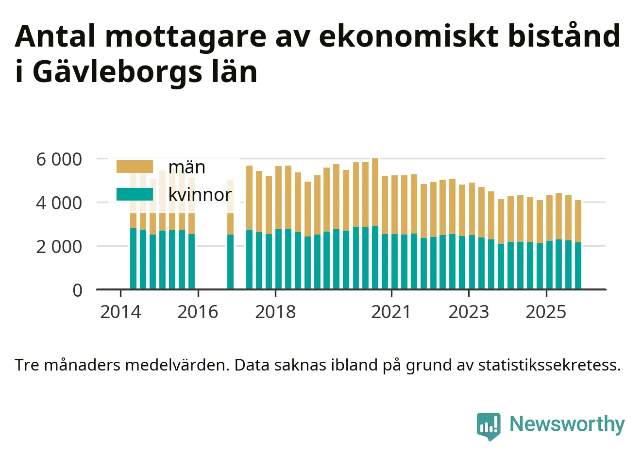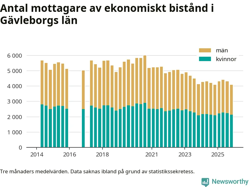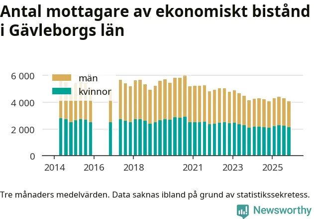 Andelen invånare med ekonomiskt bistånd i Gävleborgs län var under hösten den lägsta sedan åtminstone 2014. Det visar den senaste, preliminära statistiken från Socialstyrelsen.