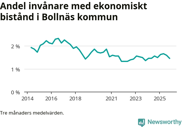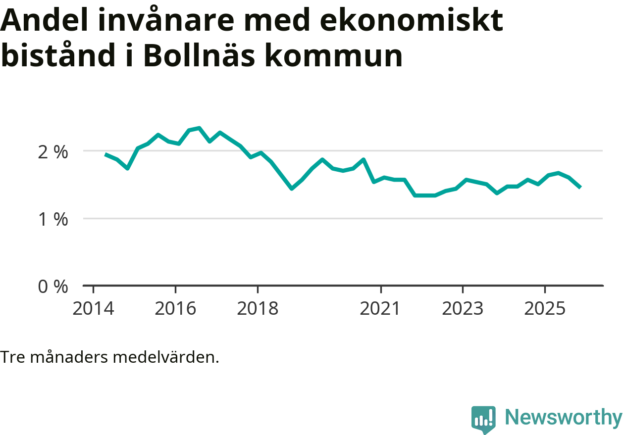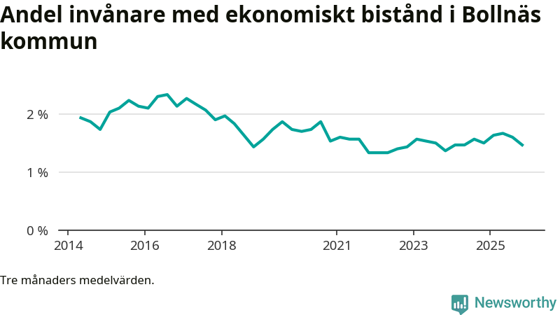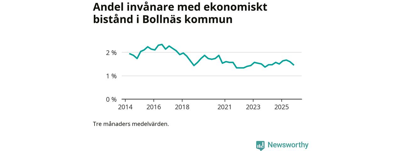 Andelen invånare med ekonomiskt bistånd i Bollnäs kommun