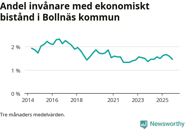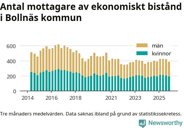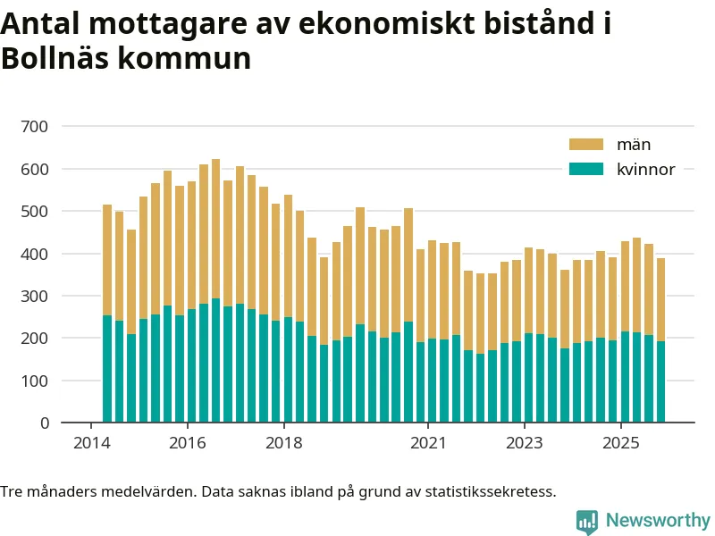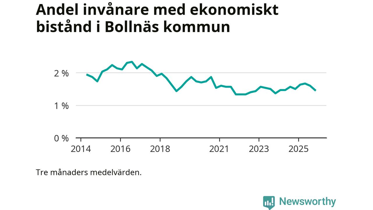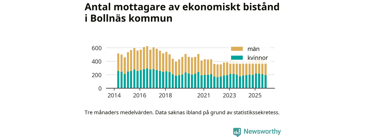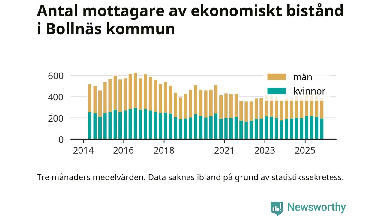 I genomsnitt 388 personer per månad fick ekonomiskt bistånd i Bollnäs kommun