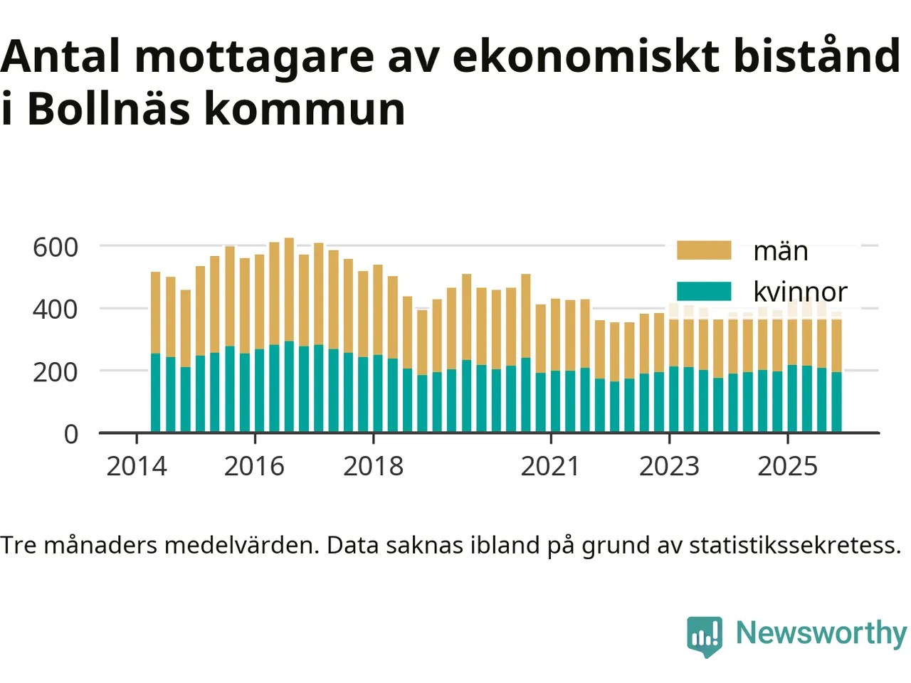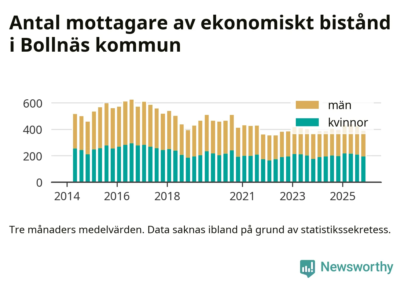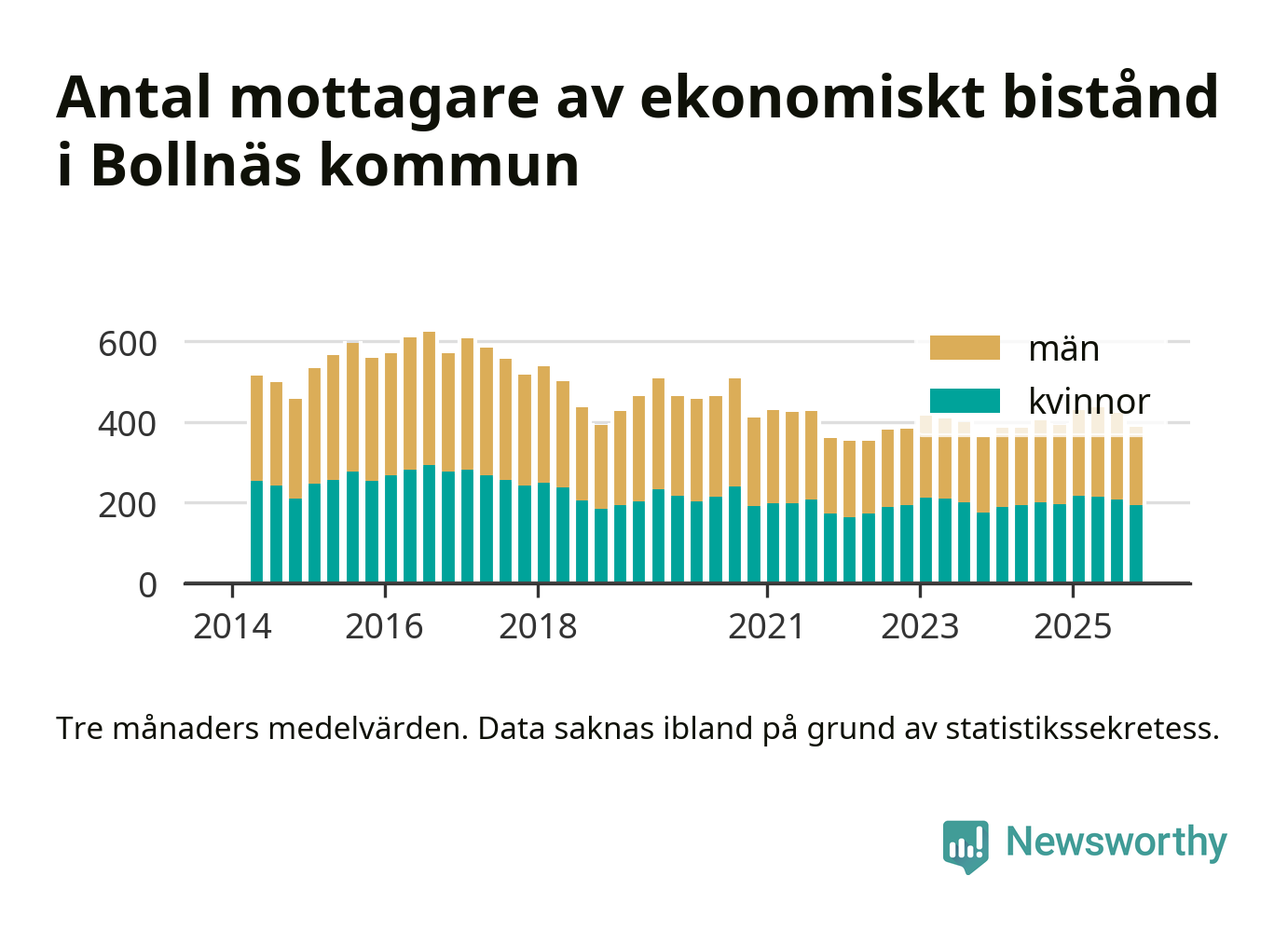 I genomsnitt 388 personer per månad fick ekonomiskt bistånd i Bollnäs kommun