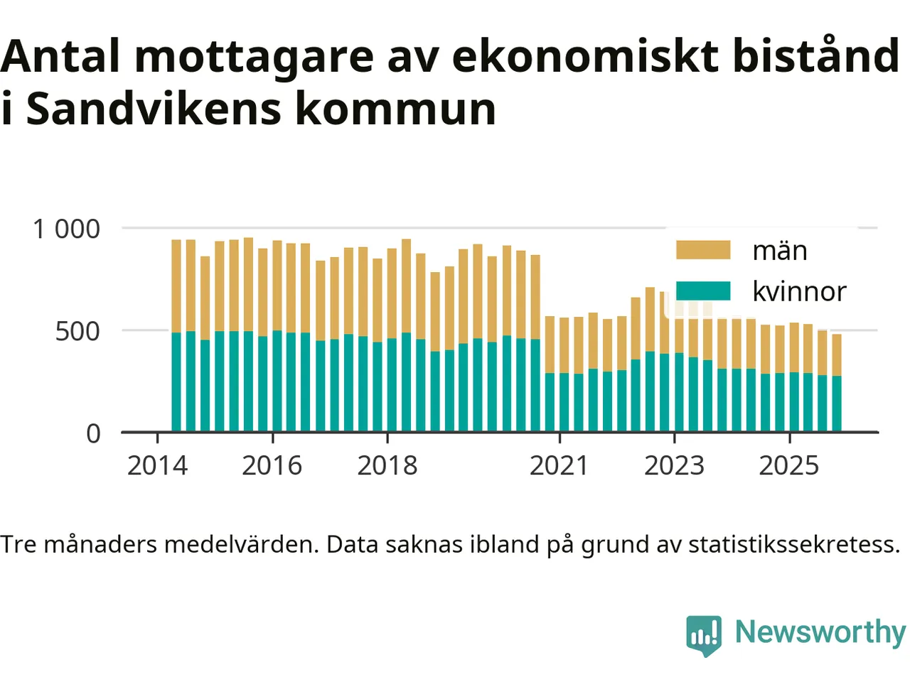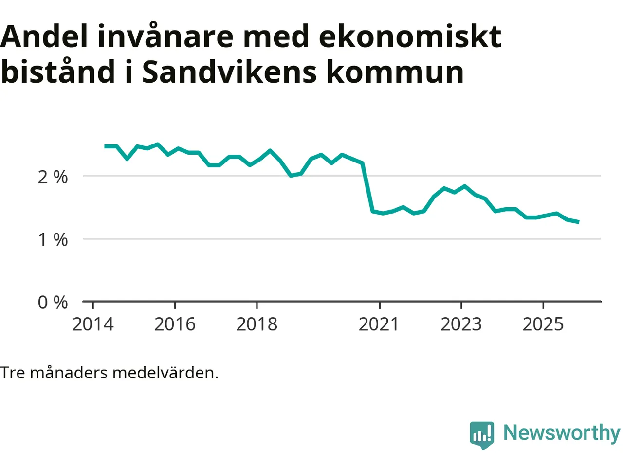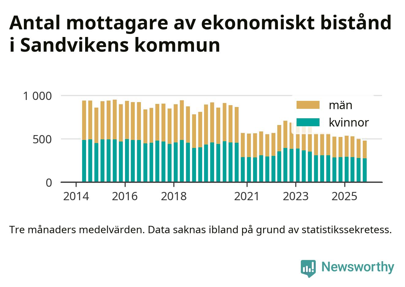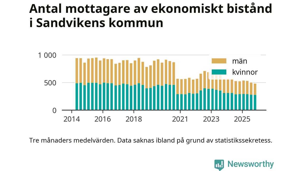 I genomsnitt 478 personer per månad fick ekonomiskt bistånd i Sandvikens kommun