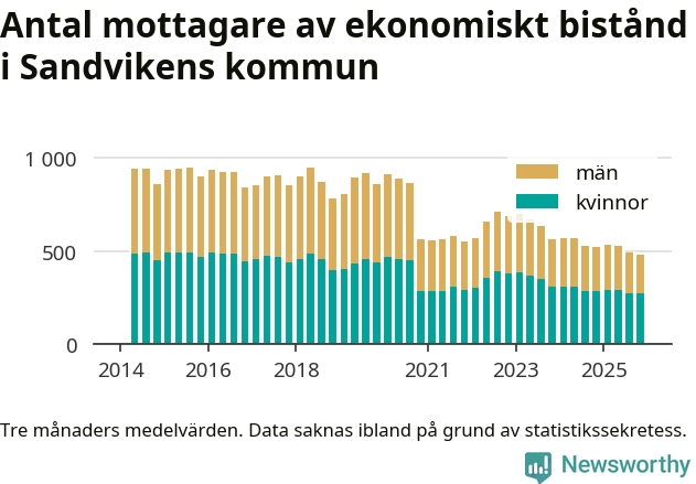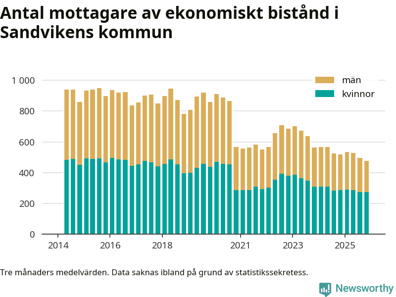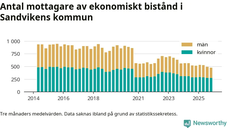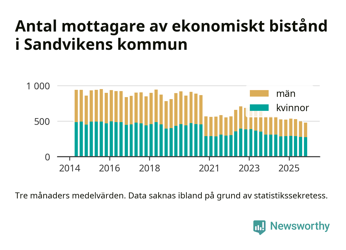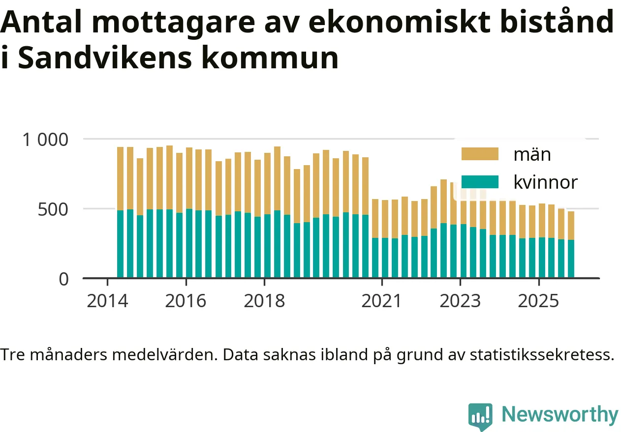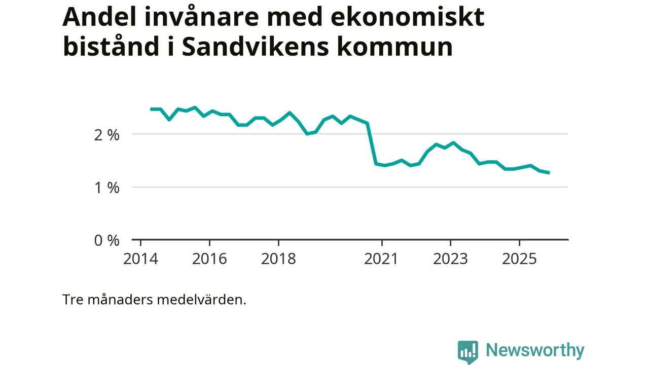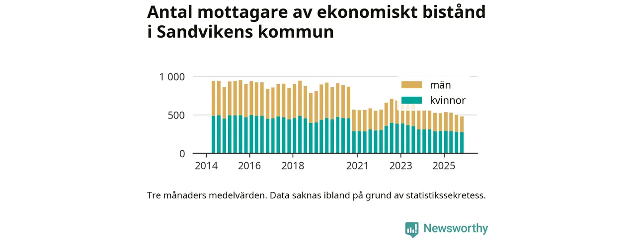 I genomsnitt 478 personer per månad fick ekonomiskt bistånd i Sandvikens kommun