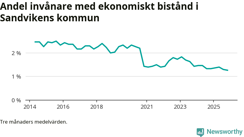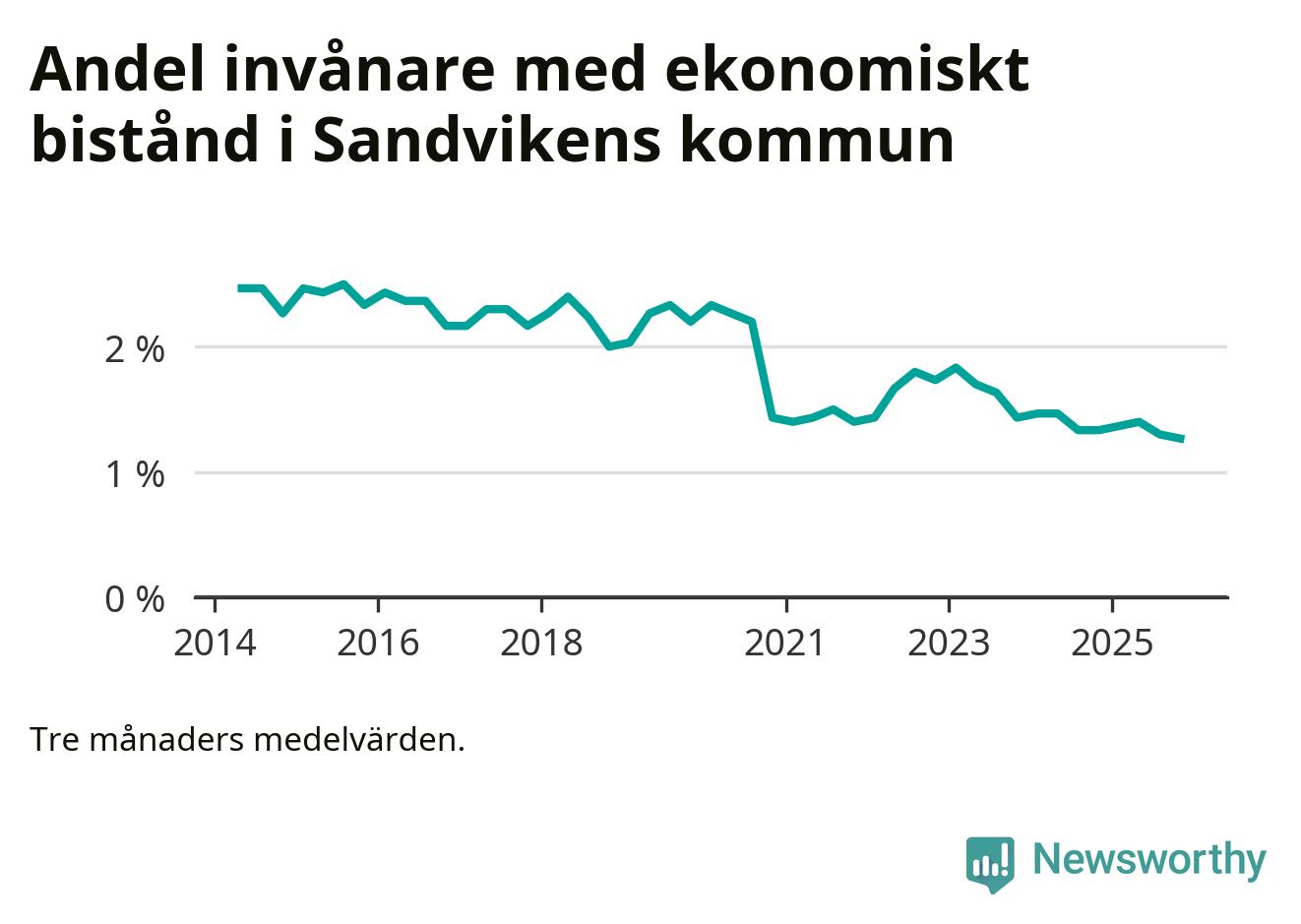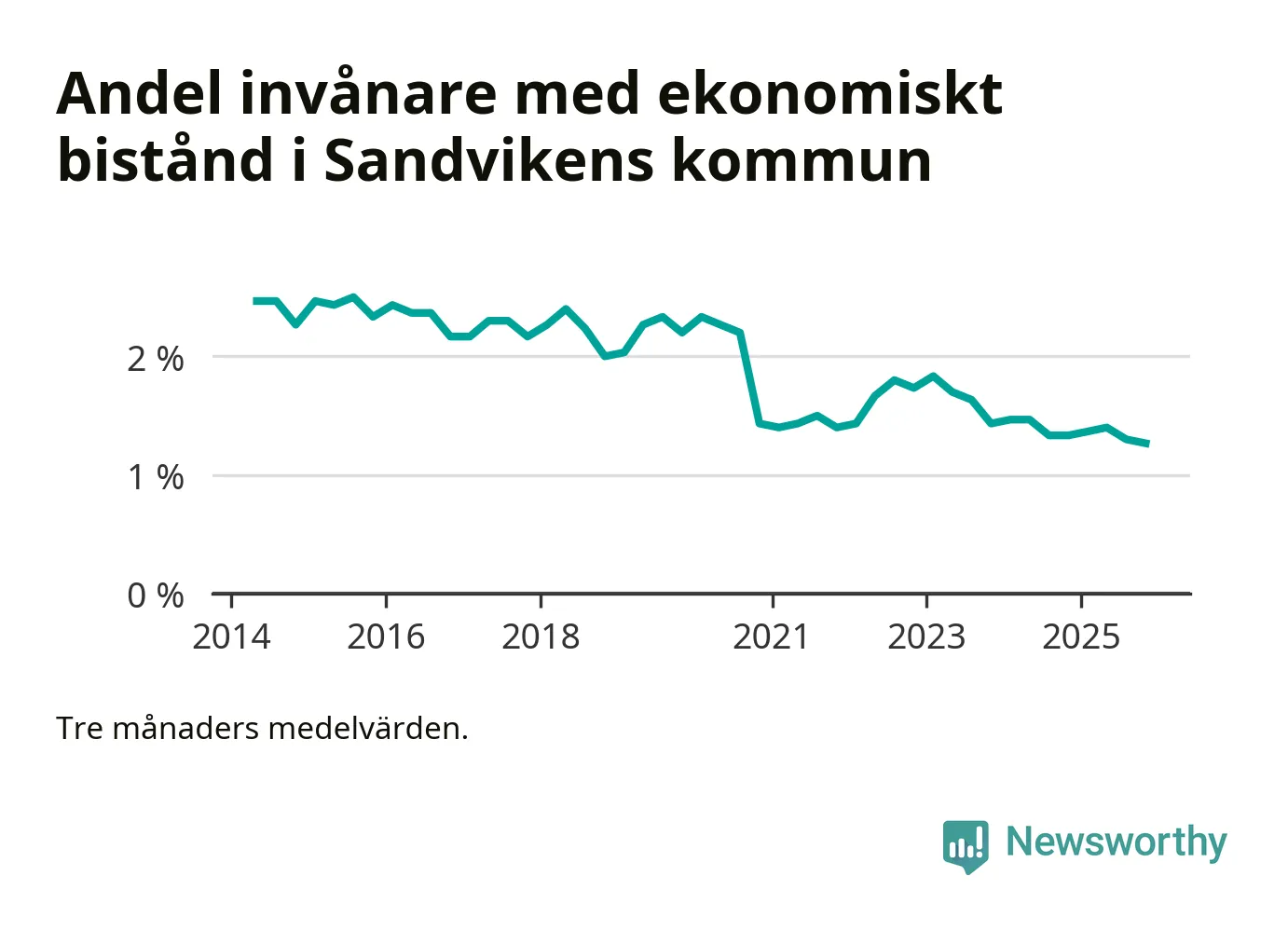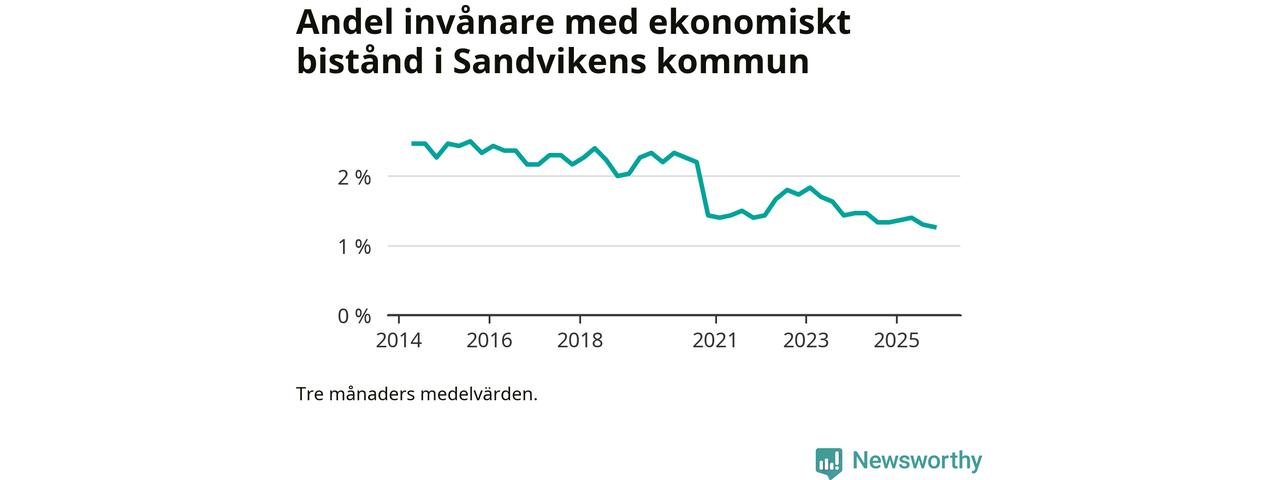 Andelen invånare med ekonomiskt bistånd i Sandvikens kommun