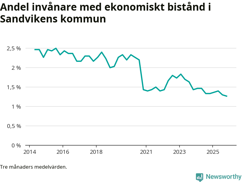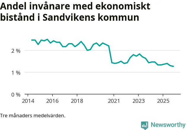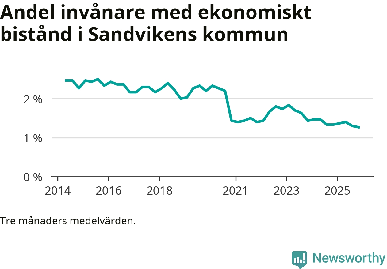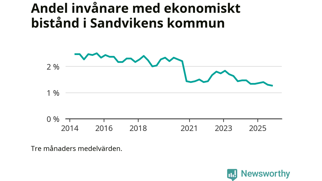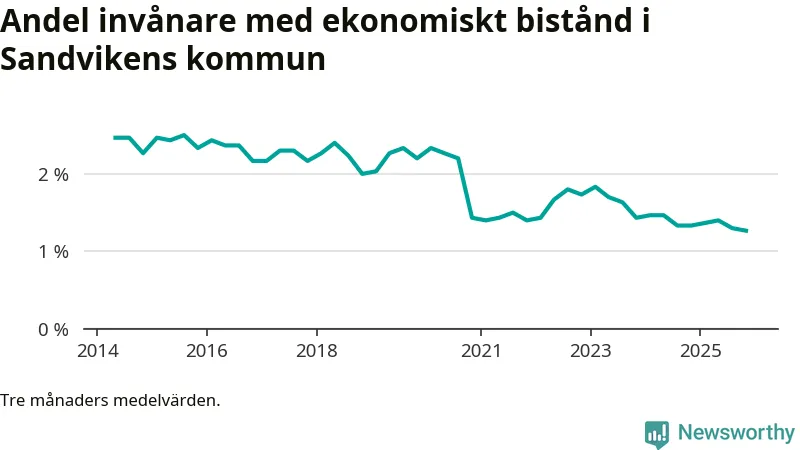 Andelen invånare med ekonomiskt bistånd i Sandvikens kommun