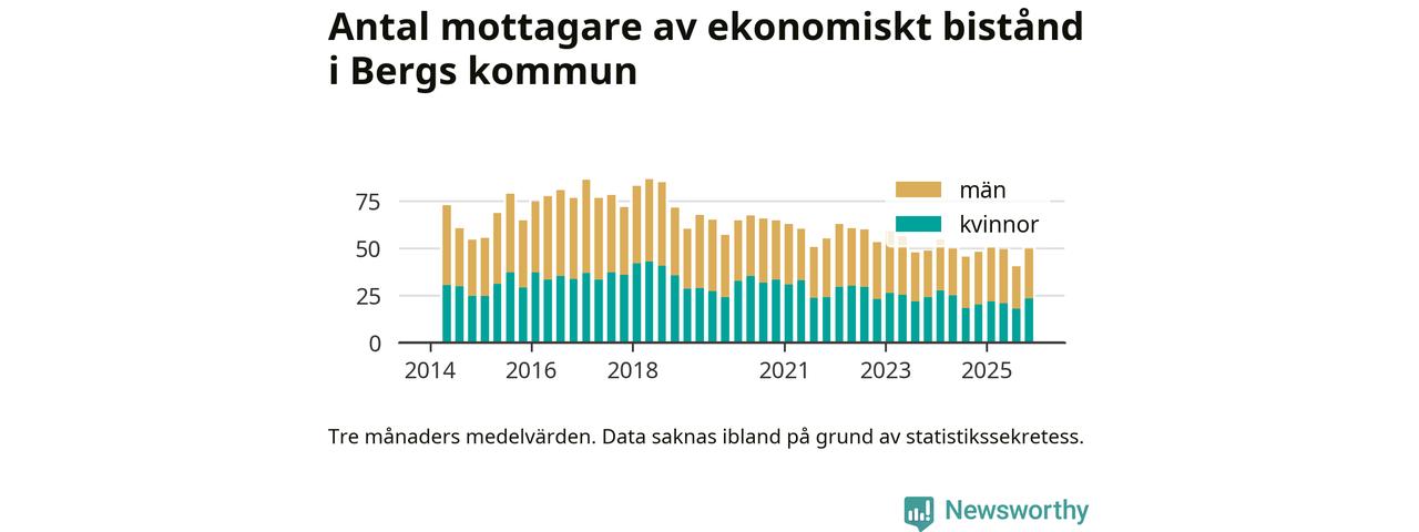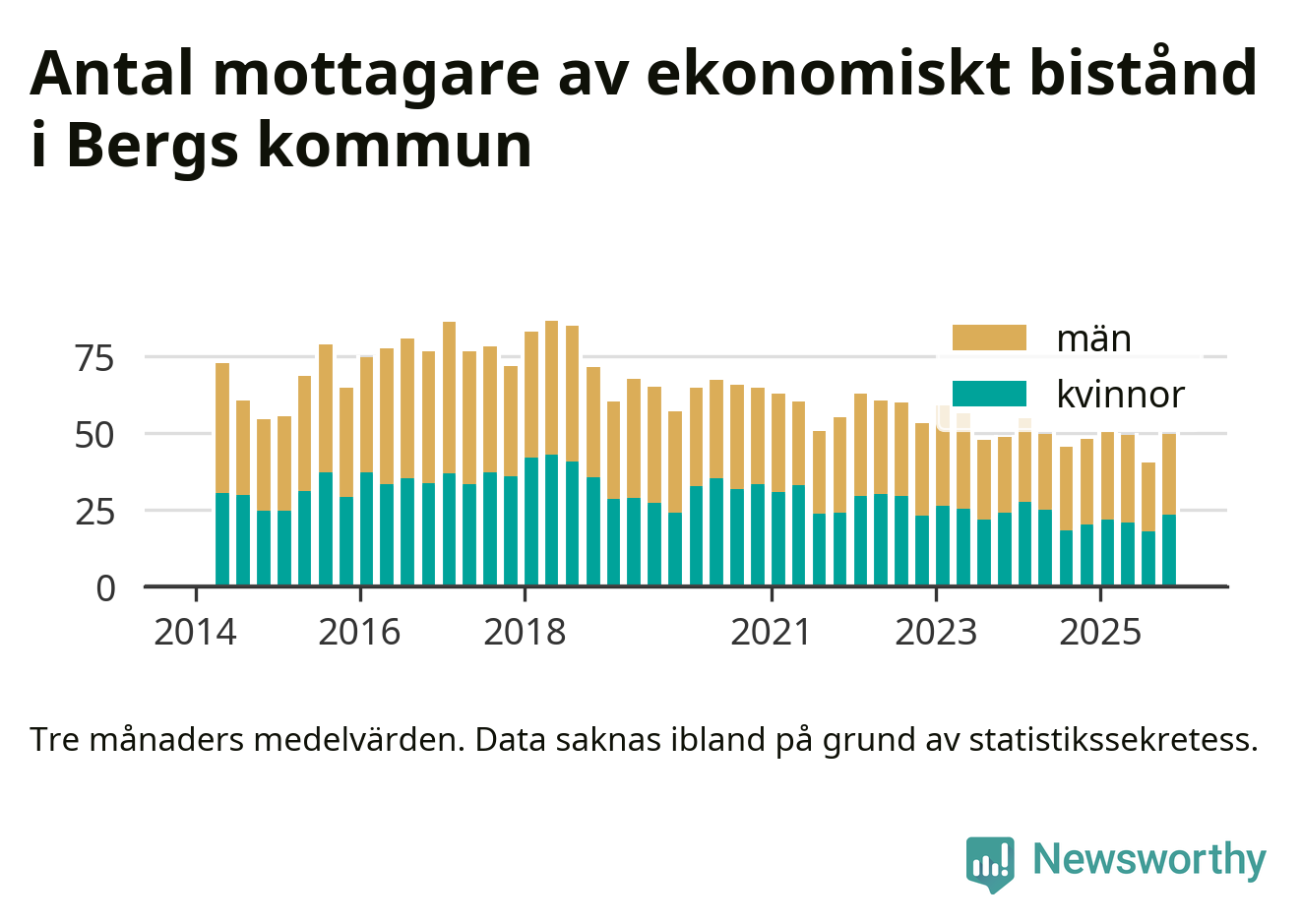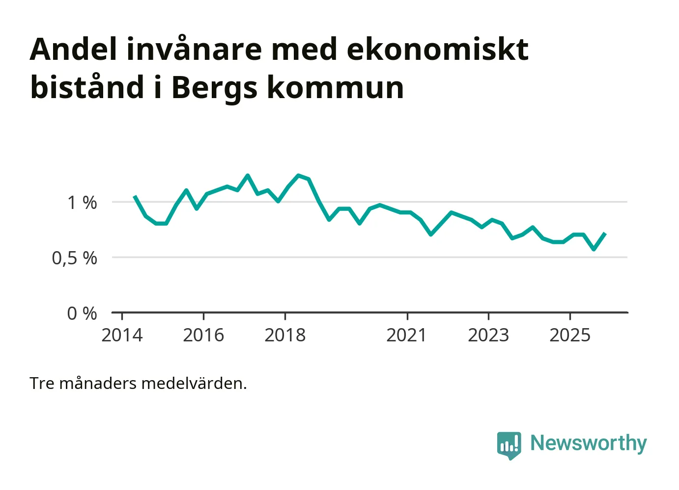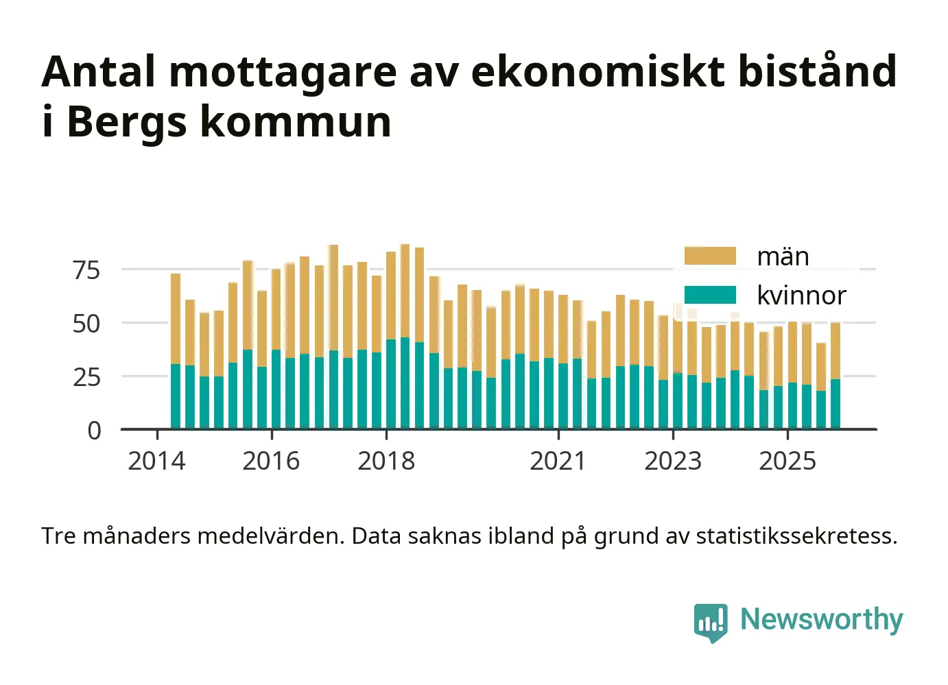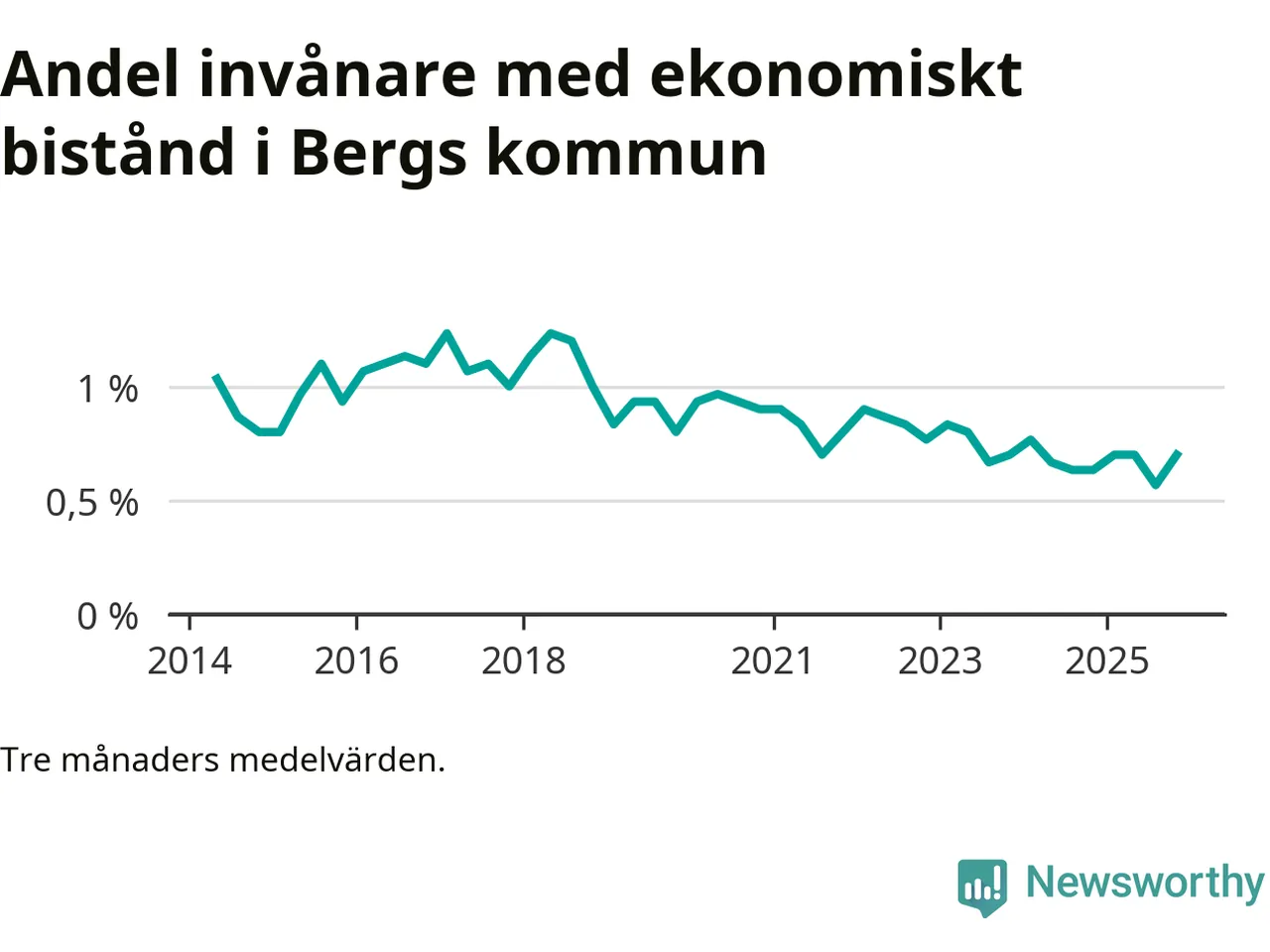 I genomsnitt 50 personer per månad fick ekonomiskt bistånd i Bergs kommun