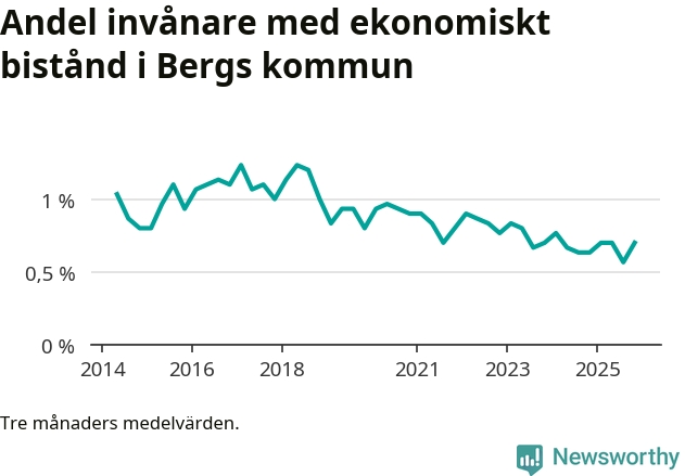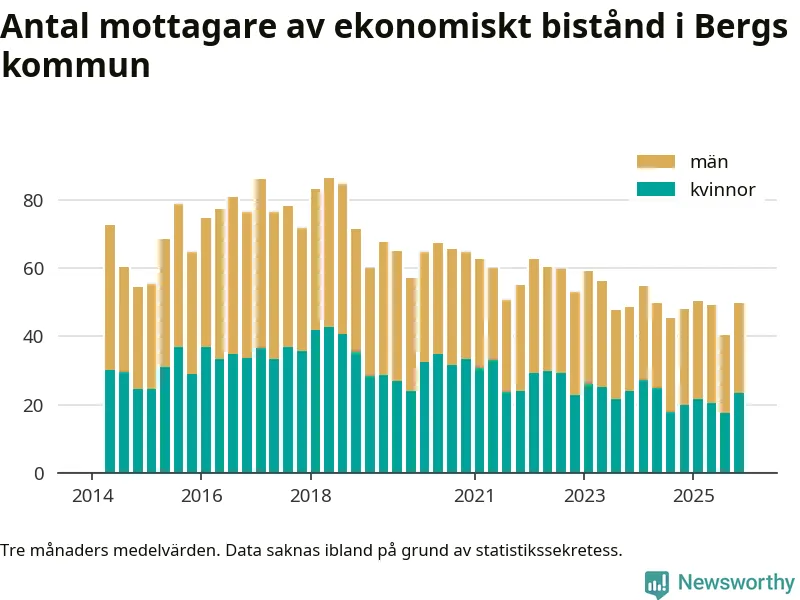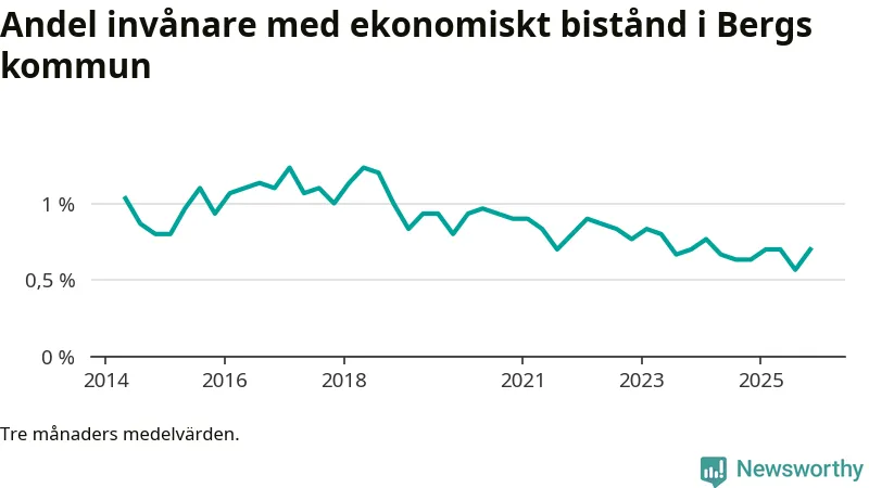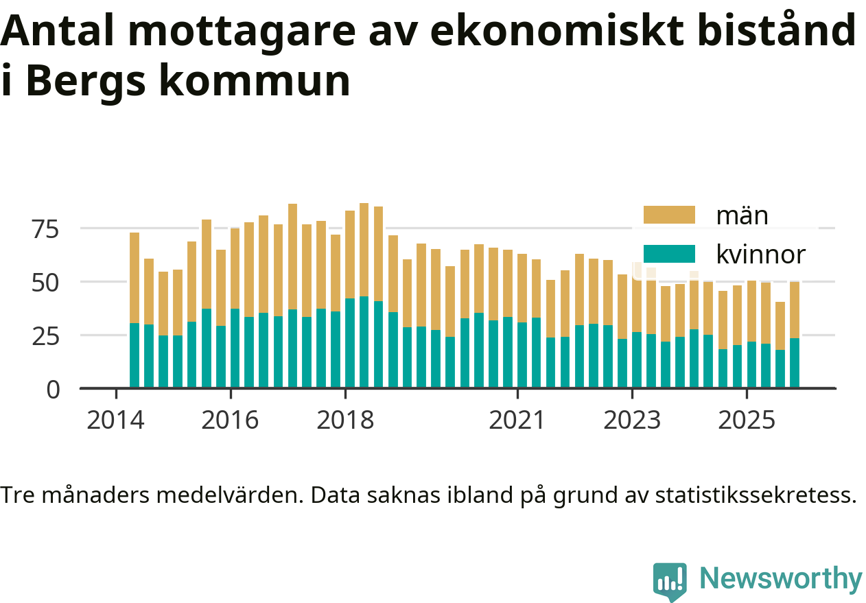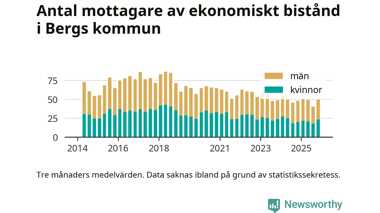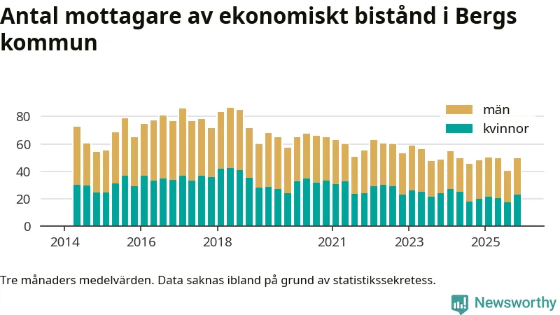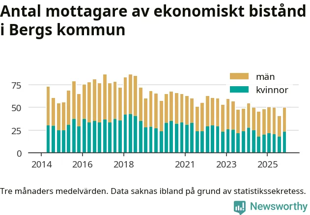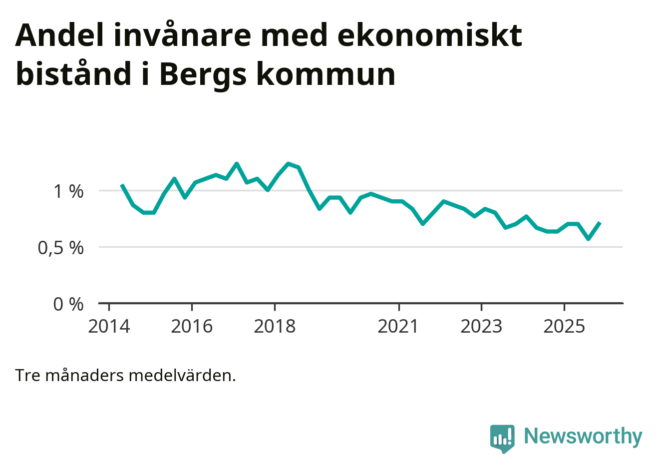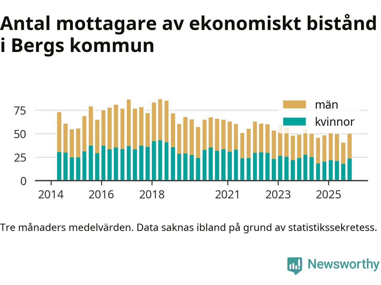 I genomsnitt 50 personer per månad fick ekonomiskt bistånd i Bergs kommun