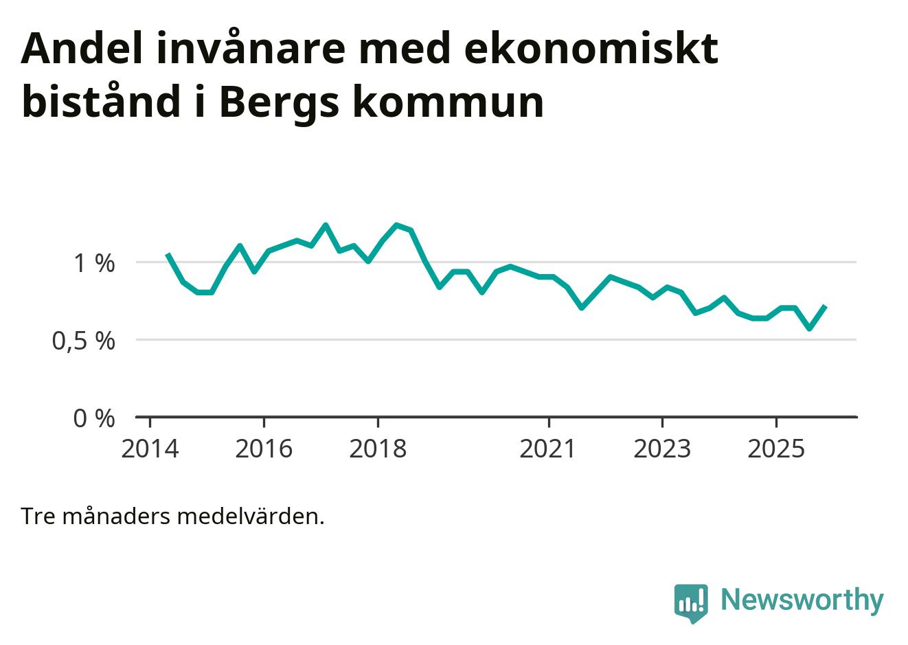 Senast andelen mottagare av ekonomiskt bistånd var så här